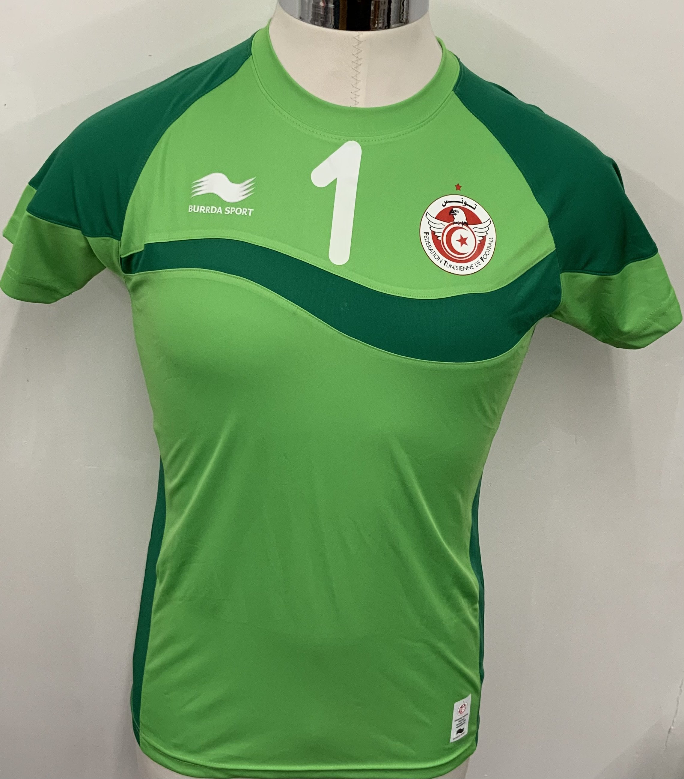 Tunisia 2014 Match Worn Football Shirt: Green goalkeeper short sleeve shirt. Number 1 Ben Cherifa. Worn during World Cup Qualifiers.