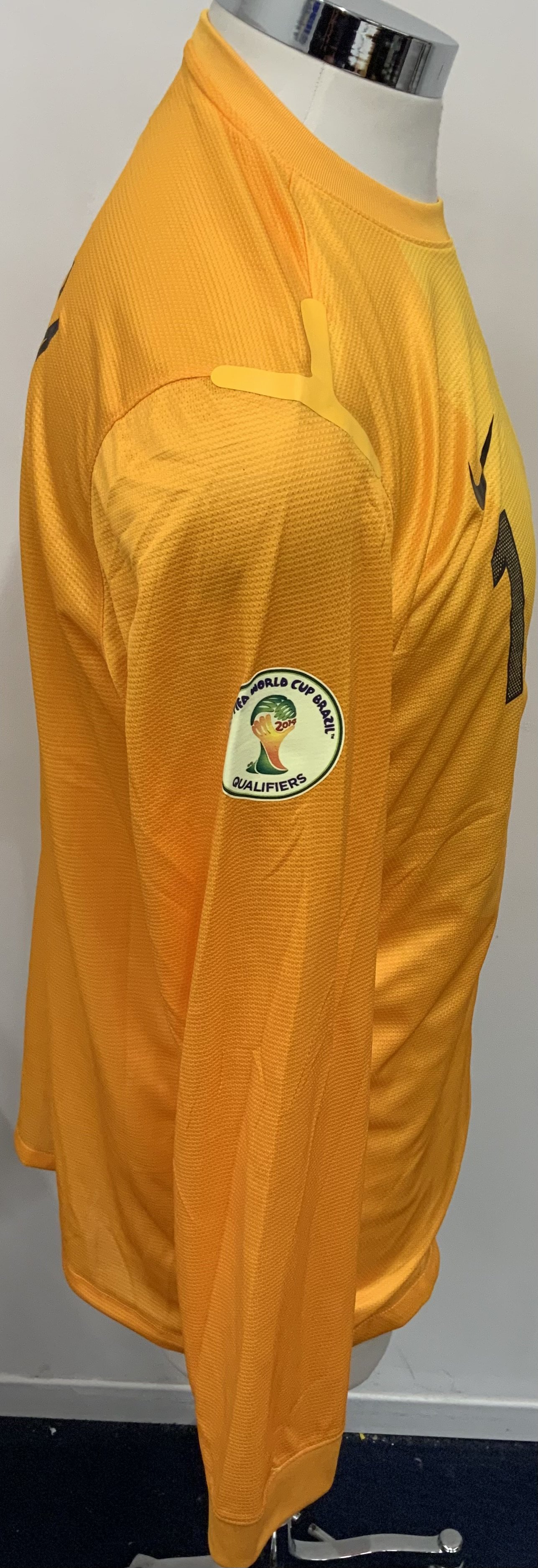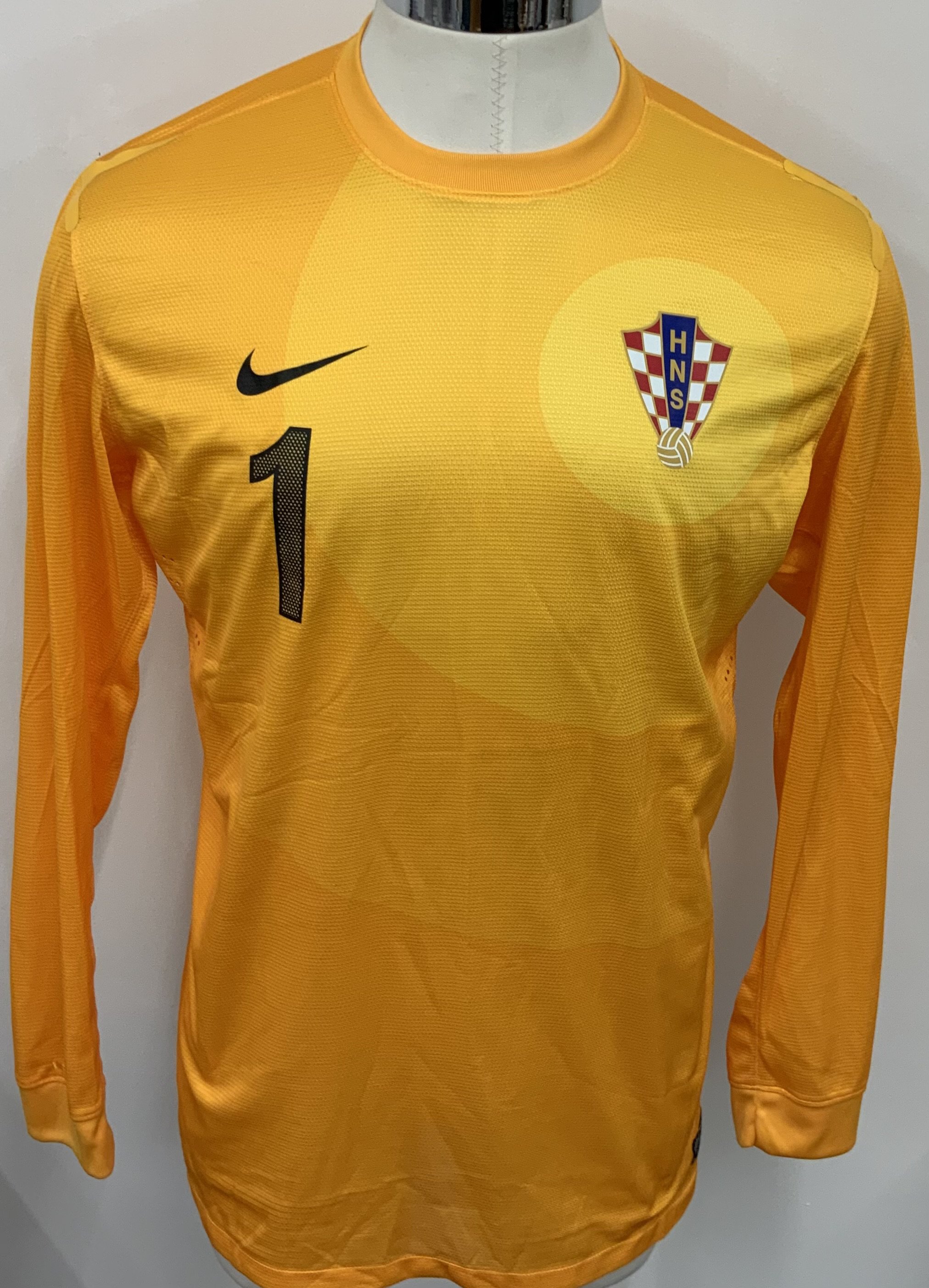 Croatia 2014 Match Worn Football Shirt: Yellow long sleeve shirt. Number 1 Pletikosa. Worn during World Cup Qualifiers. This is the third goalkeeping shirt and has World Cup badges to sleeves.