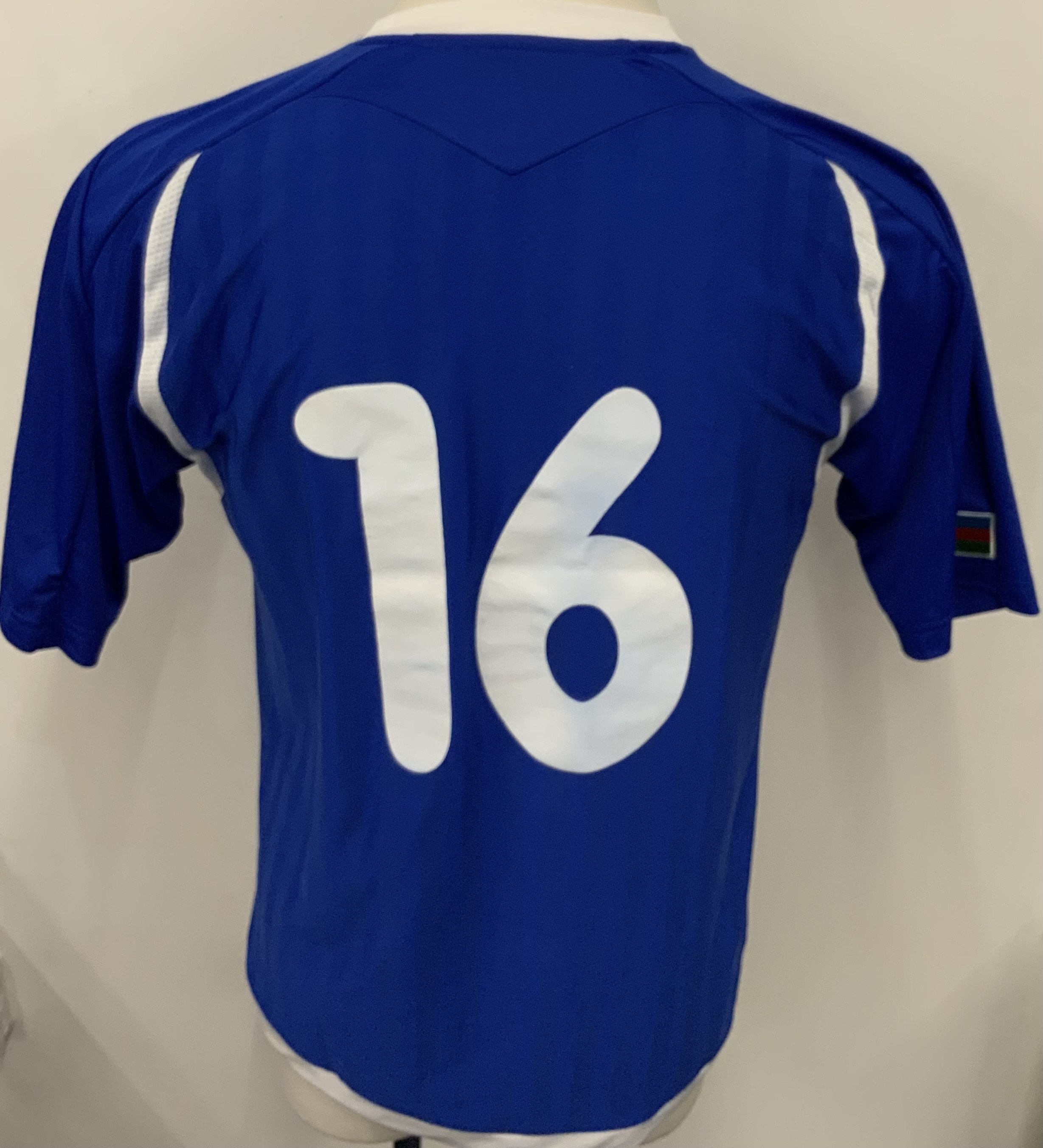 Azerbaijan 2008 Match Worn Football Shirt: Blue short sleeve shirt. Number 16. Worn v Andorra on 4 June 2008.
