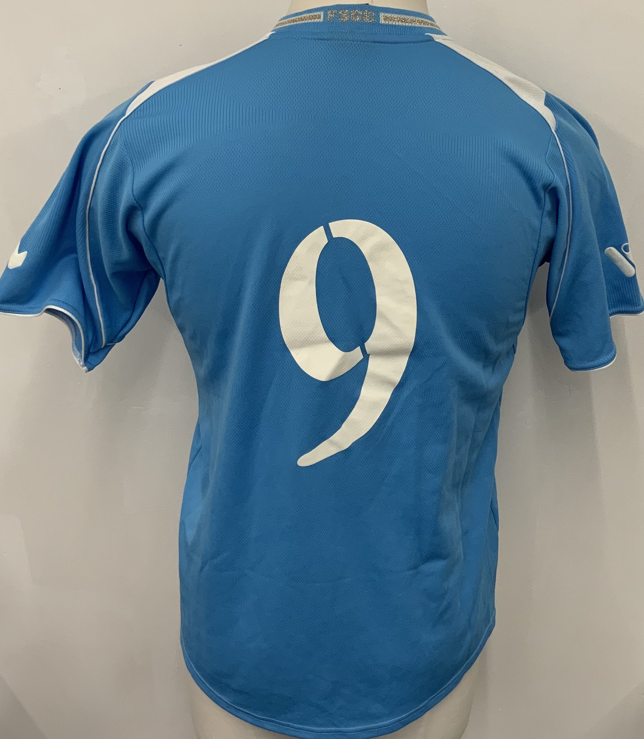 San Marino 2005 Match Worn Football Shirt: Blue short sleeve shirt. Number 9. Worn during World Cup Qualifier v Bosnia on 4 June 2005. Shirt is unwashed.