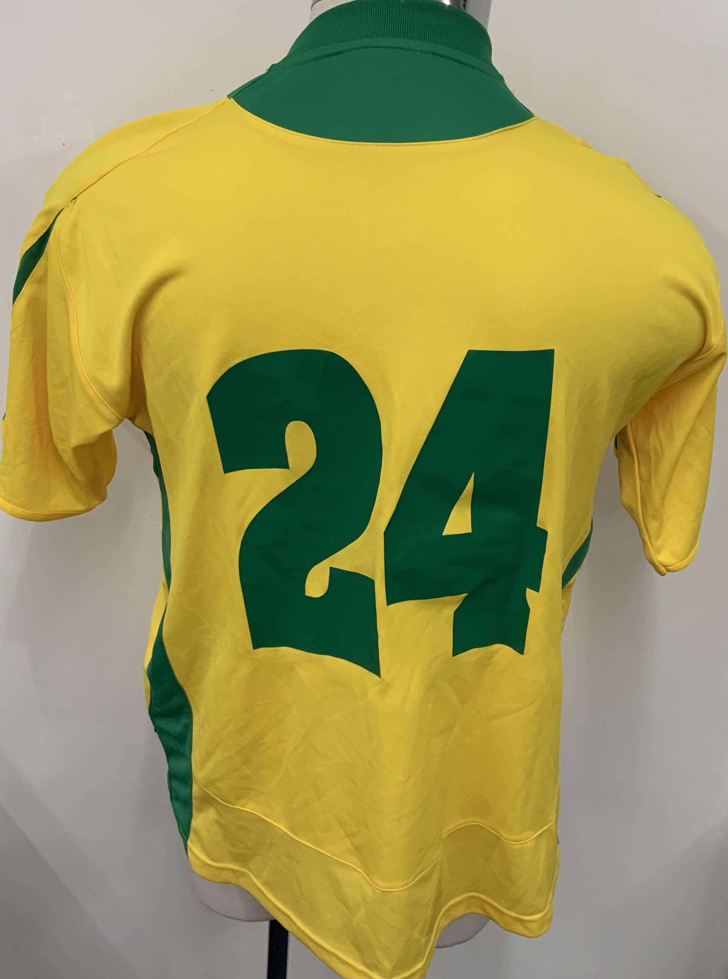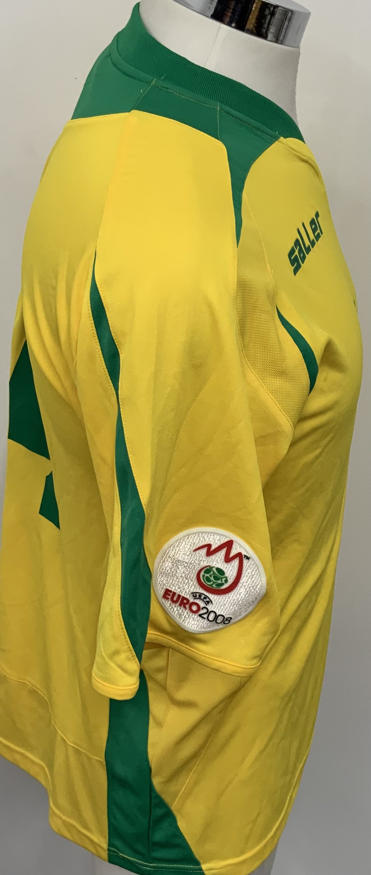 Lithuania 2008 Match Worn Football Shirt: Yellow short sleeve shirt. Number 24. Shirt has Euro 2008 badge to sleeve.