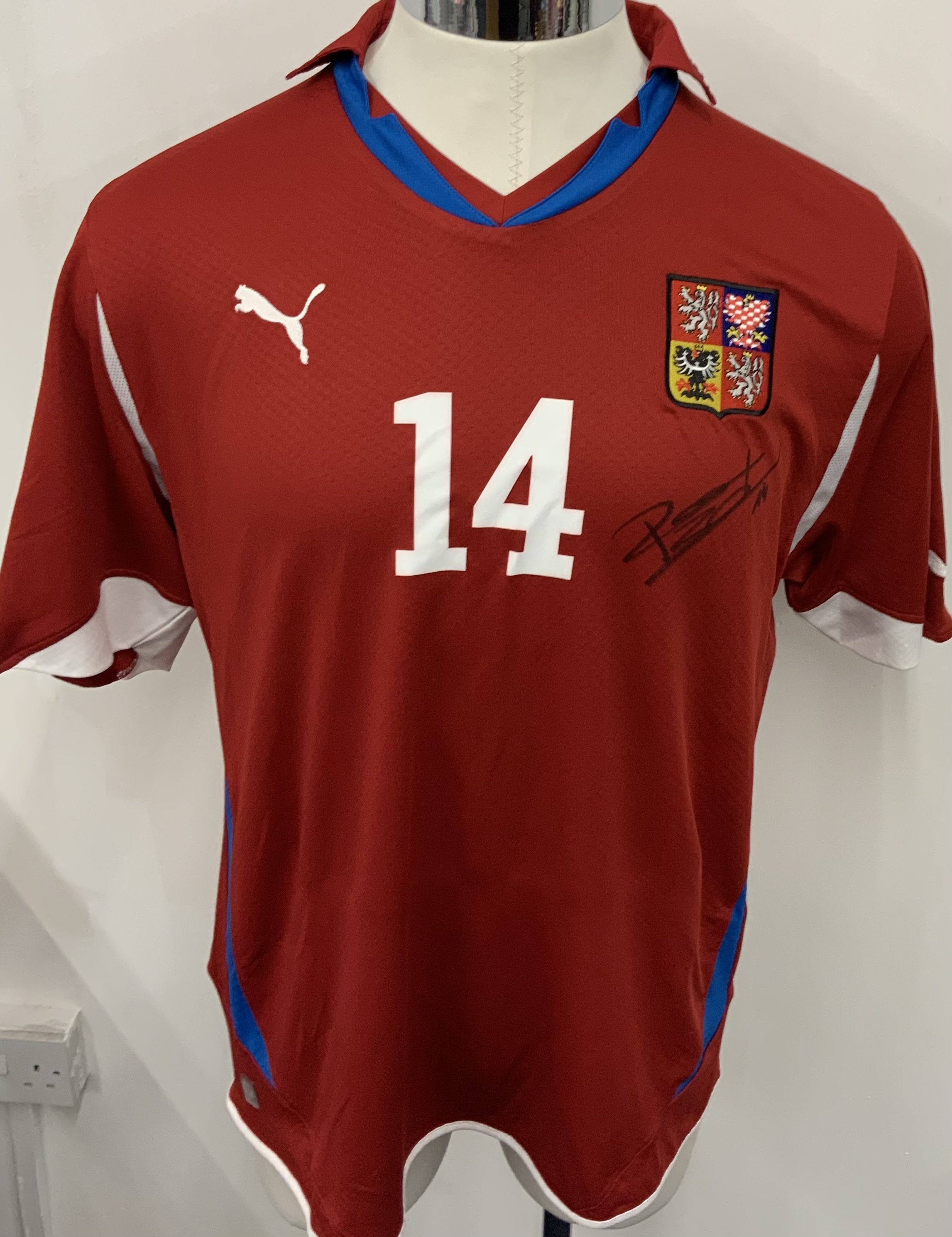 Czechoslovakia 2010 - 2011 Match Worn Football Shirt: Red short sleeve shirt. Number 14 Bednar. Shirt is signed by the player
