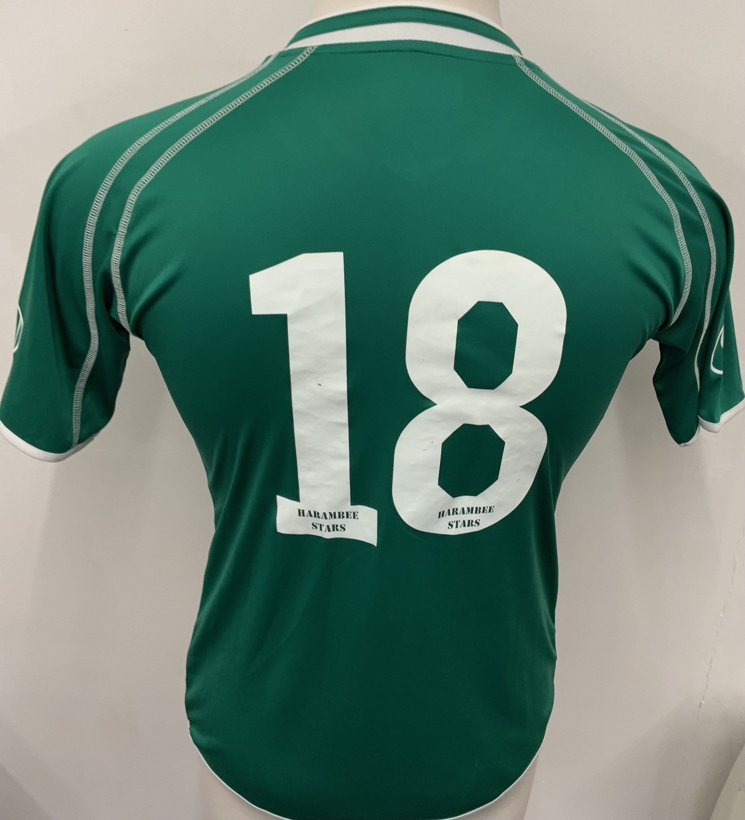 Kenya Match Worn Football Shirt: Green short sleeve Uhlsport shirt with number 18 to front and back.