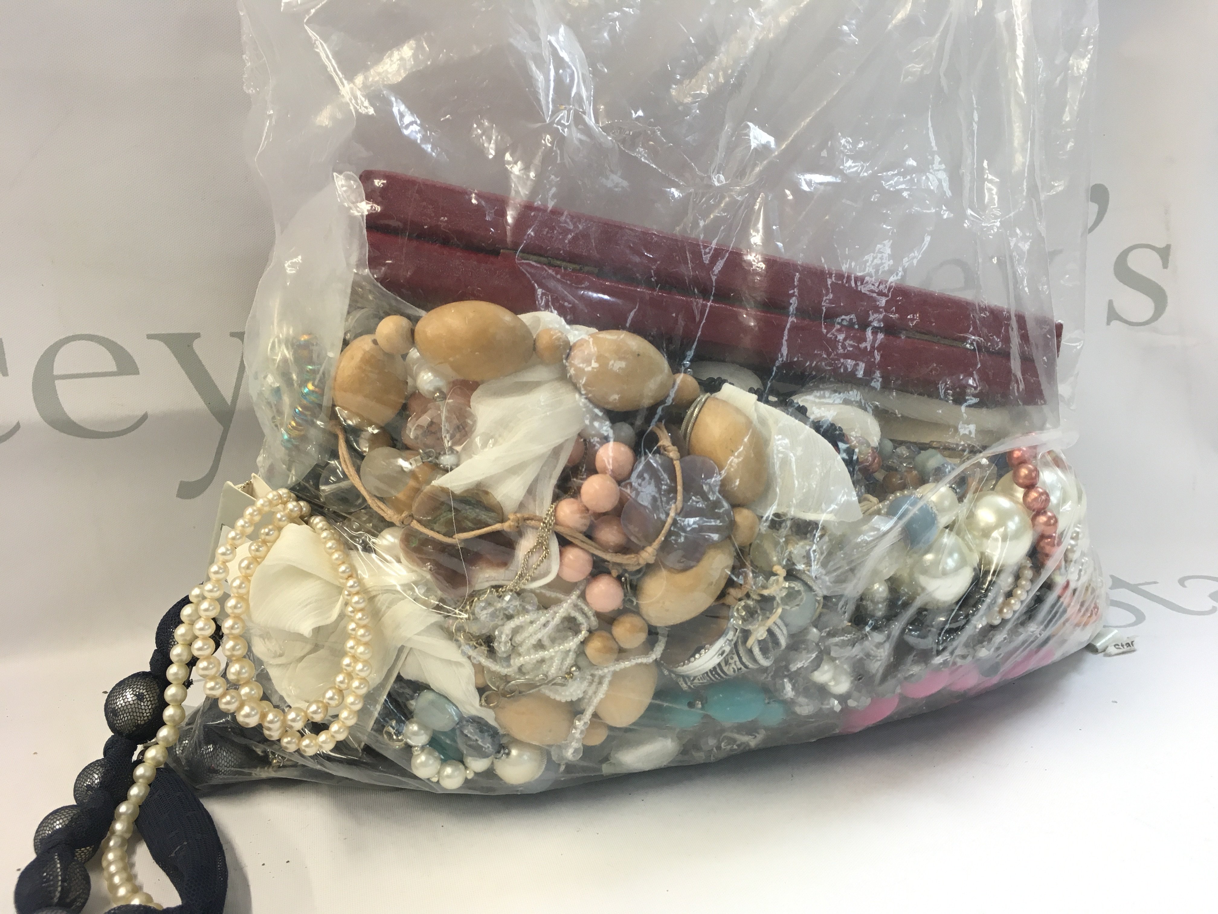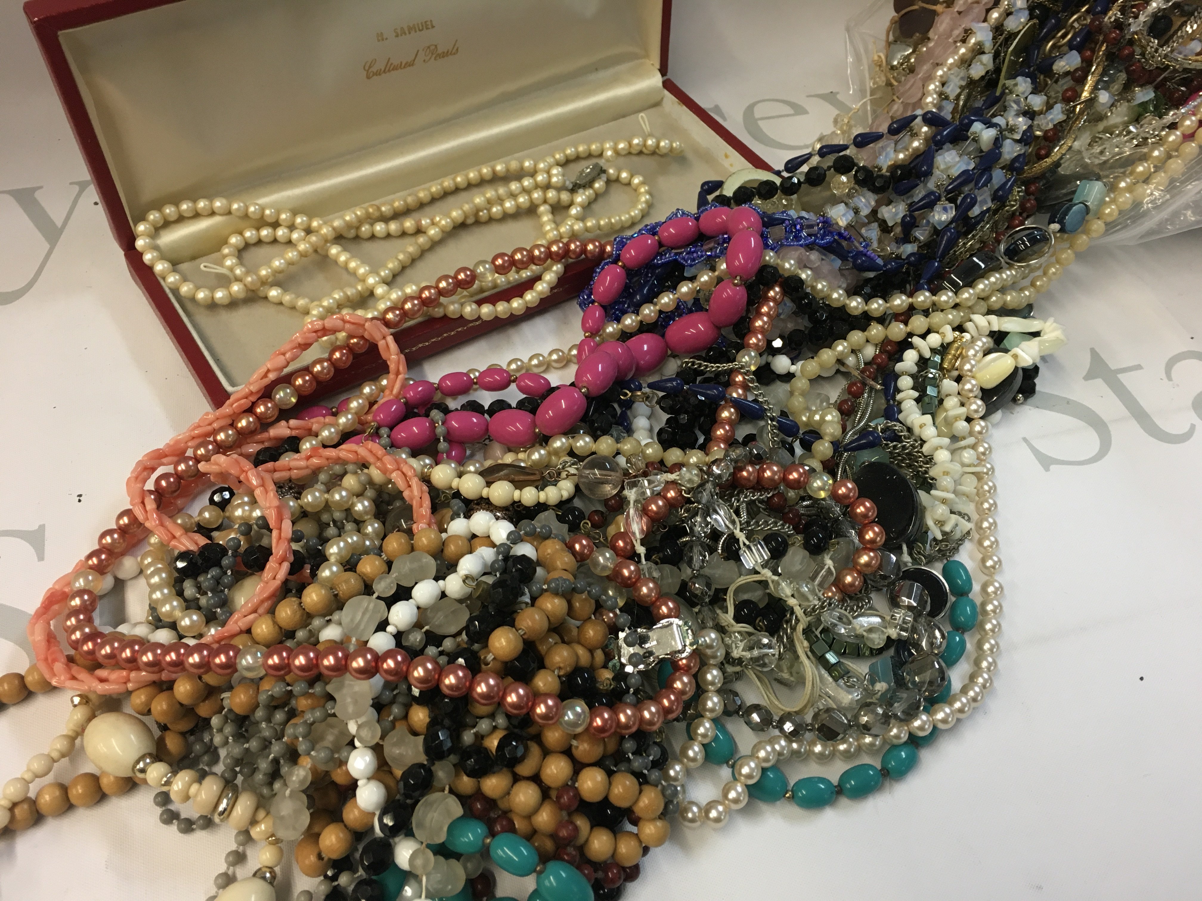 A large Collection of various beaded necklaces , postage cat c