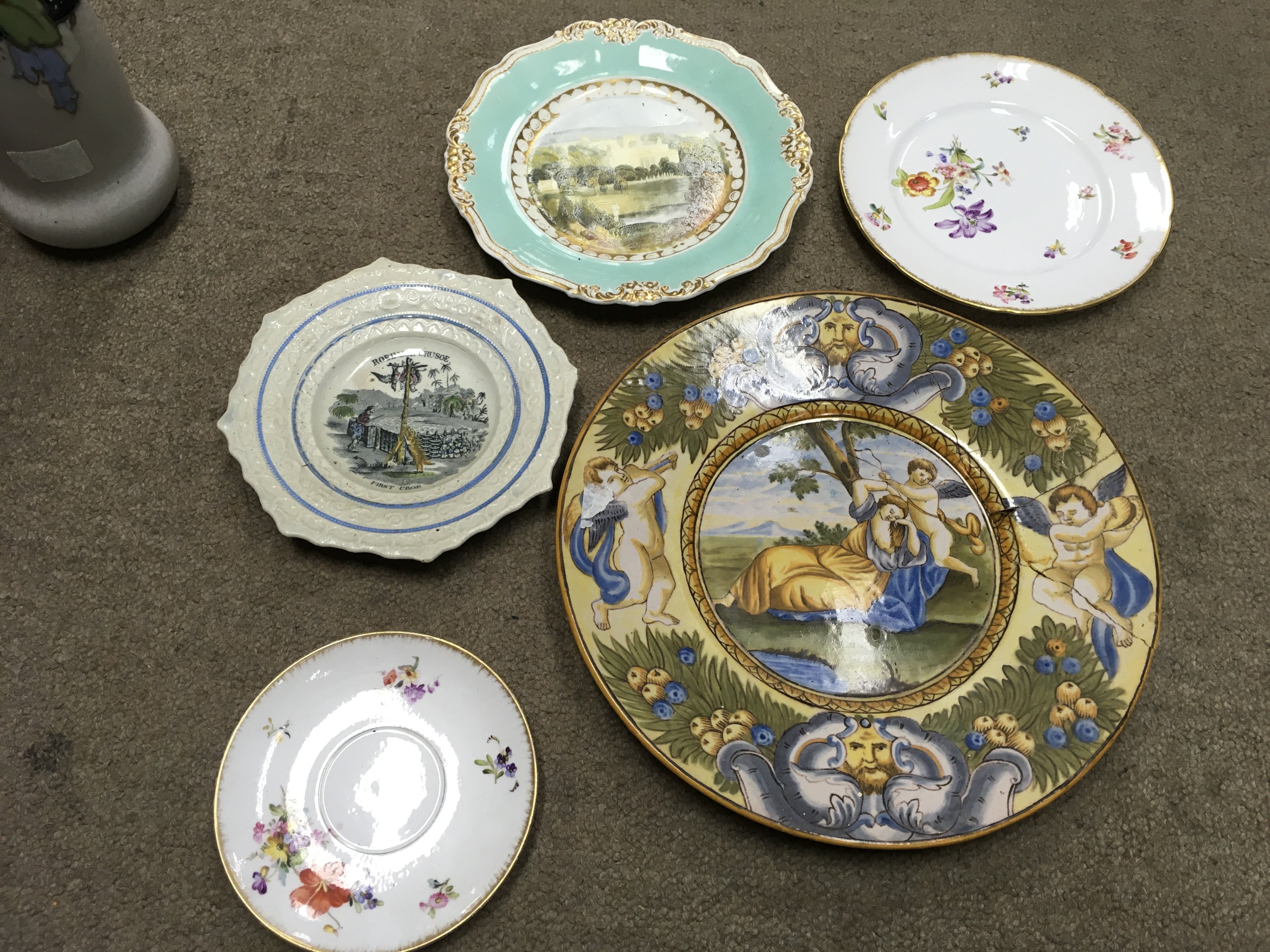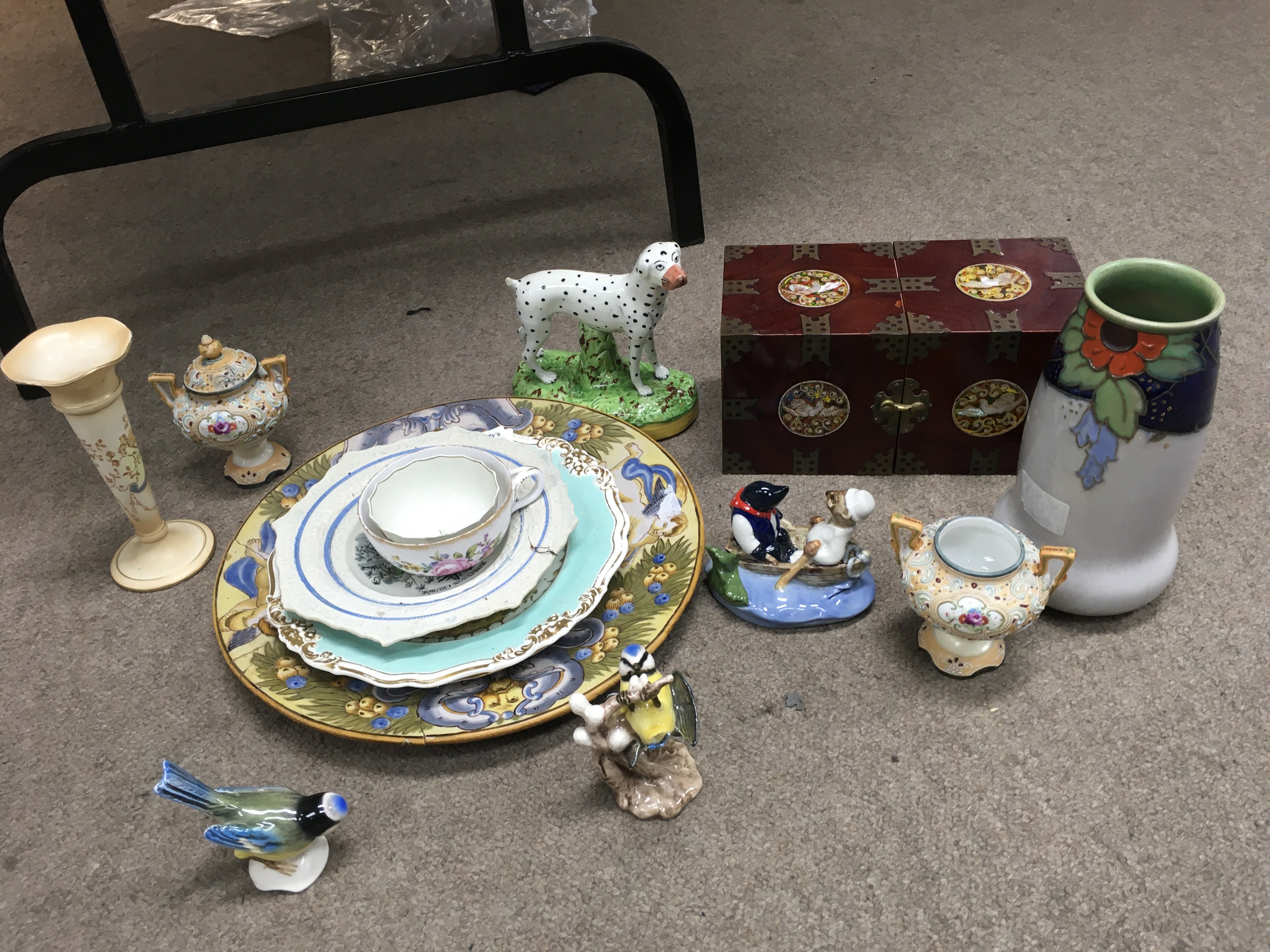 A Collection including a Royal Doulton vase, a hand painted Victorian plate, Phoenix jewellery box, Goebel bird figures, Noritake vase