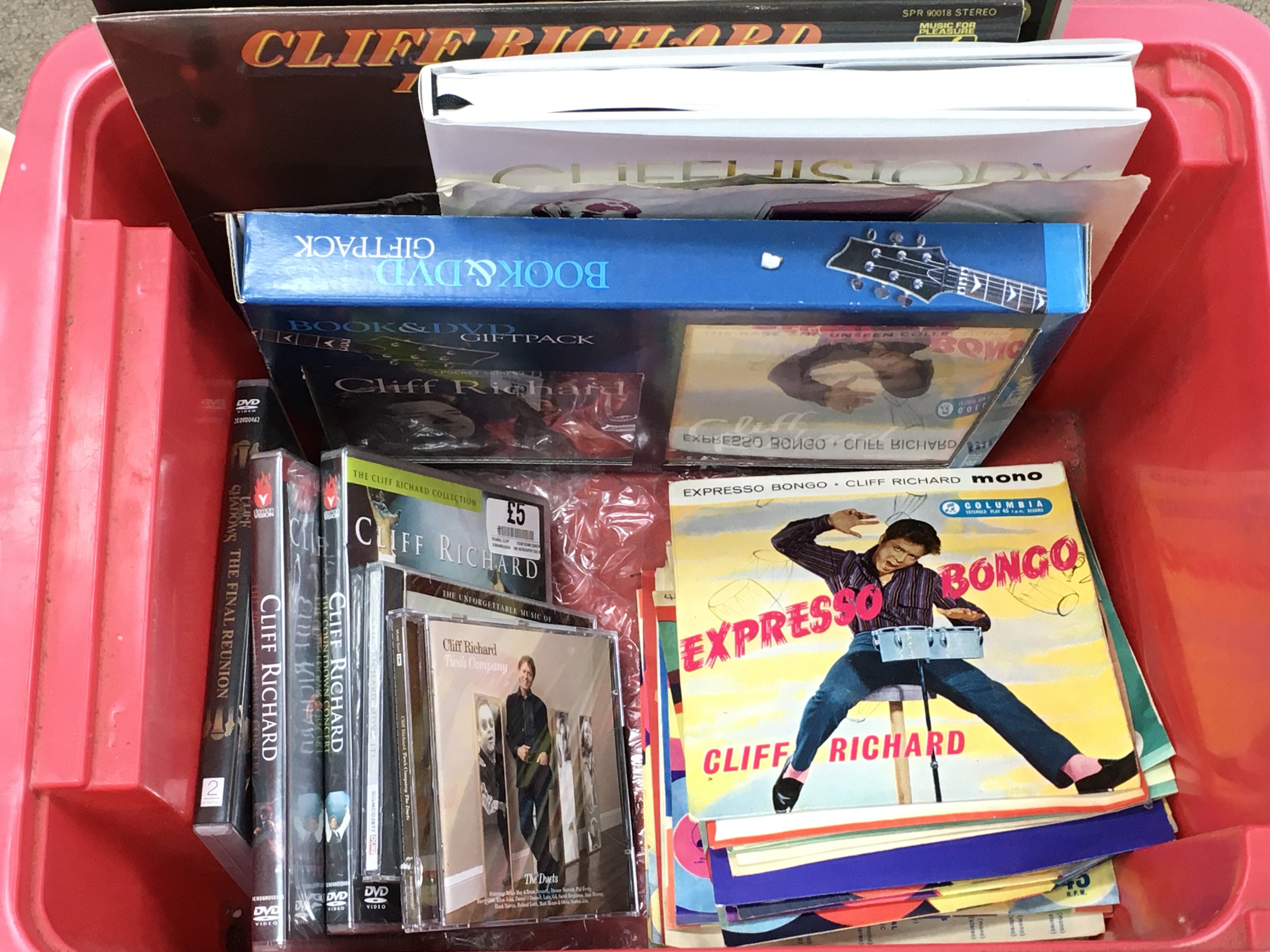 A Collection of Cliff Richard ephemera includes DVDs, 7 inch singles etc