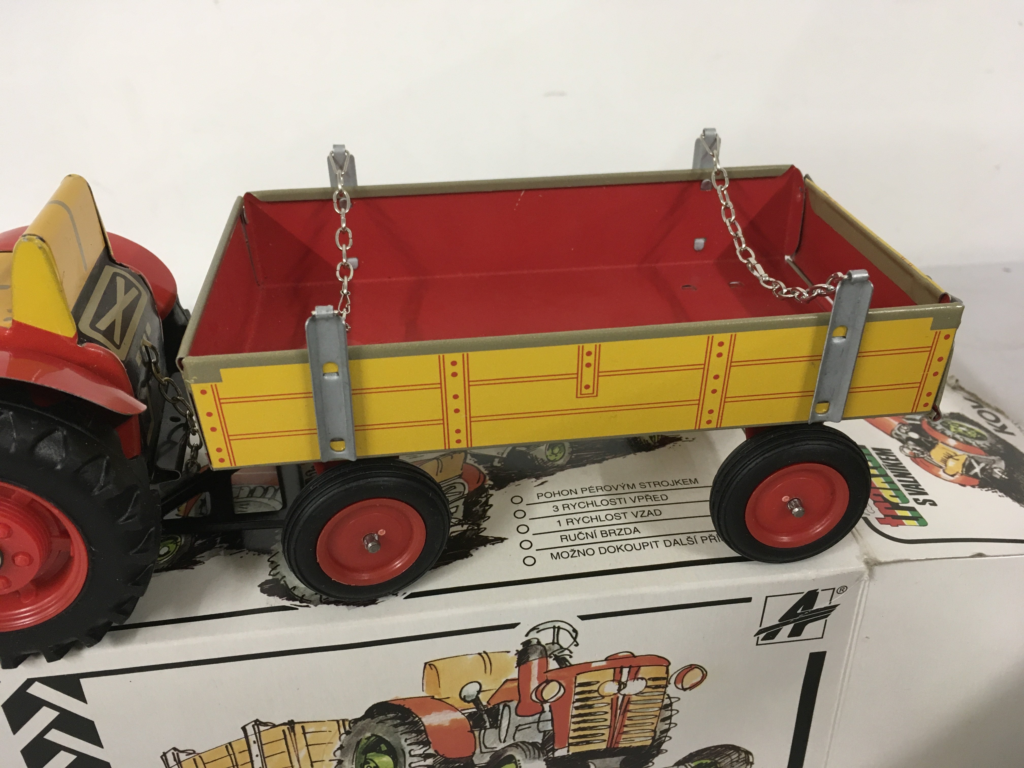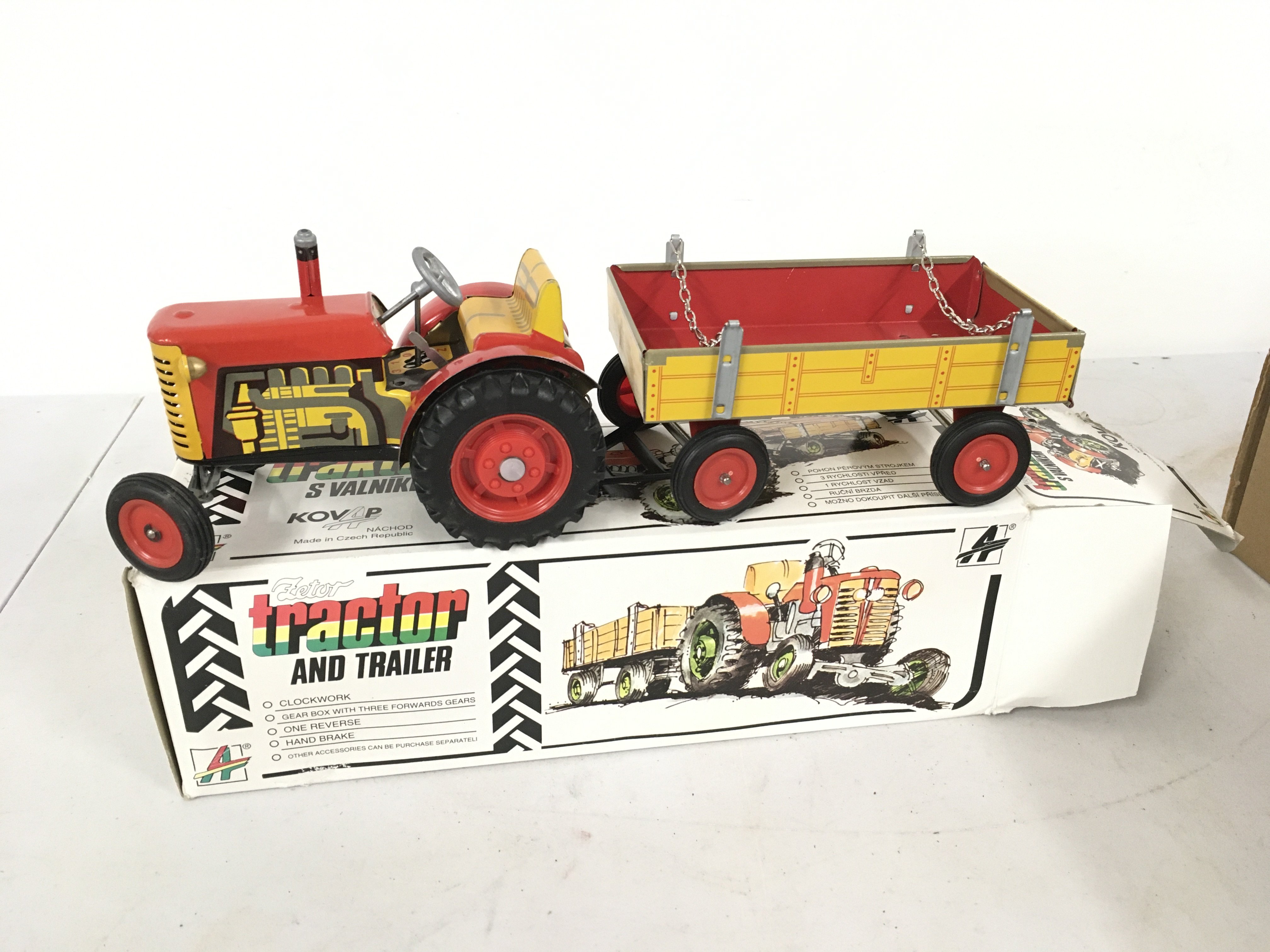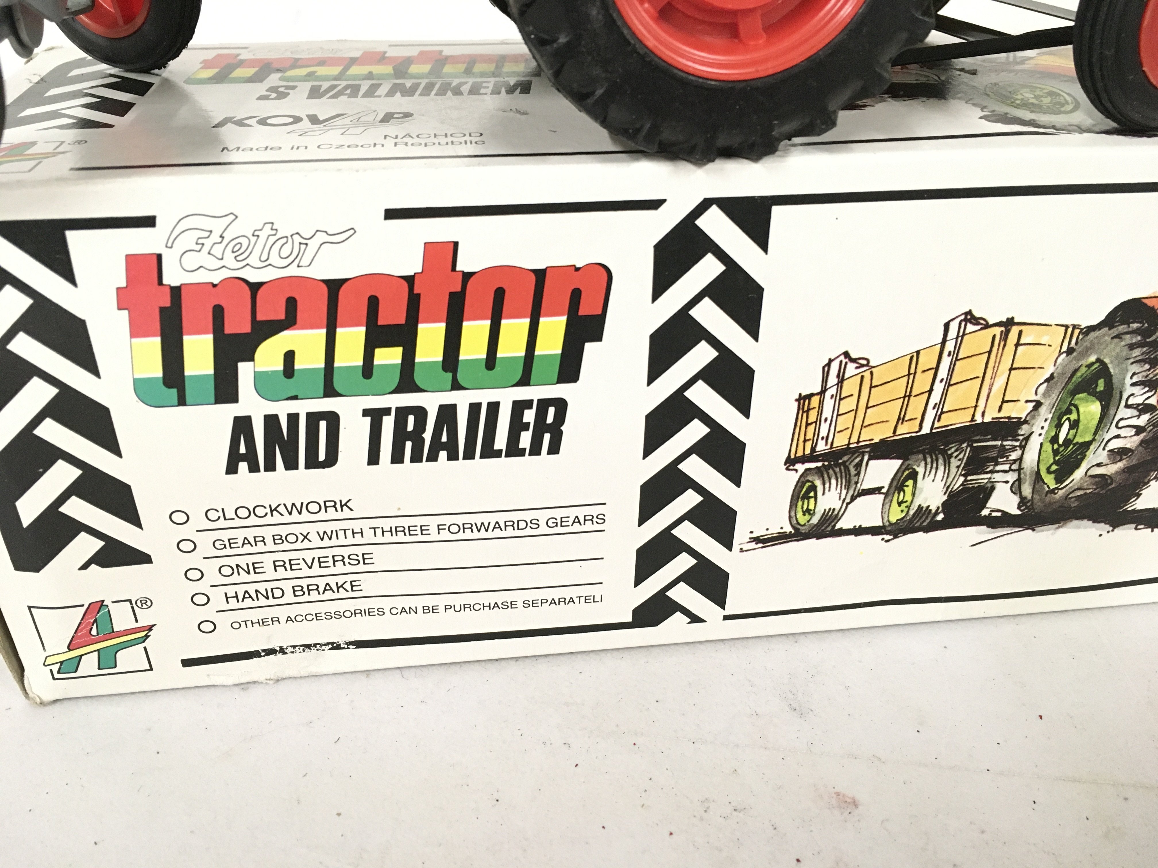 A boxed Fetor clockwork Tractor and Trailer . No key. No reserve