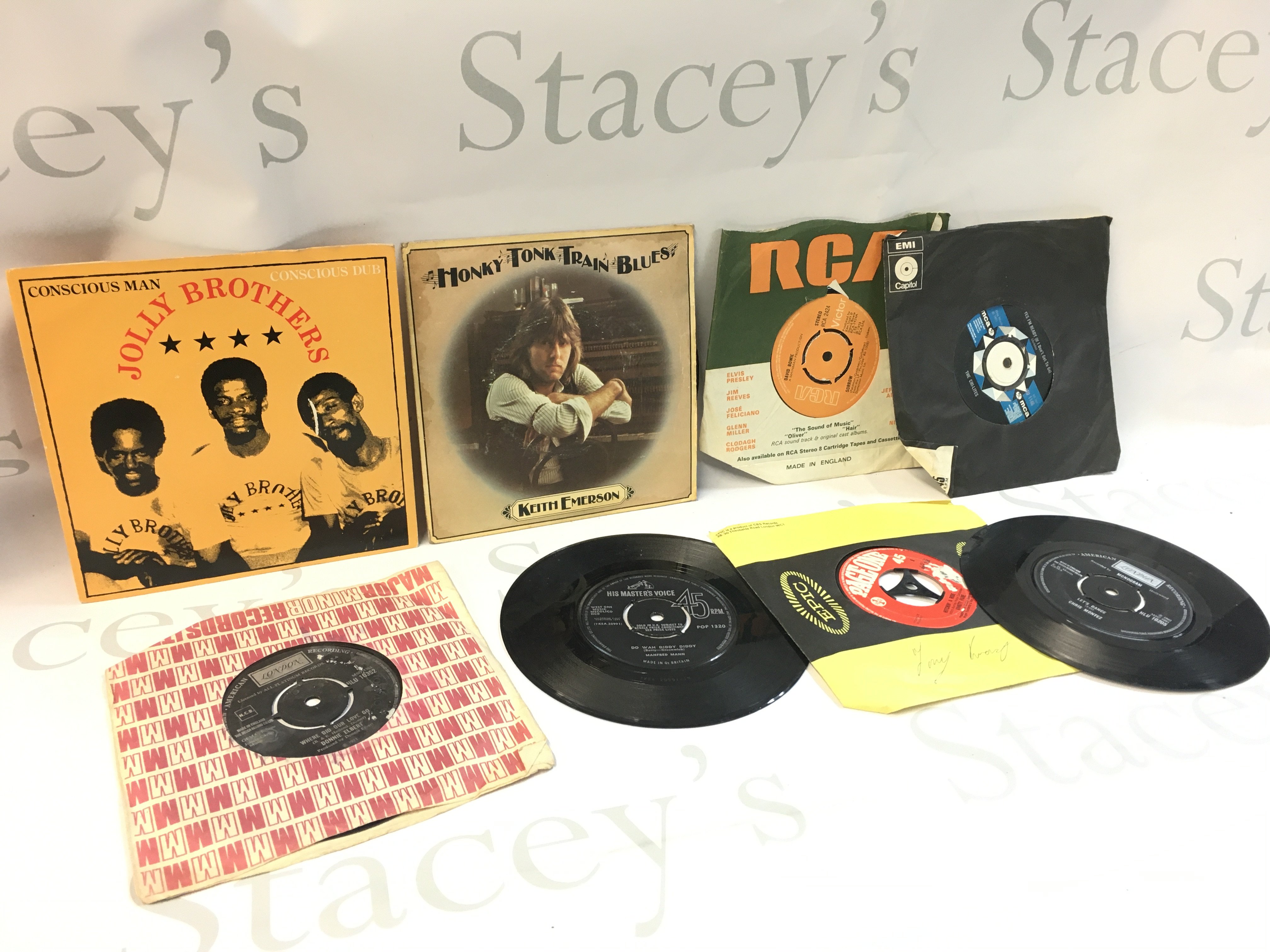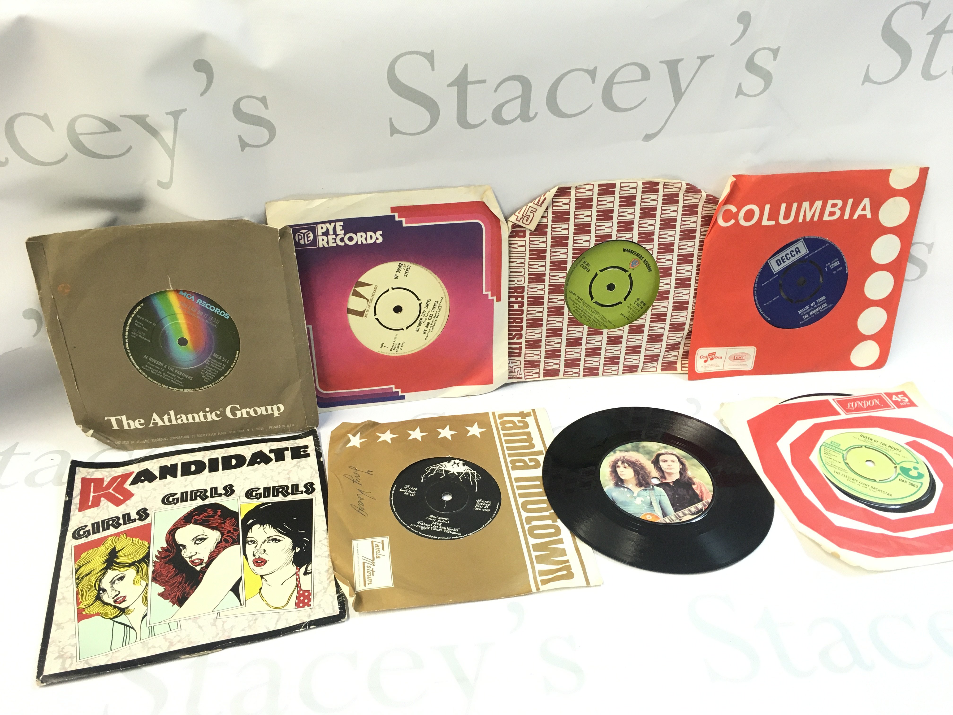 A Collection of rock and pop 7 inch singles including Alice Cooper, Trex, ELO, David Bowie etc.