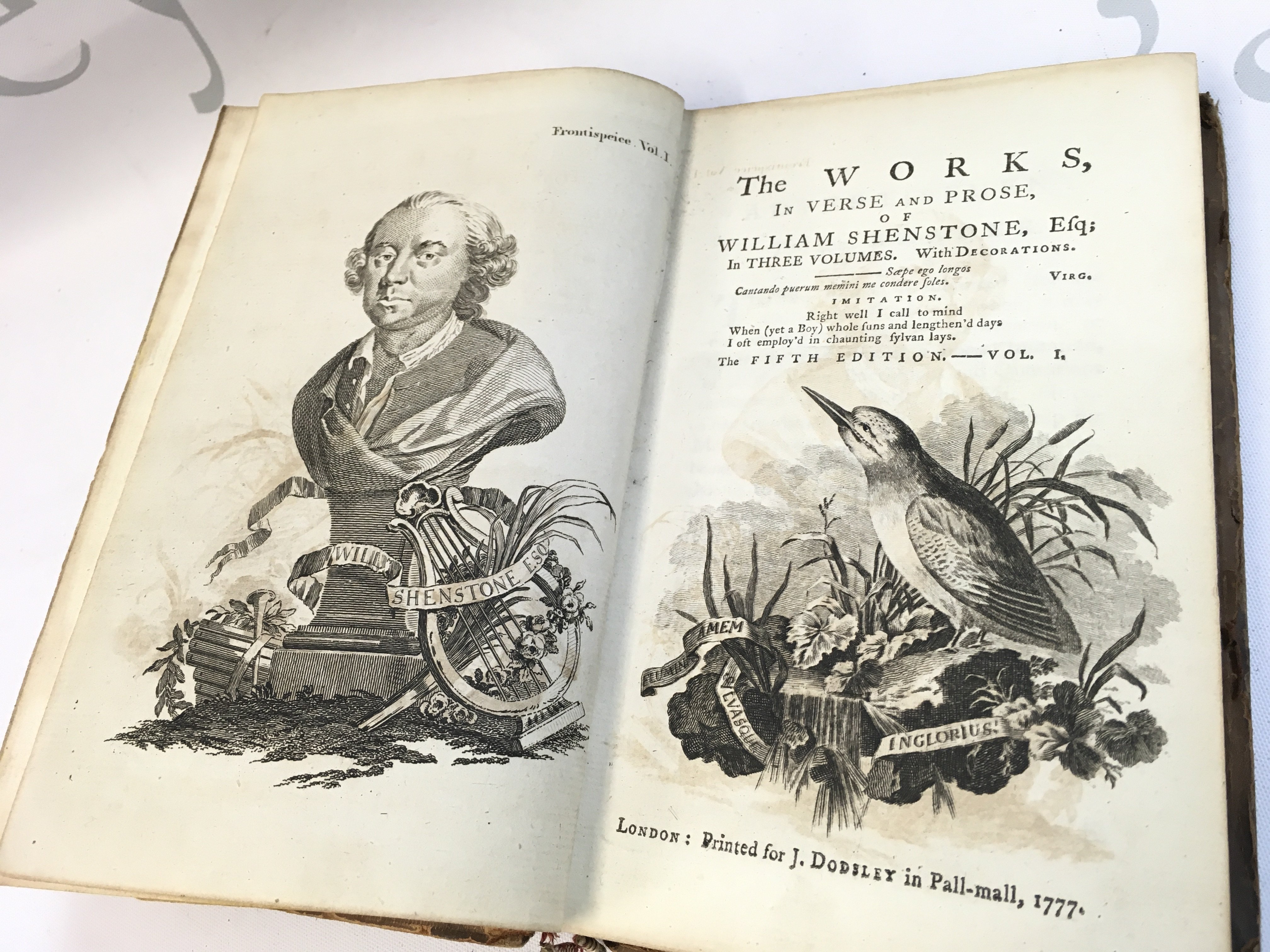 The works in verse and prose of William Shenstone, the fifth edition volume 1. Printed for J.Dodsley in Pall-mall 1777