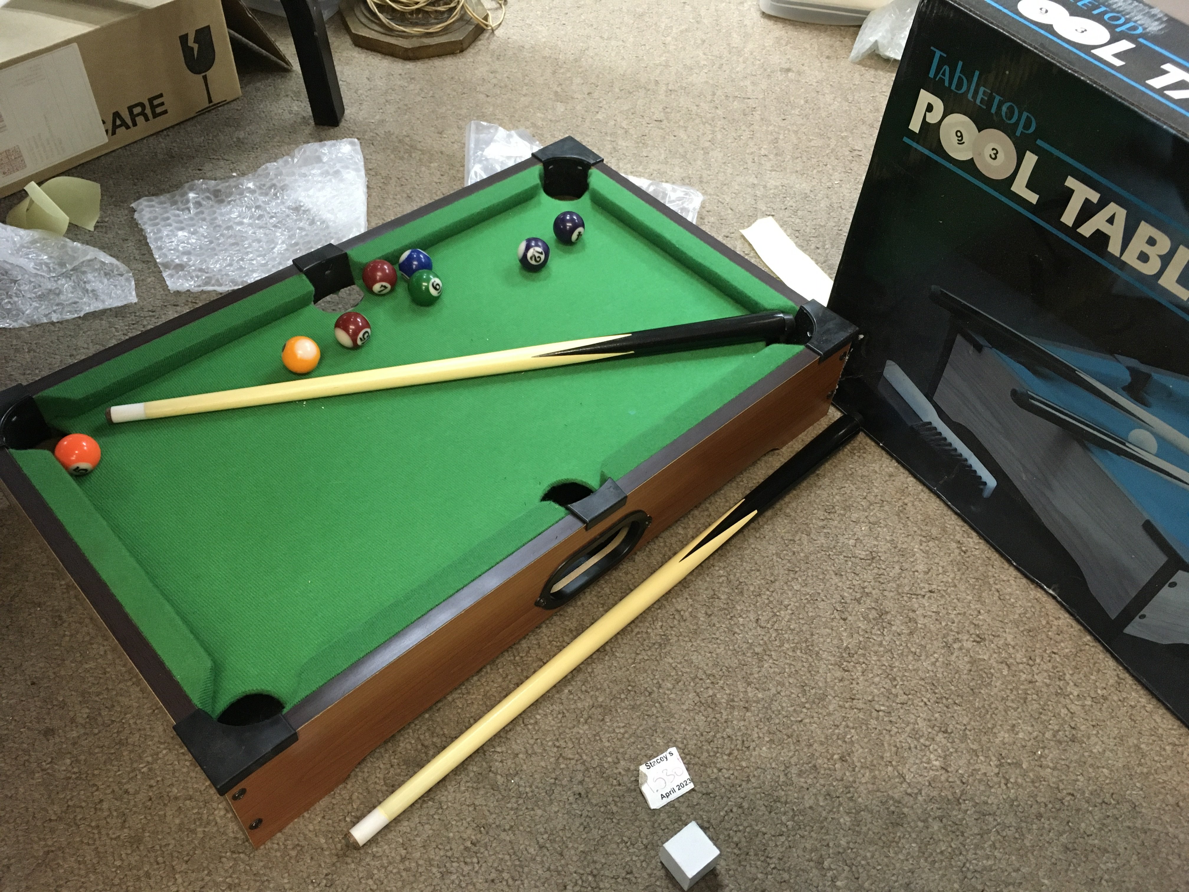 A tabletop pool tableCondition Report
