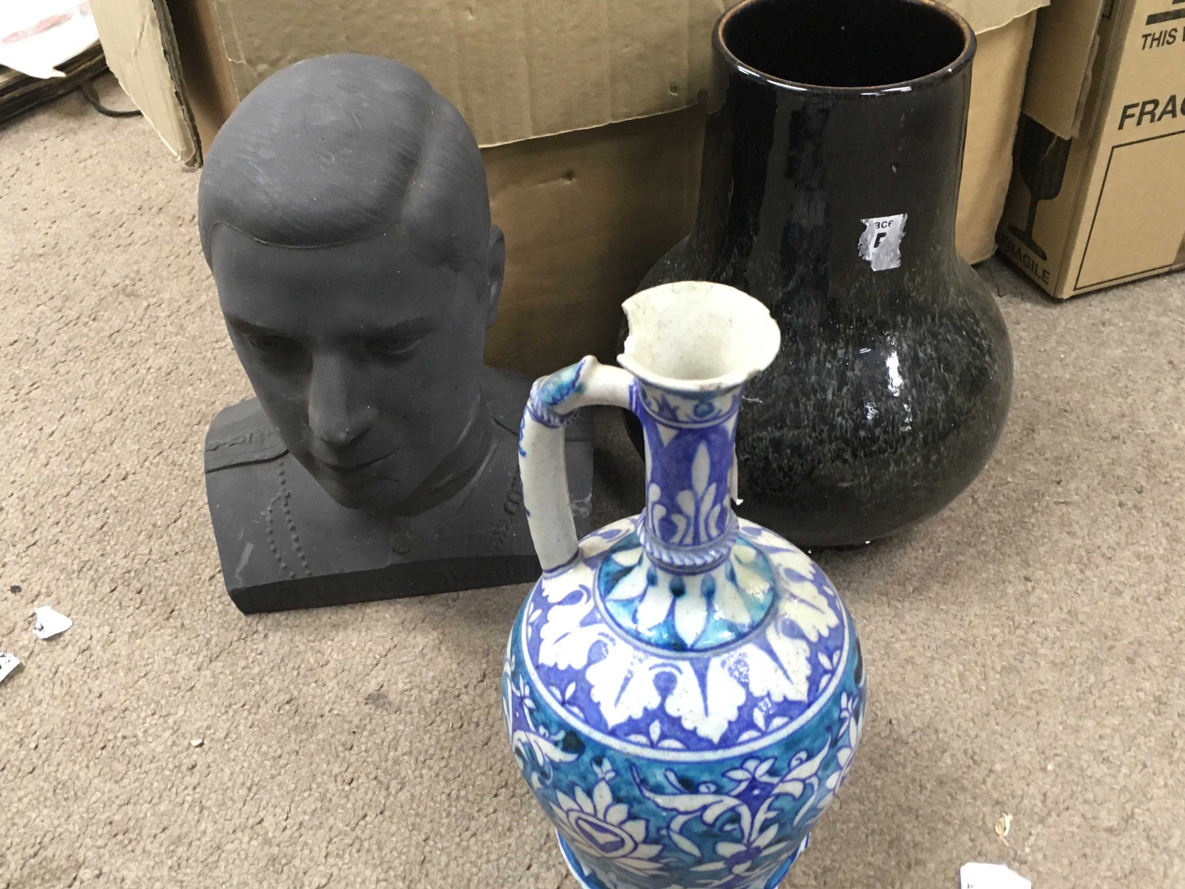 A Collection of items including pen knives, King Edward VIII bust, dagger, vases, nude figure