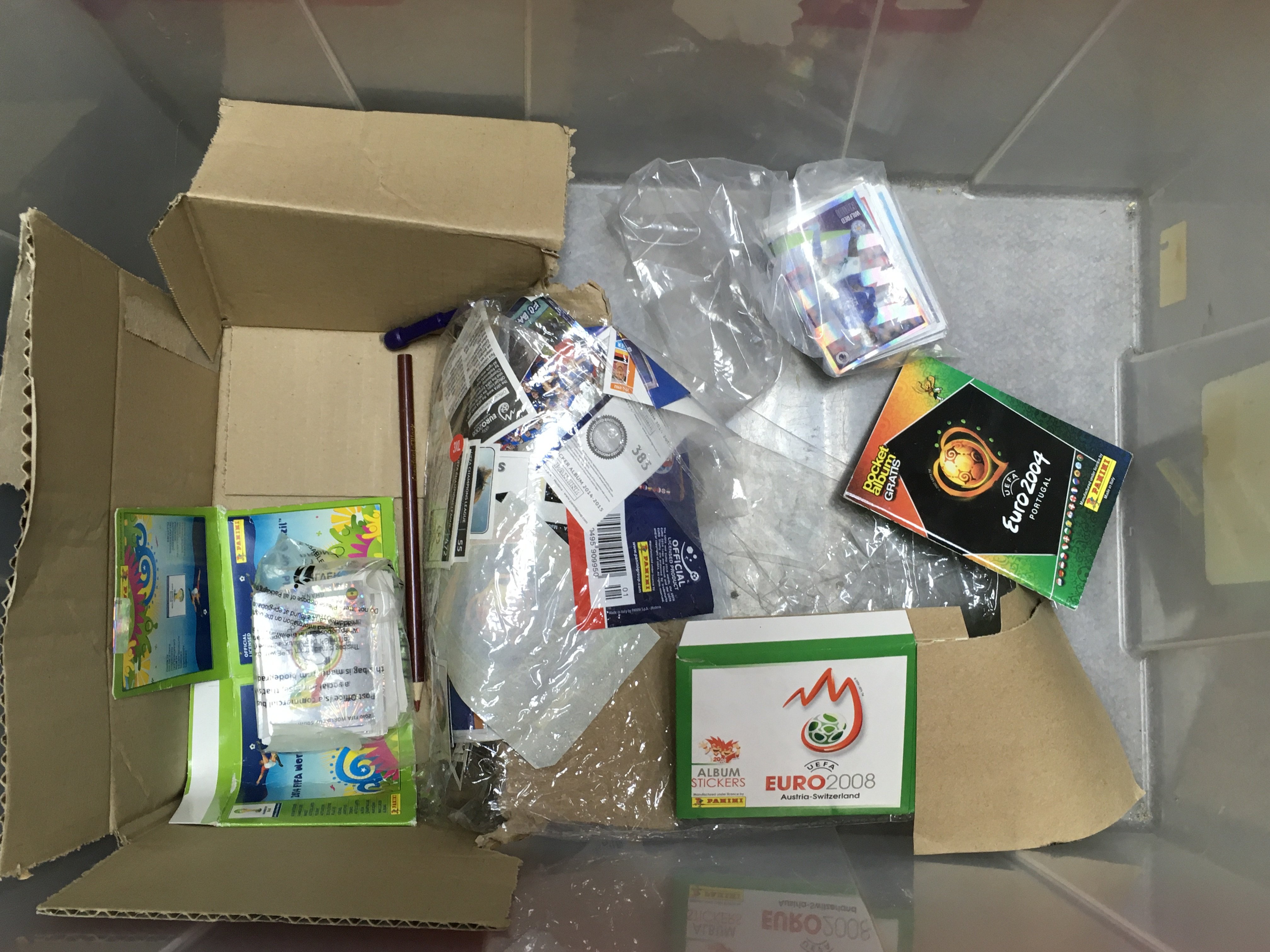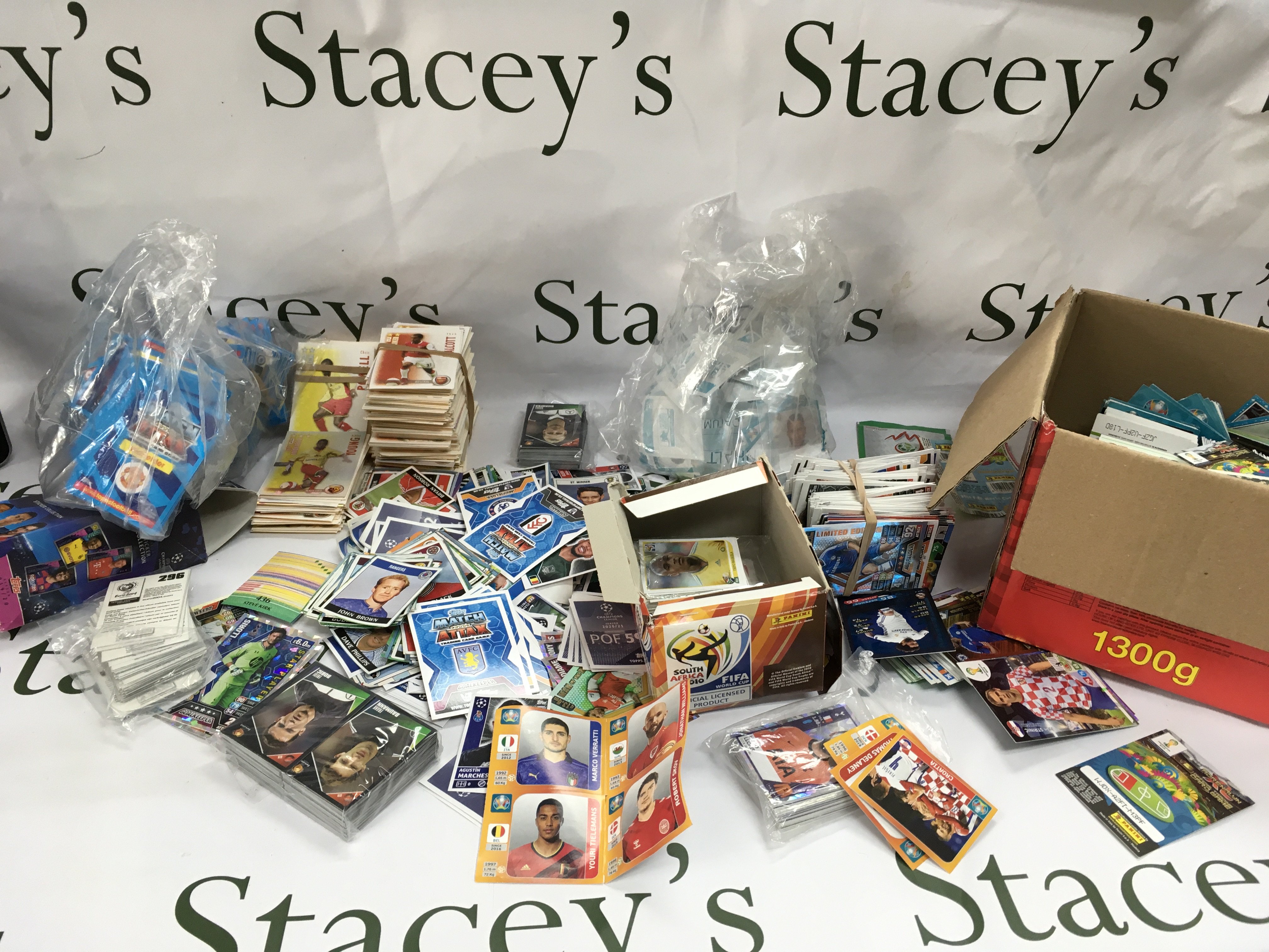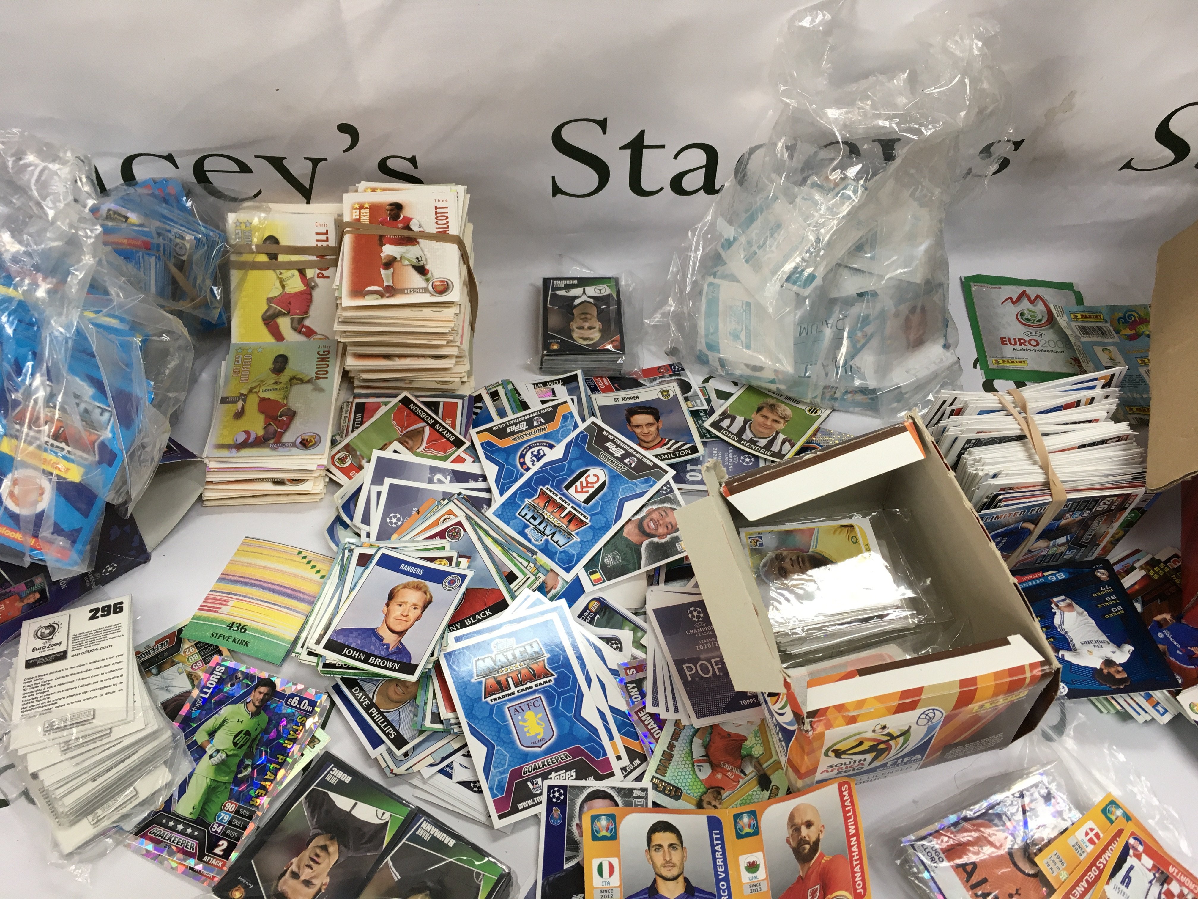 A large collection of assorted football stickers including match attax and panini. No reserve