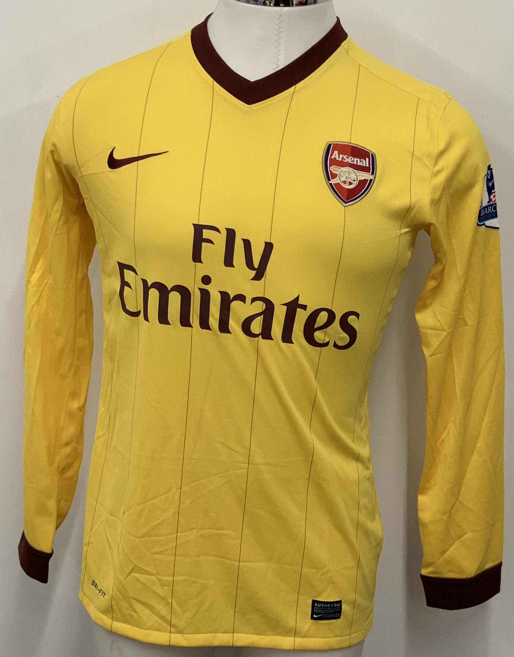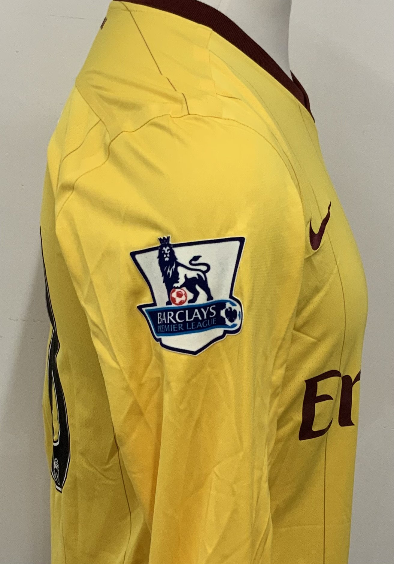 Arsenal 2006 - 2008 Away Match Worn Football Shirt: Yellow long sleeve Nike shirt with Premier League badging to sleeves. Gibbs 28 to rear.