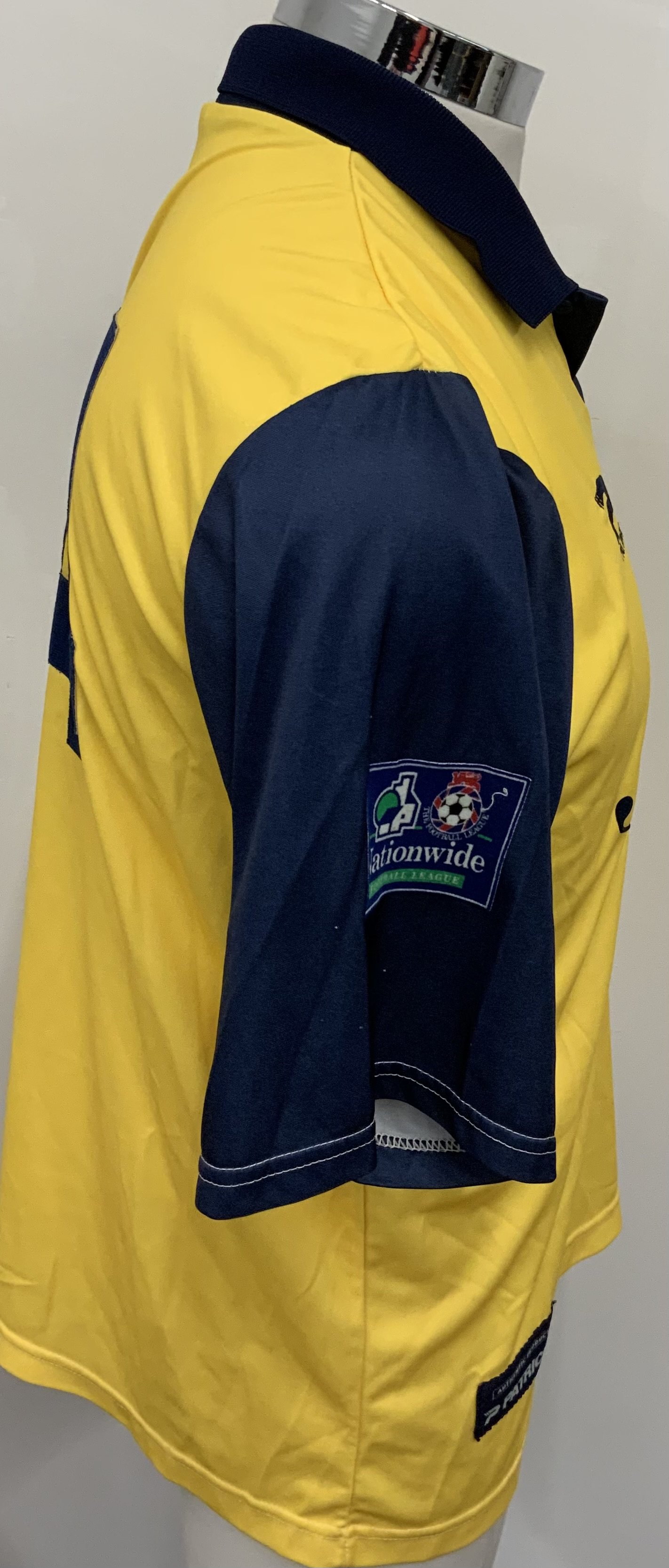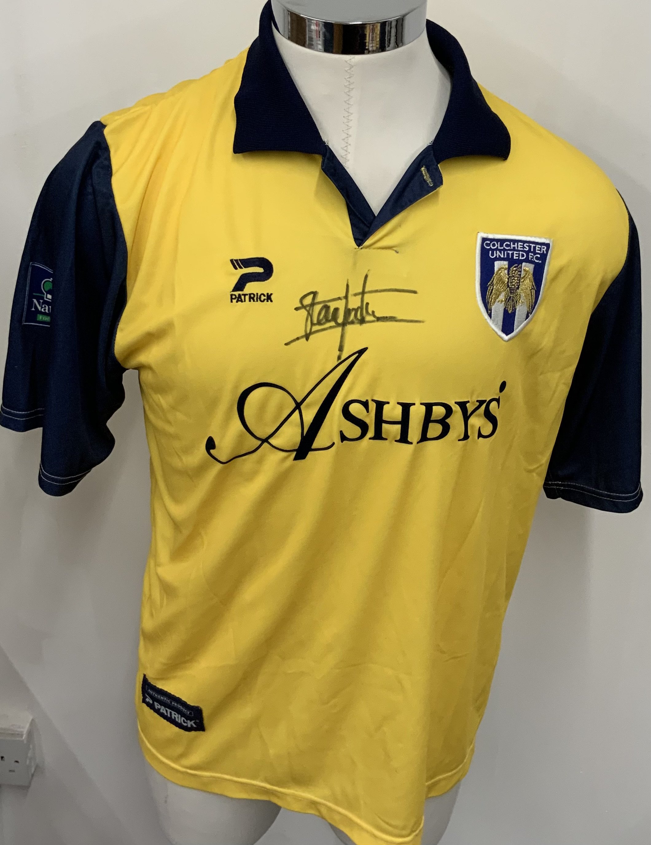 Colchester United 1997 - 1998 Match Worn Football Shirt: Yellow short sleeve shirt with Nationwide League badging to sleeves. Number 14 to rear. Worn by Steve Forbes and signed by him to front.