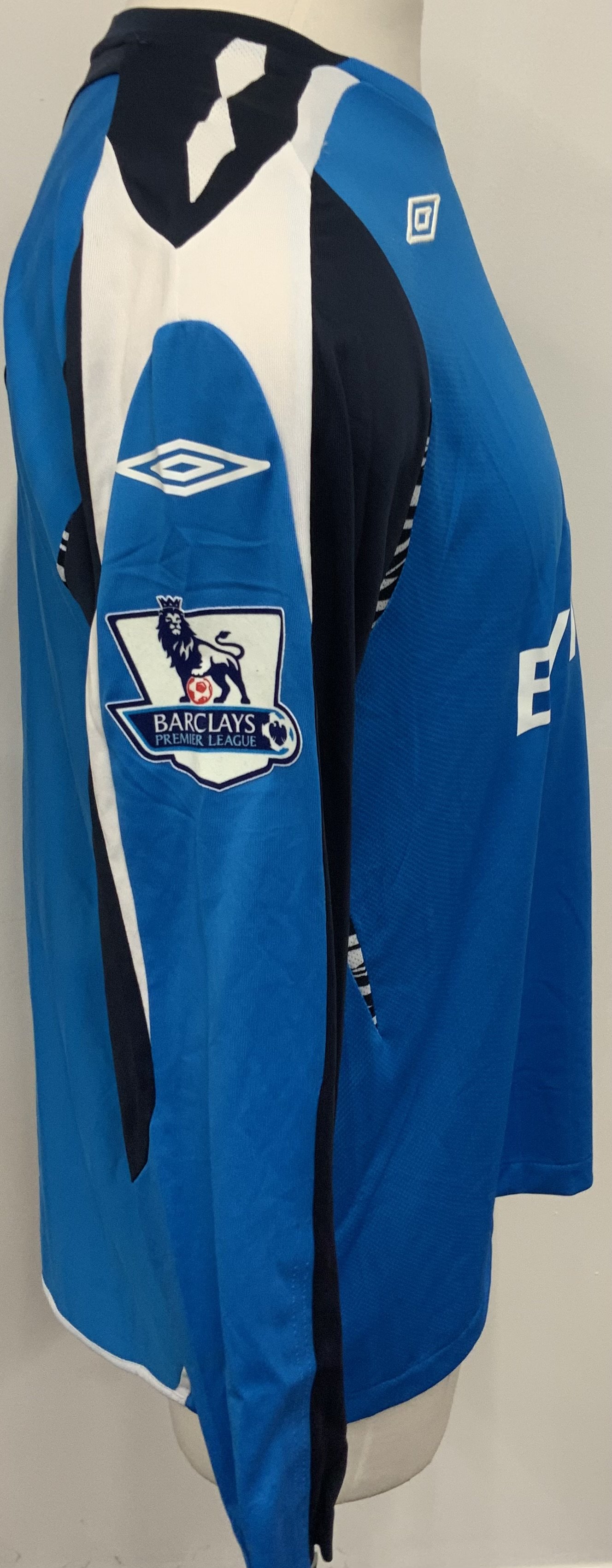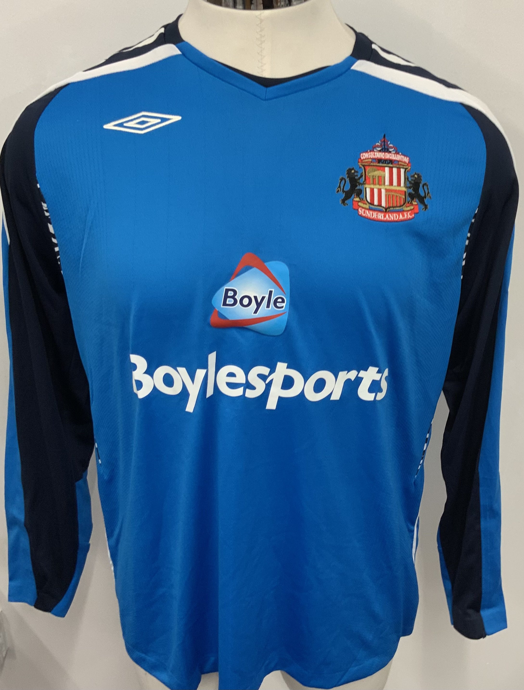 Sunderland 2007 - 2008 Match Worn Football Shirt: Blue long sleeve goalkeepers shirt with Premier League badging to sleeves. Gordon 1 to rear. Sunderland signed player from Hearts for 9 million pounds which was then the British record fee for a goalkeeper.
