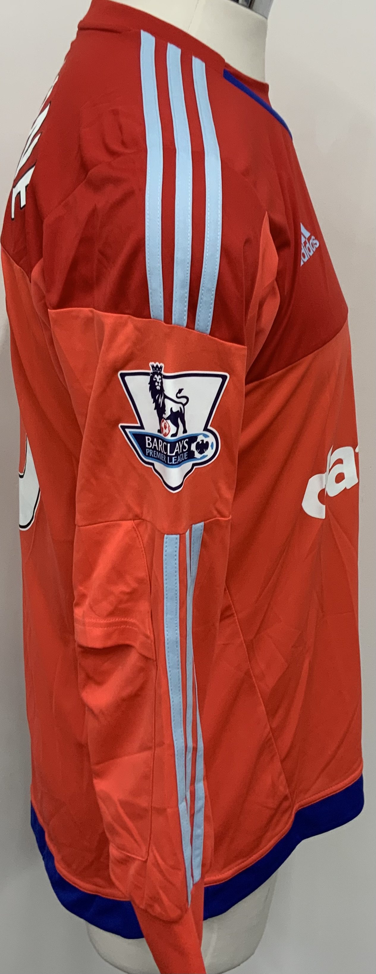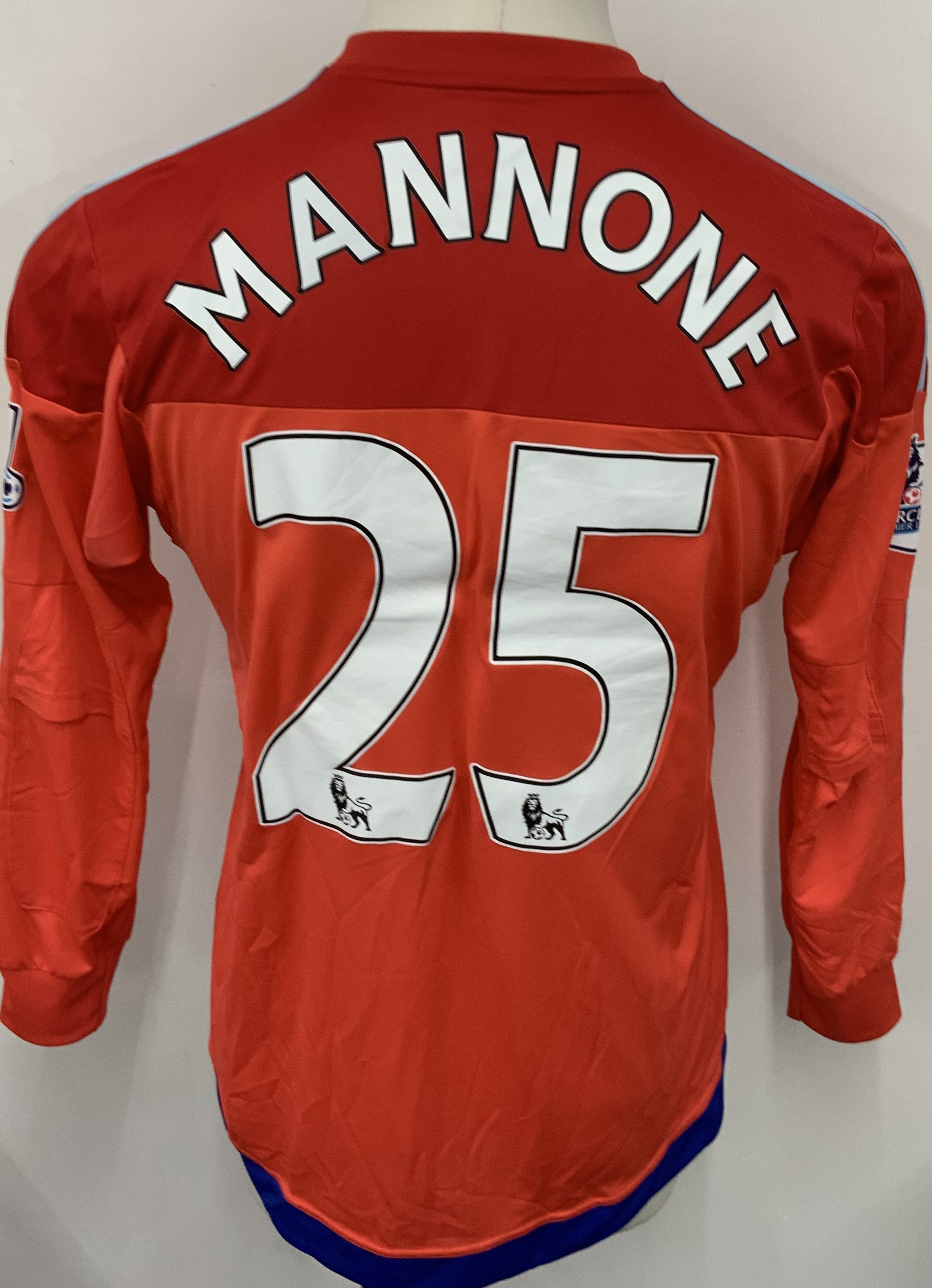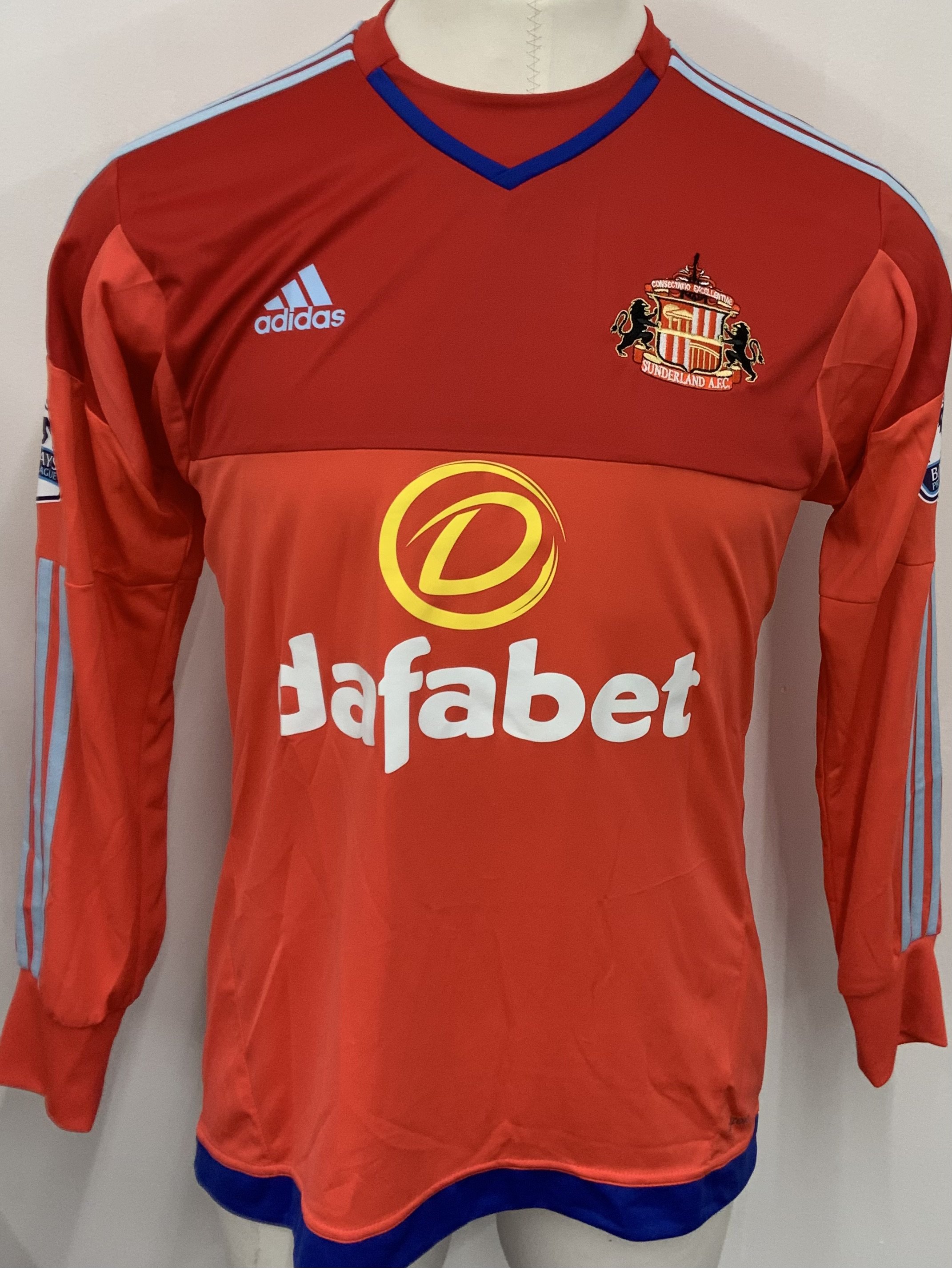 Sunderland 2014 - 2015 Match Worn Football Shirt: Red long sleeve goalkeepers shirt with Premier League badging to sleeves. Mannone 25 to rear.