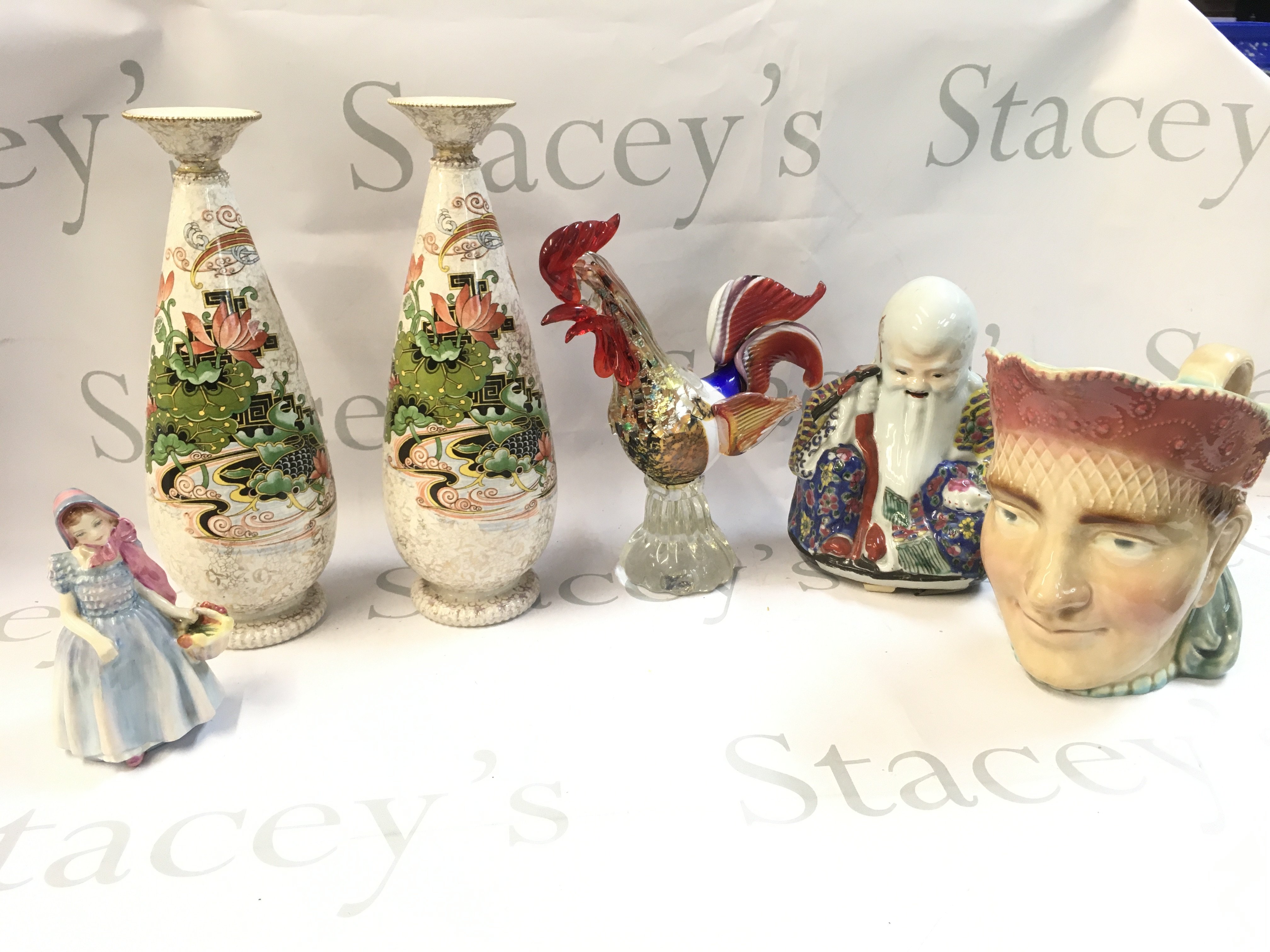 A Collection of ceramics including Royal Doulton Wendy, a pair of Hainan vases, art glass rooster
