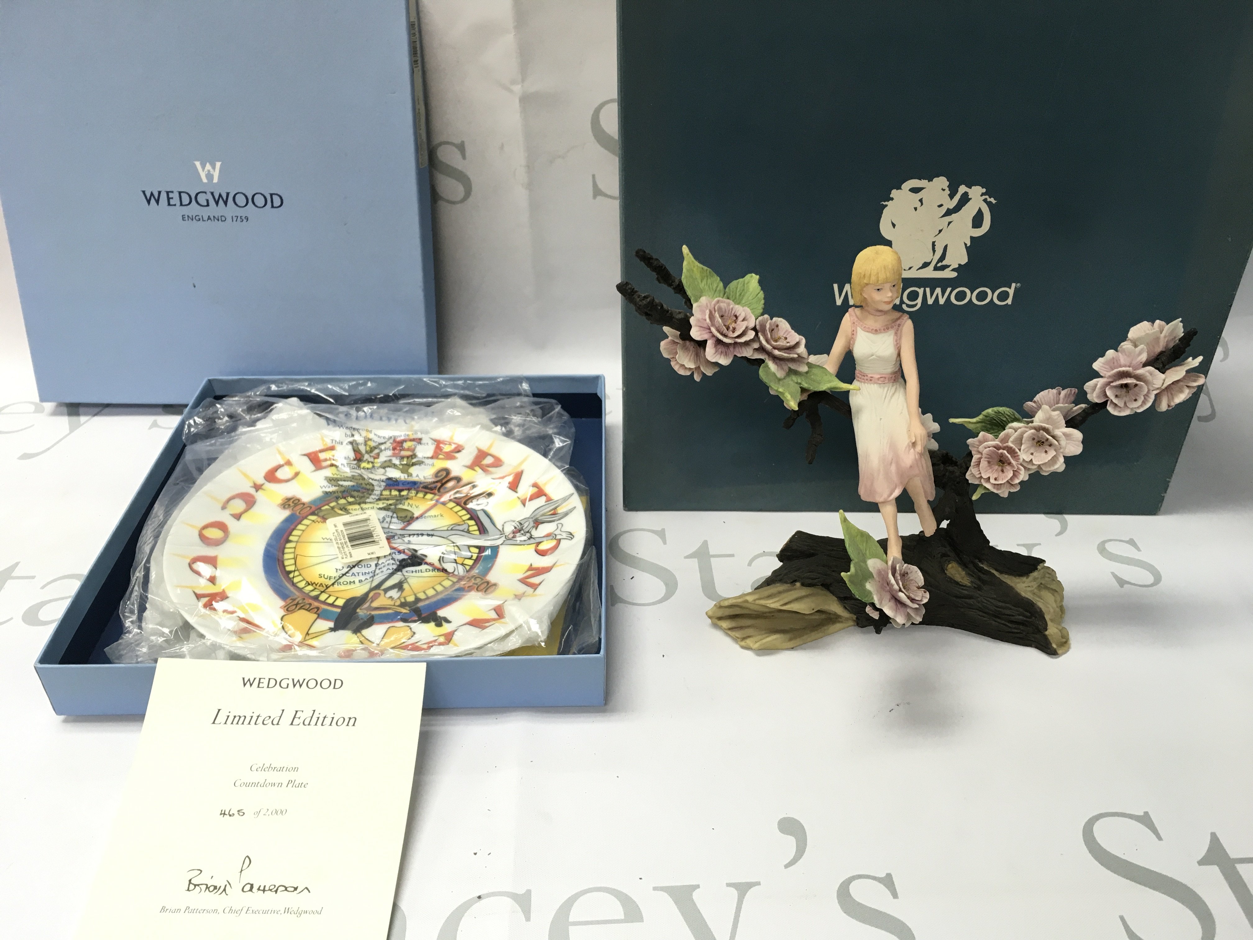 A Wedgewood four seasons figurine and a Ltd edition plate both in boxes. No Reserve.