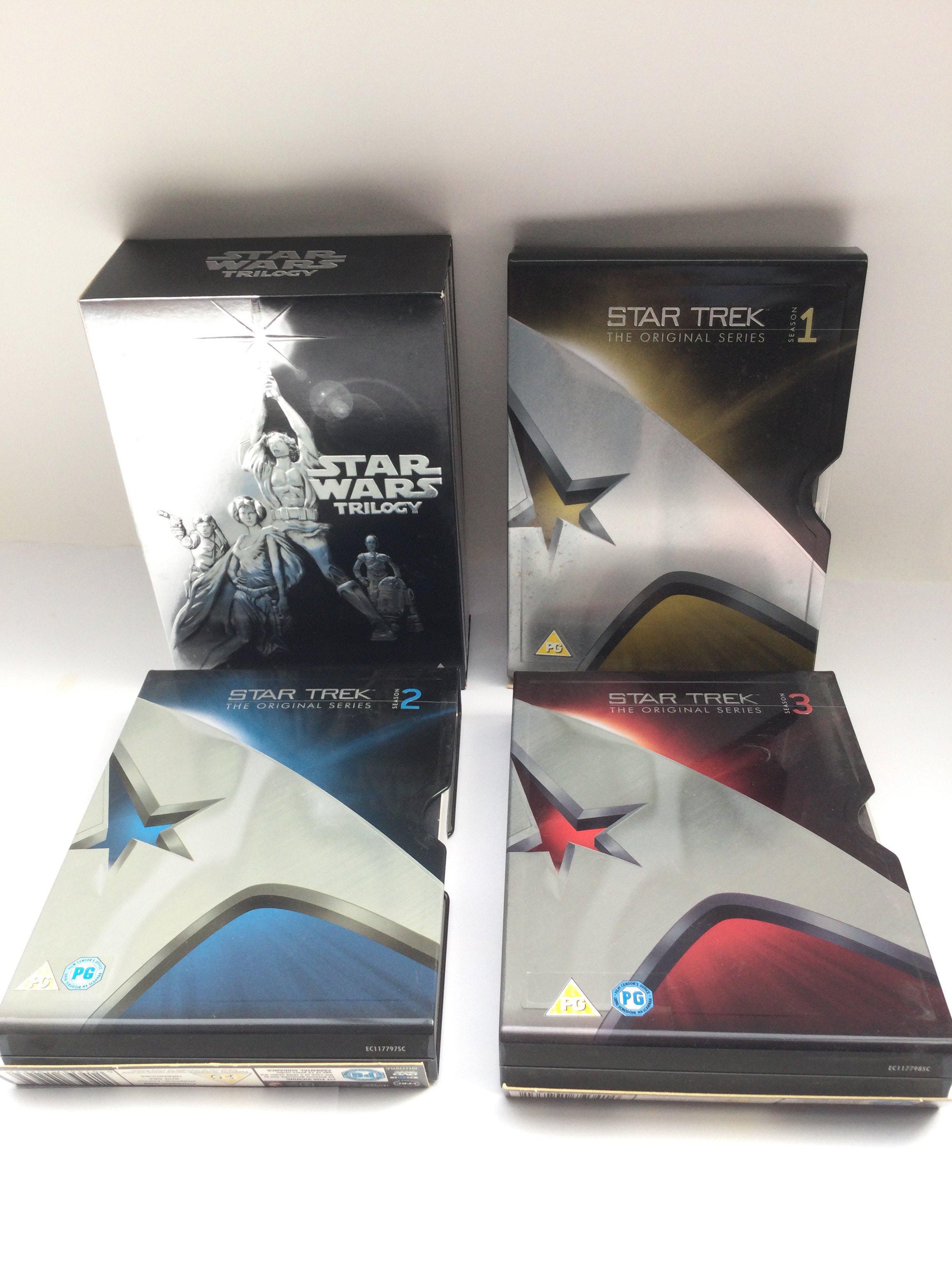 Three Star Trek original series steel book DVD sets and a Star Wars Trilogy DVD box set (4).