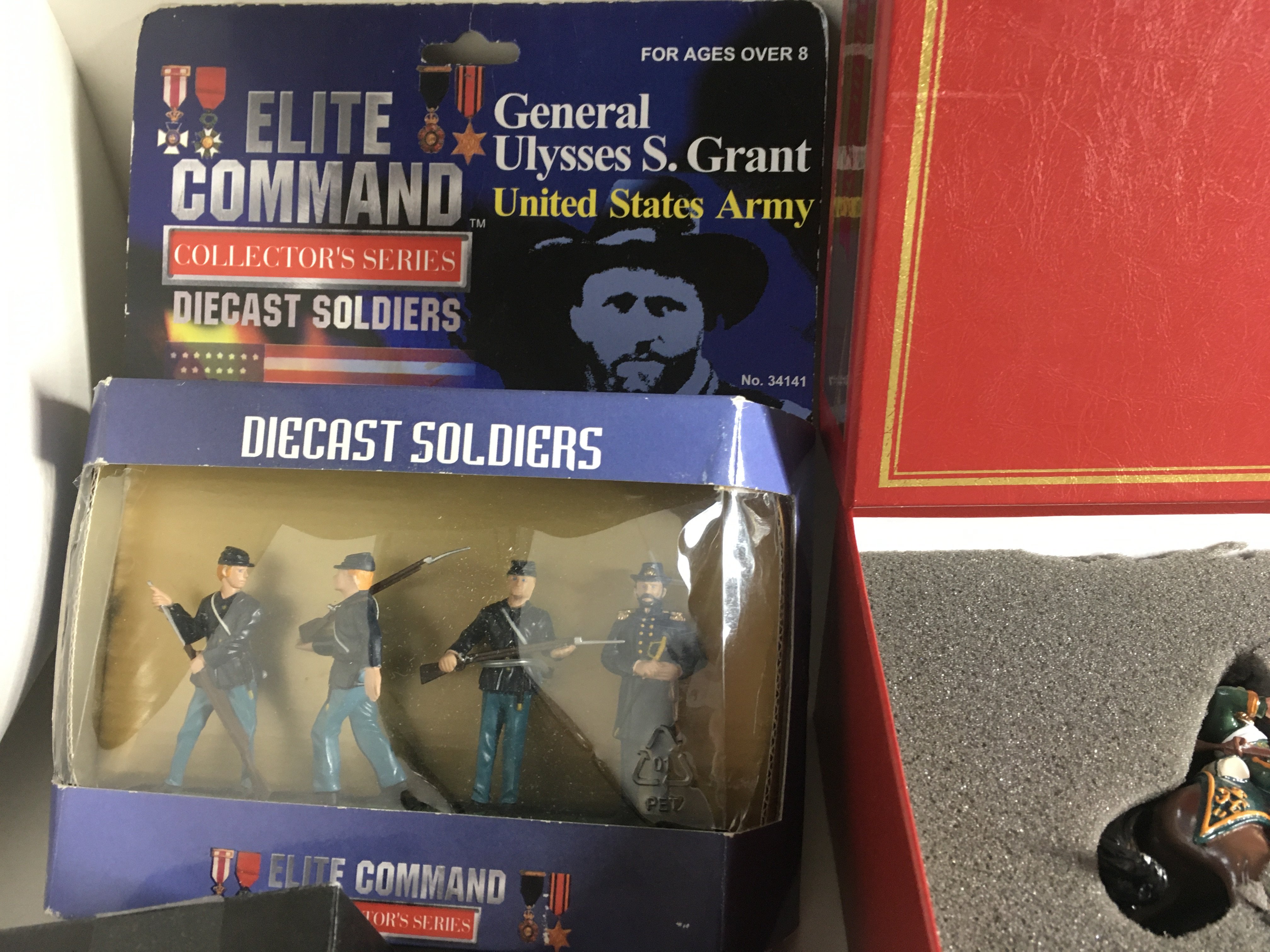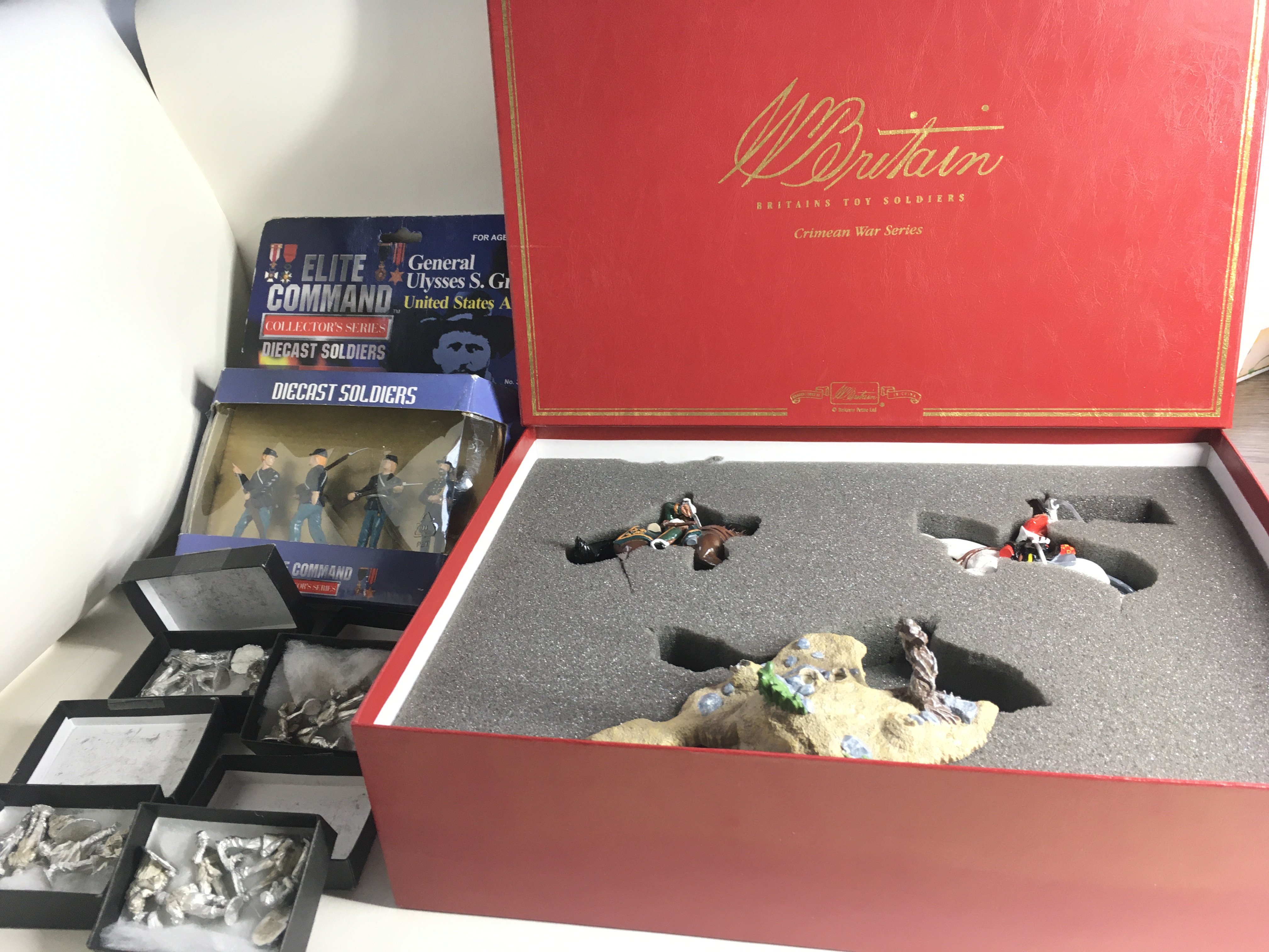 Britains Crimean war series Scots Greys Duals 11th Hussars. Plaus ACW box set of Grant and other figures. Also set of metal unpainted ACW confederate figures.