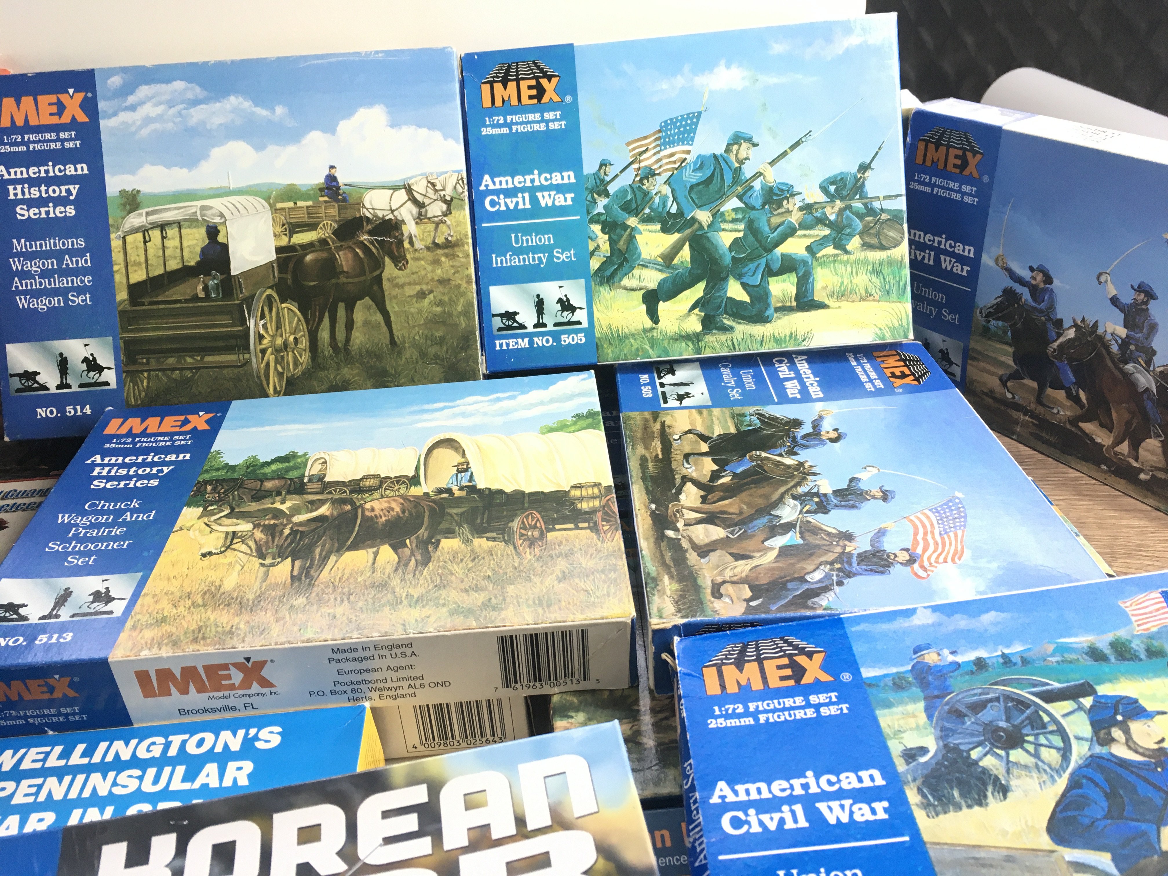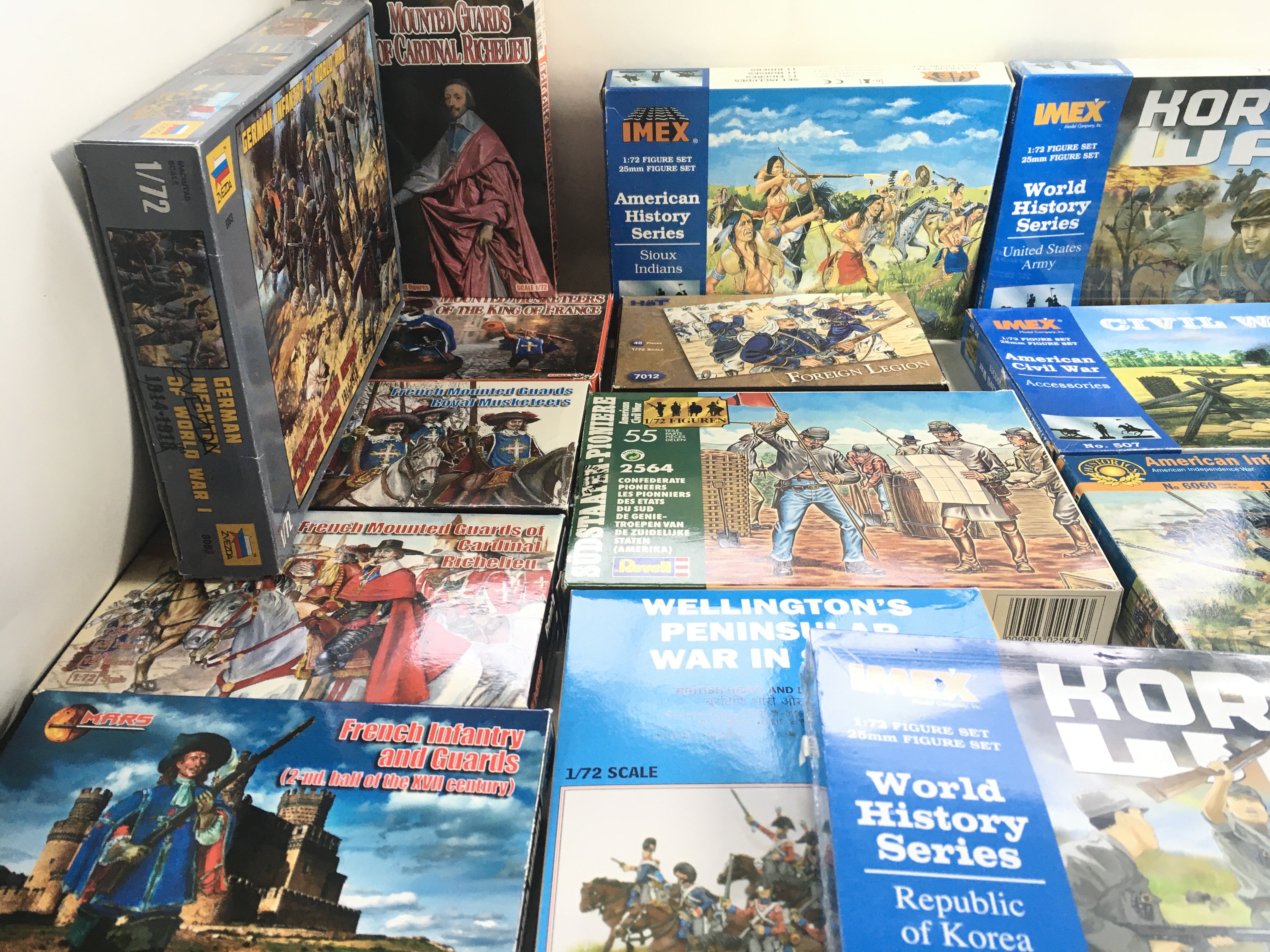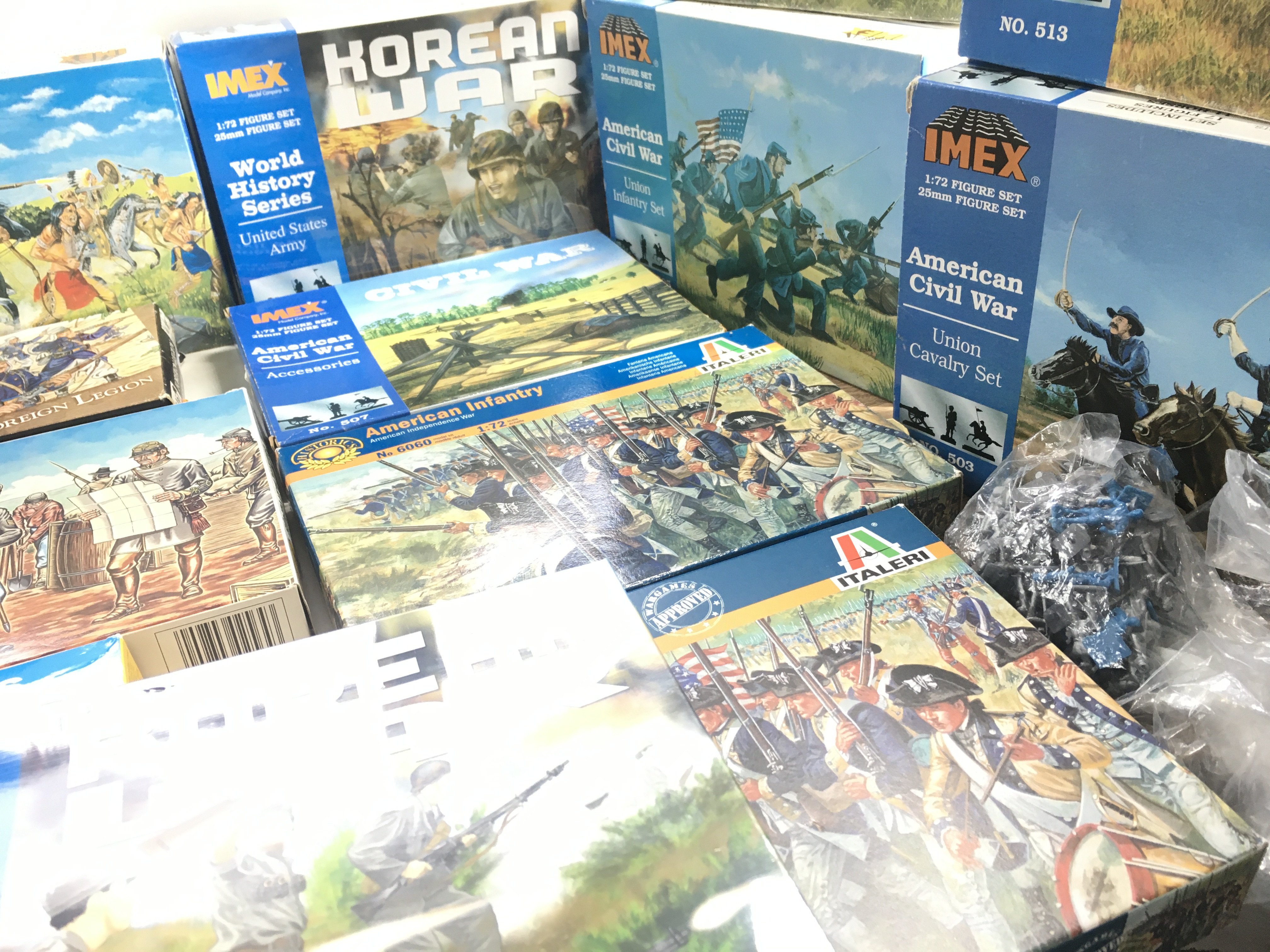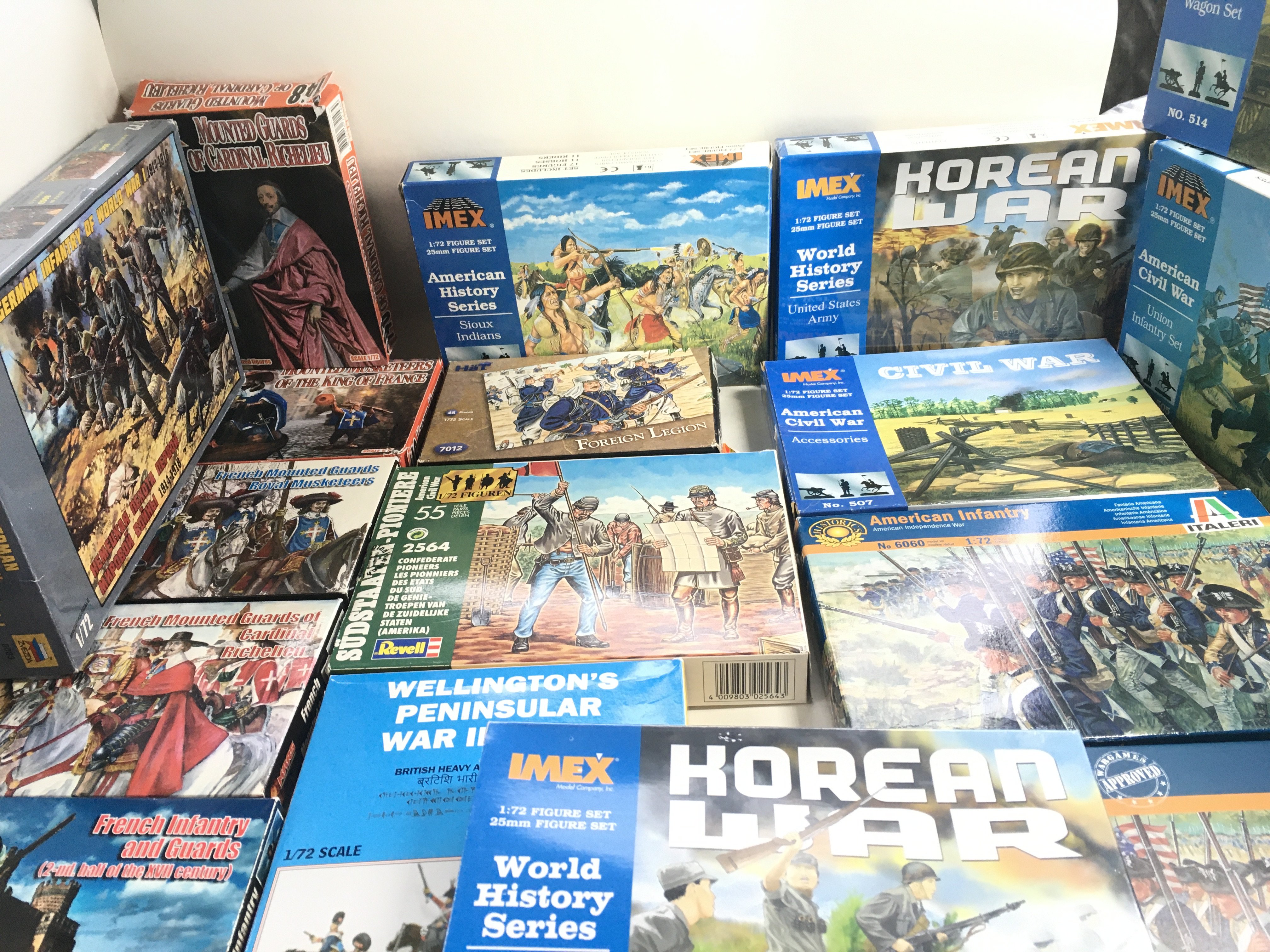 A collection of 20 boxes of HAT..IMEX..ITALERI..REVELL and others plastic figures including American civil war..wagons..Indians..foreign legion..etc