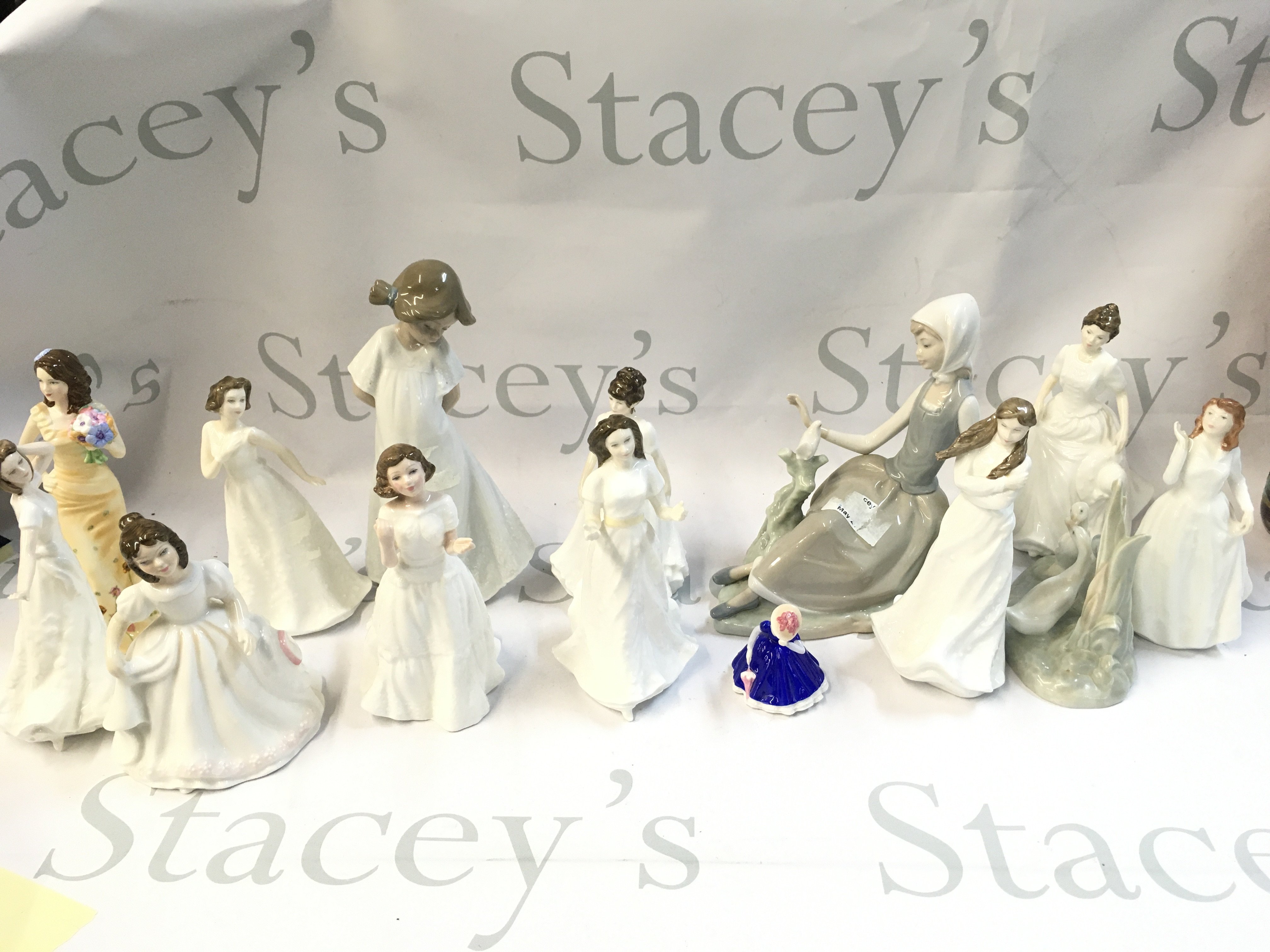 A collection of porcelain figures including Royal Doulton, Nao, Lladro