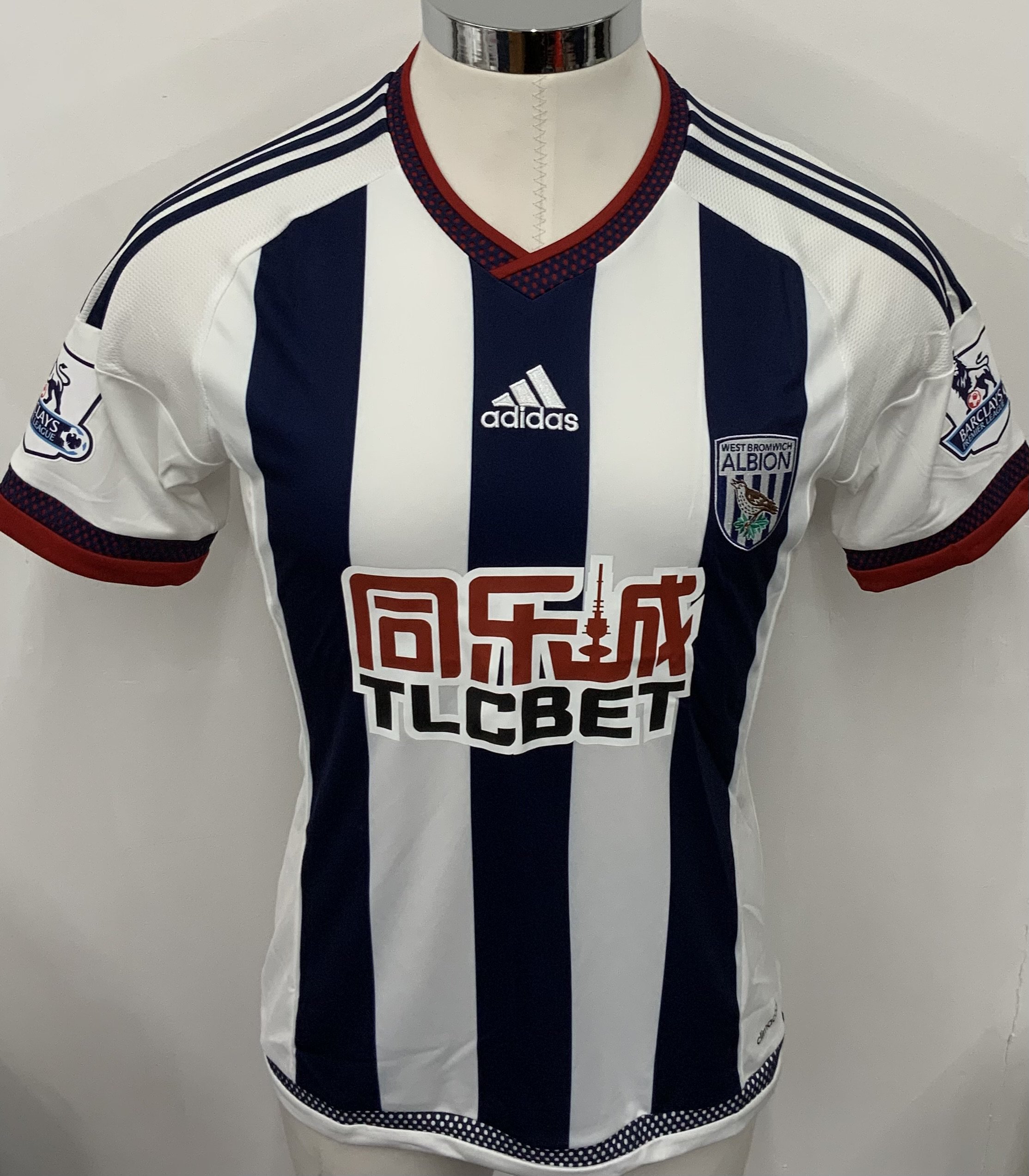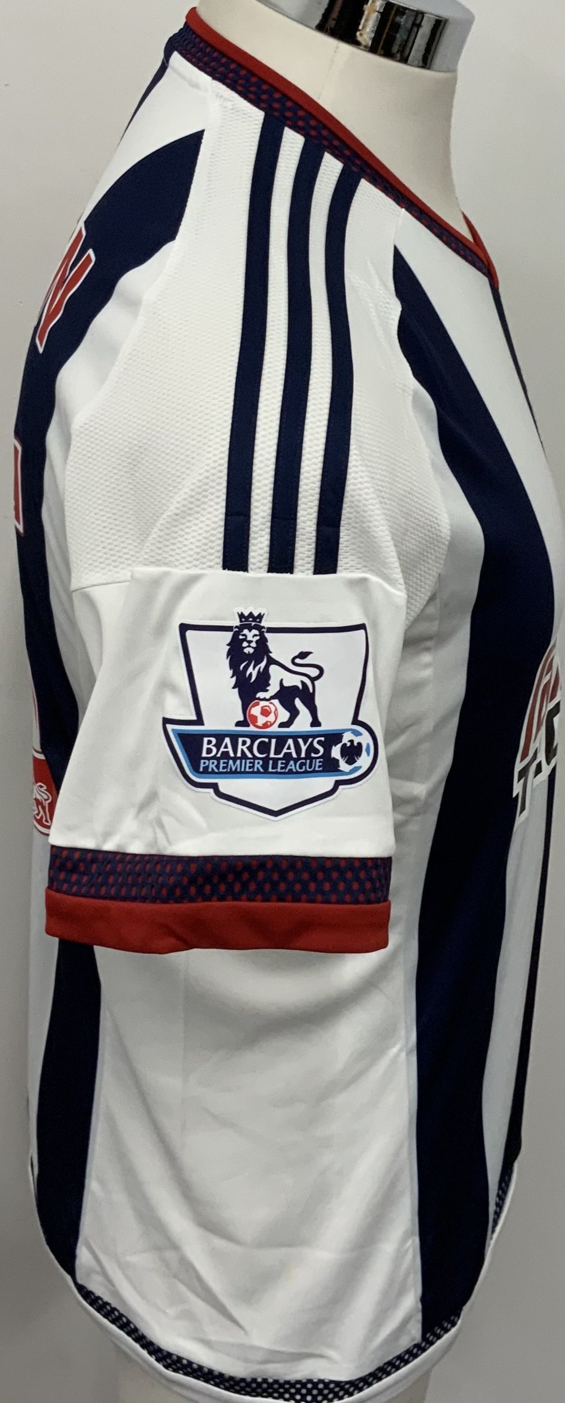 West Brom 2015 - 2016 Match Worn Football Shirt: Blue and white short sleeve shirt with Premier League badging to sleeves. Dawson 25 to rear. Worn during the 2-1 win v Arsenal on 21 November 2015, courtesy of a winning own goal from Mikel Arteta.