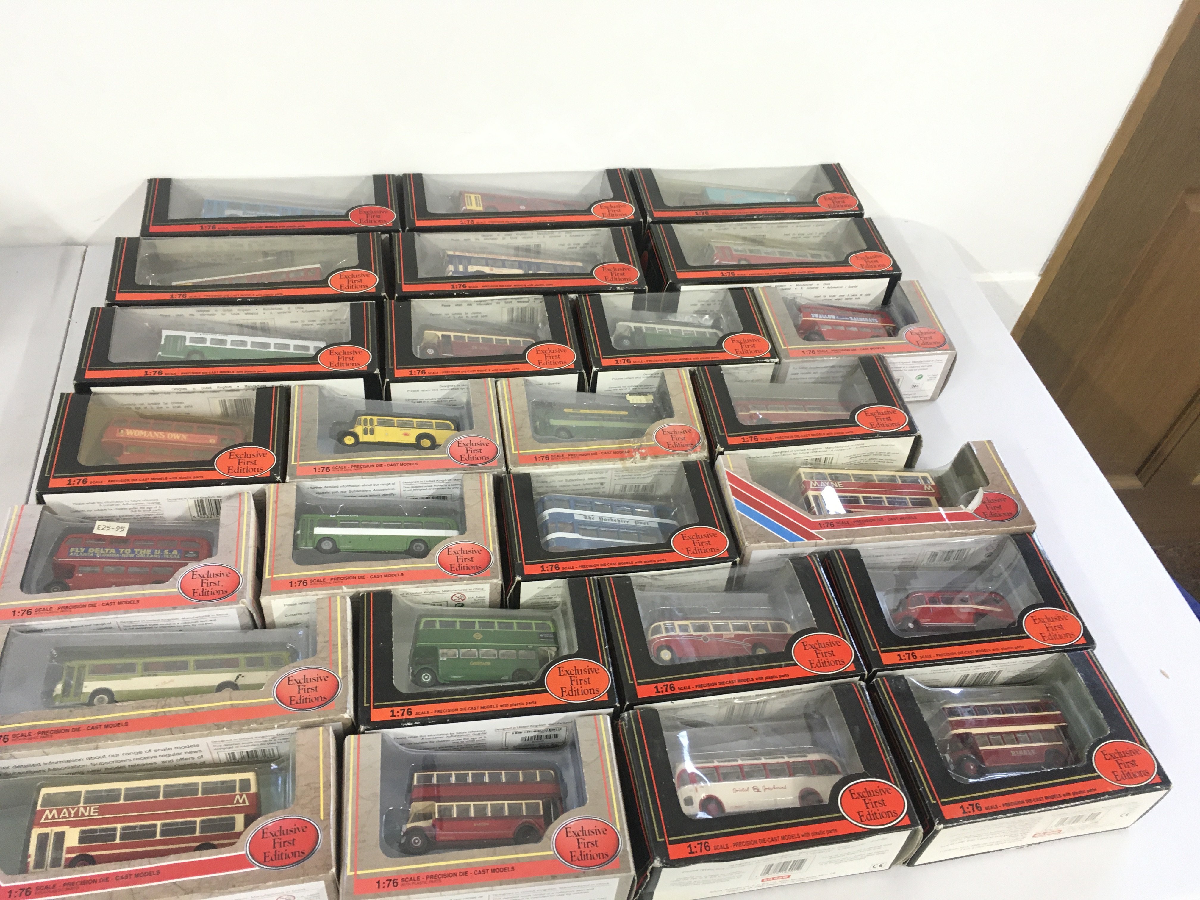 A collection of 26 boxed diecast model buses by Exclusive First Editions all in original display boxes. No reserve