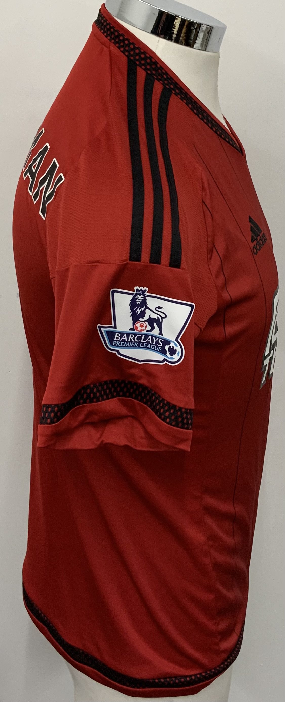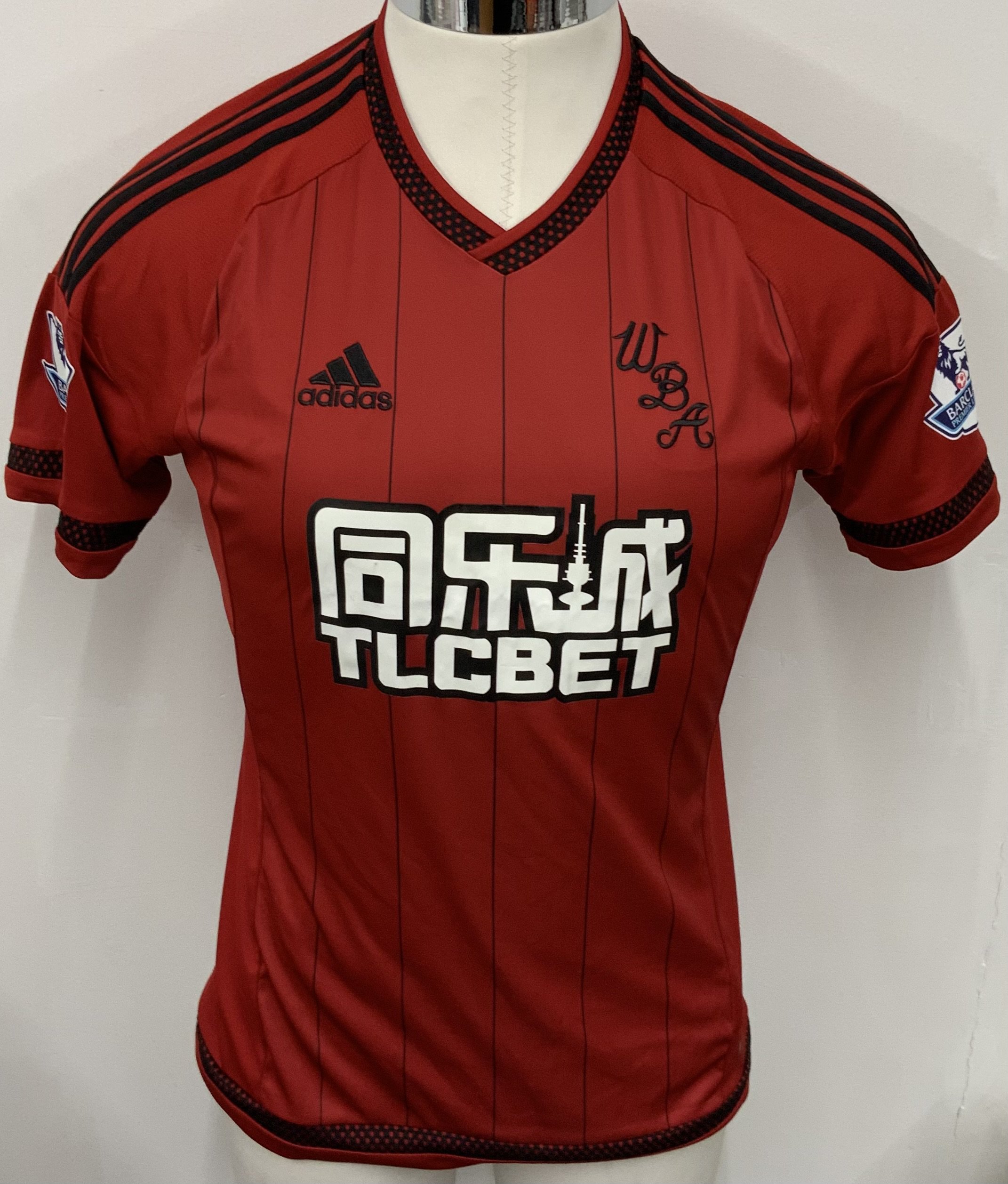 West Brom 2015 - 2016 Match Worn Football Shirt: Red and black pin striped short sleeve shirt with Premier League badging to sleeves. McManaman 19 to rear.
