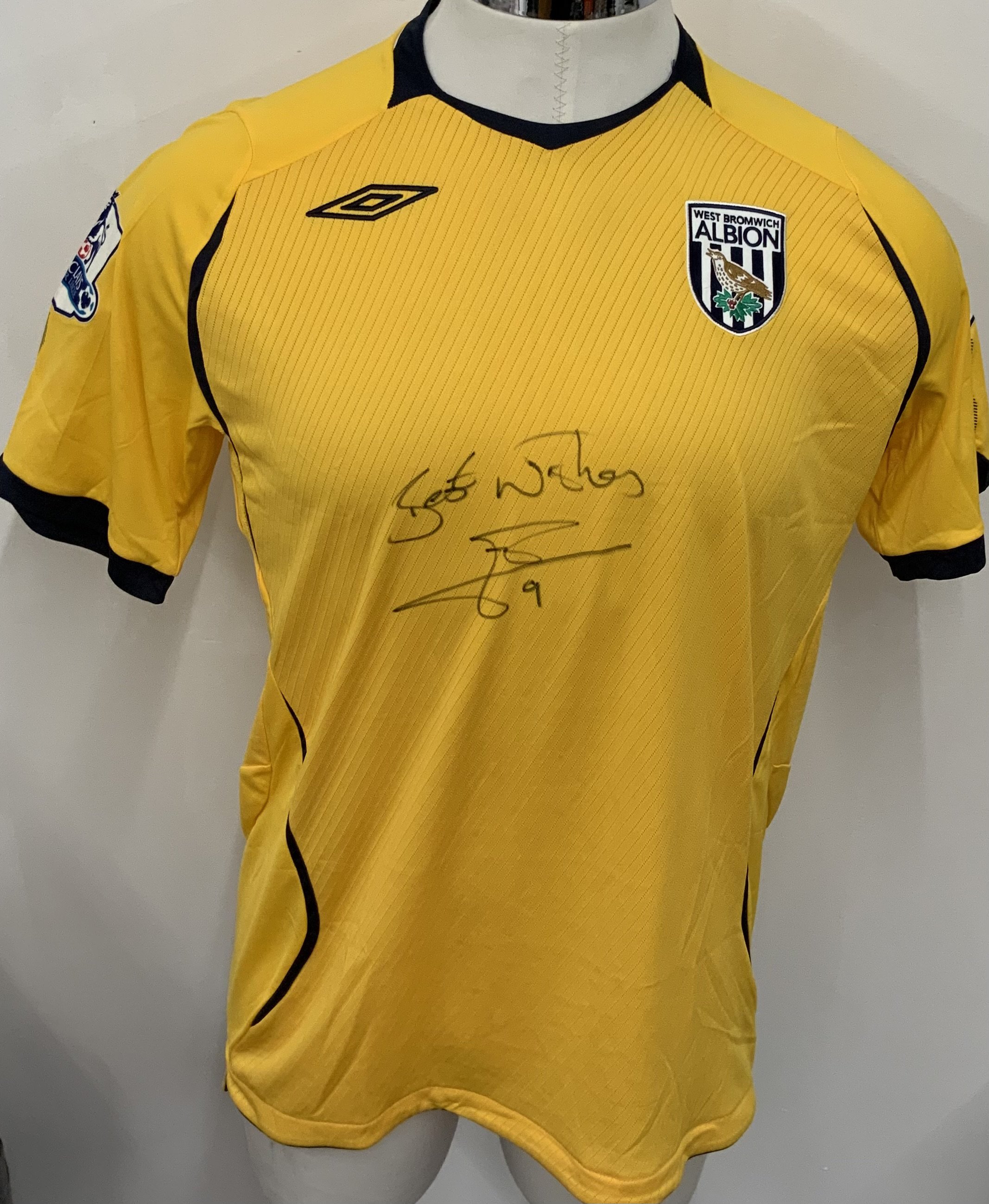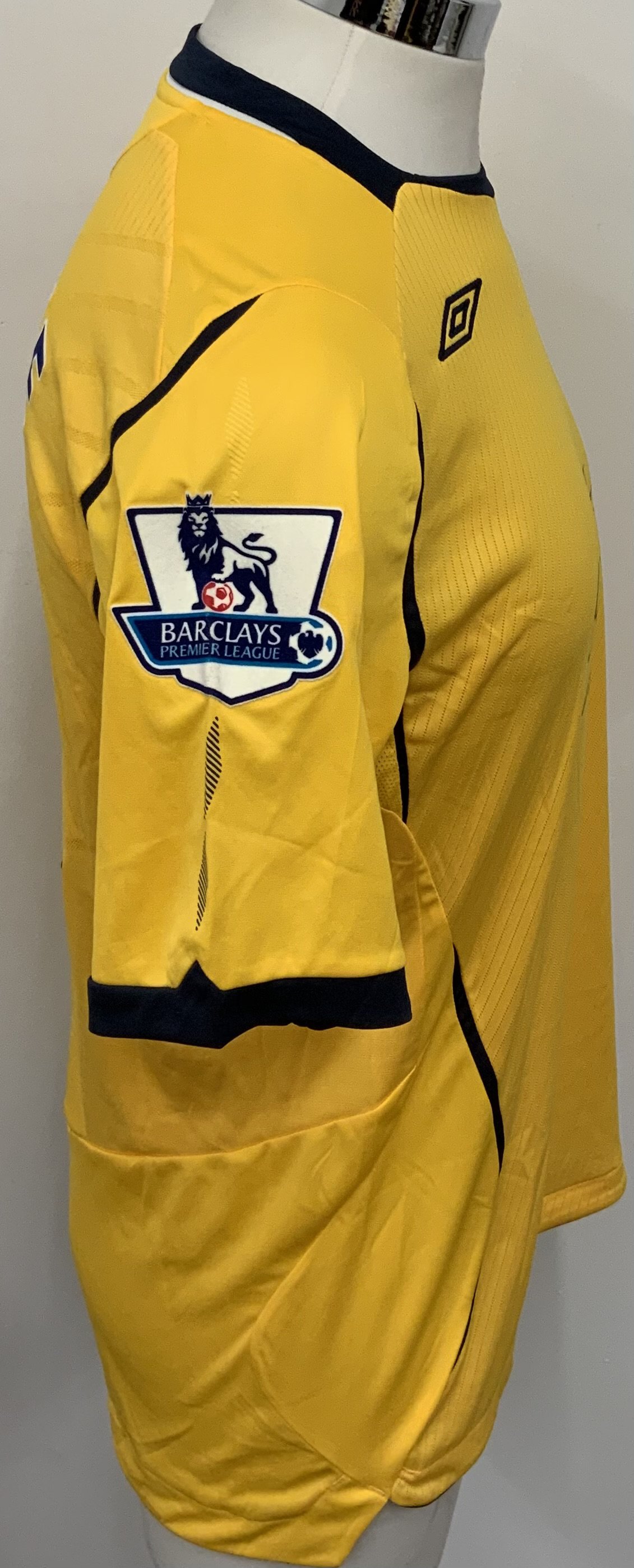West Brom 2008 - 2009 Match Worn Football Shirt: Yellow short sleeve shirt with Premier League badging to sleeves. Beattie 12 to rear. Worn v Arsenal on 16 August 2008.