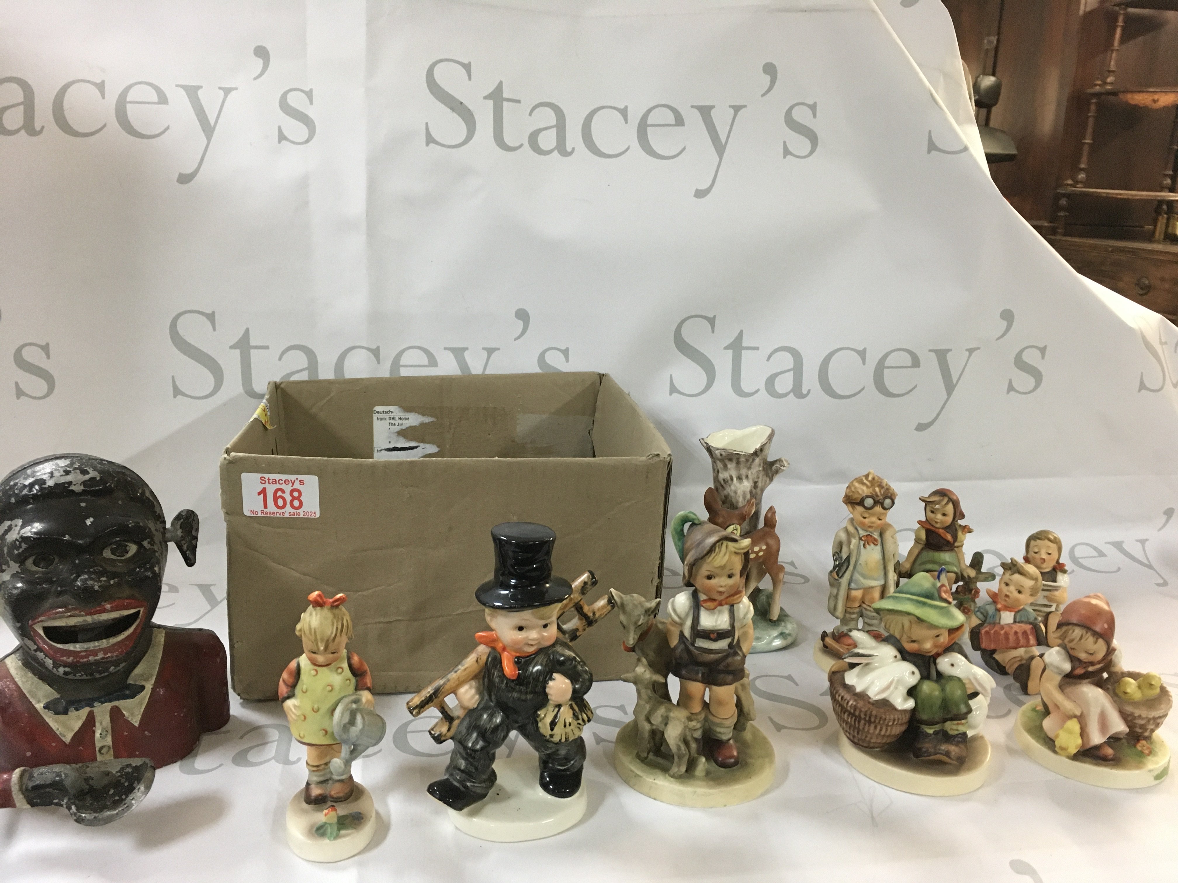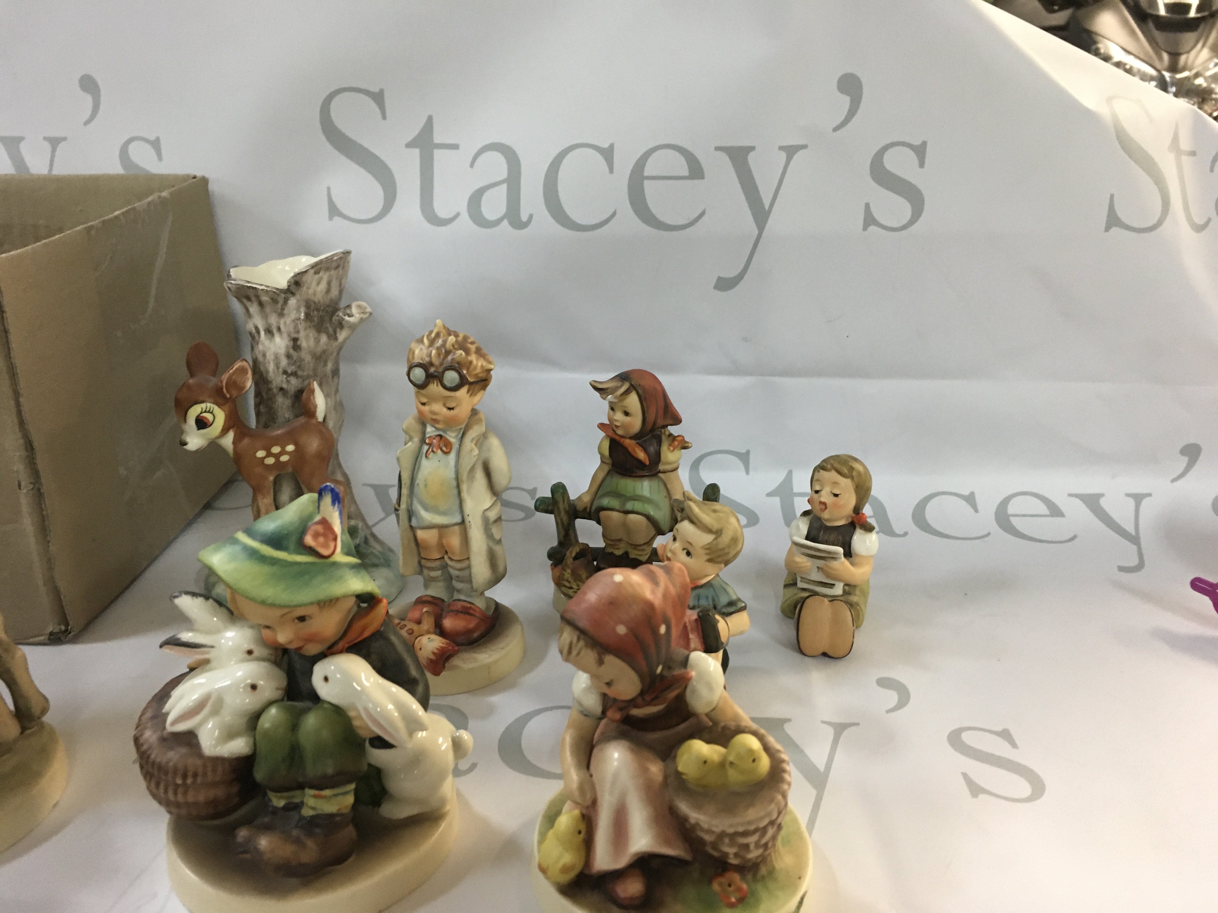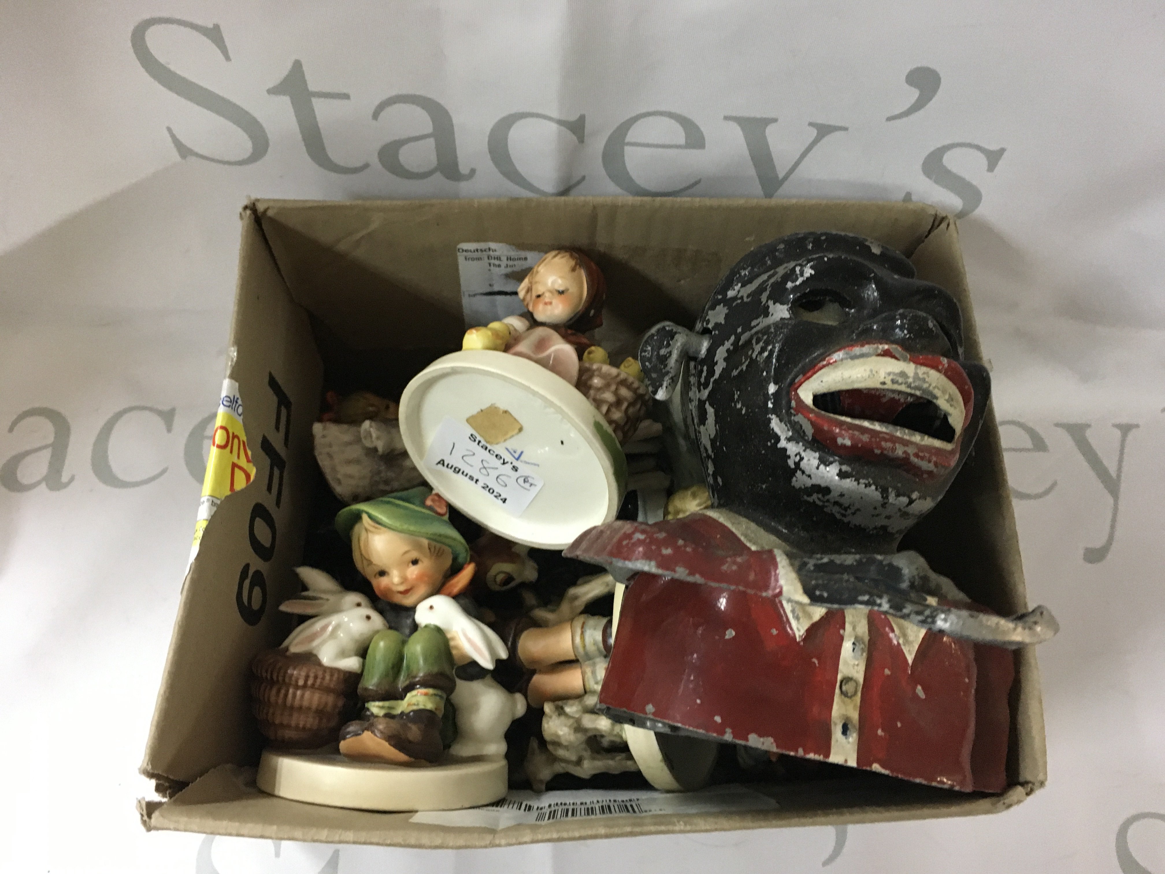 Box of vintage Hummel figurines from Japan.