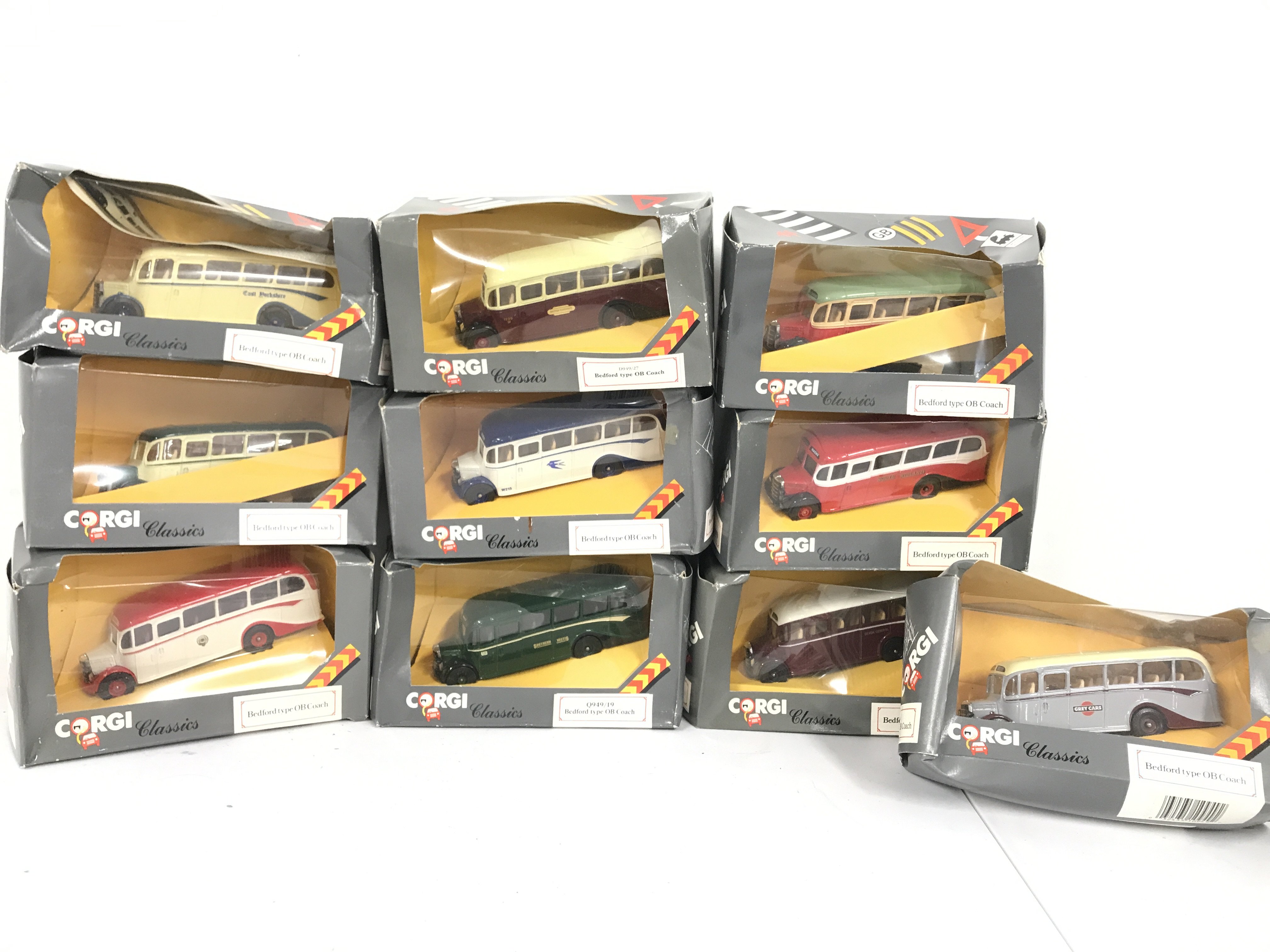 A Collection of Boxed Corgi Classic Coaches. Boxes Are worn. No Reserve.