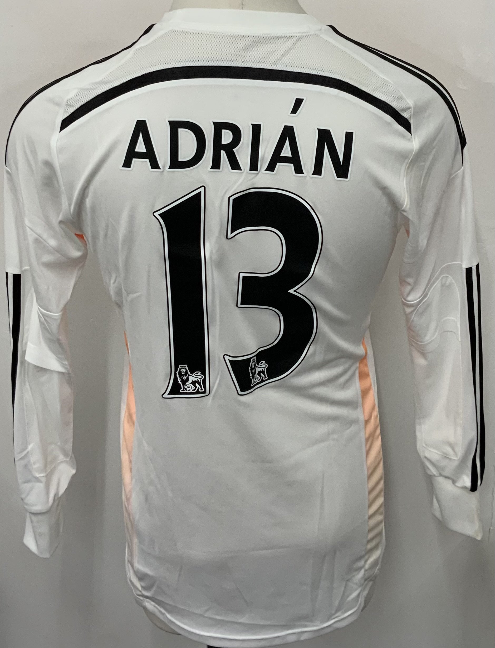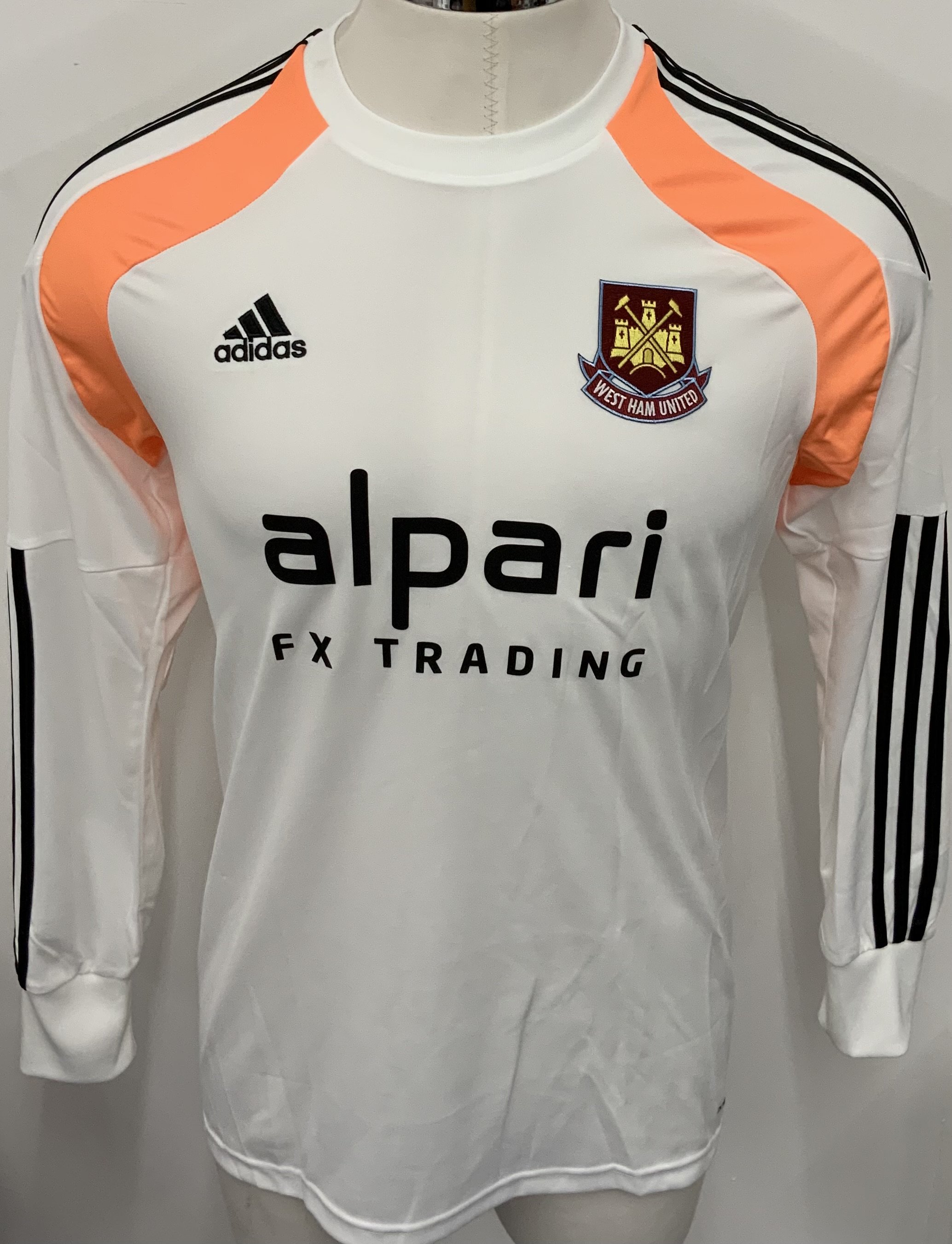 West Ham 2014 - 2015 Match Worn Football Shirt: White long sleeve goalkeepers shirt with Adrian 13 to rear. Worn during a friendly match. No sleeve badging.