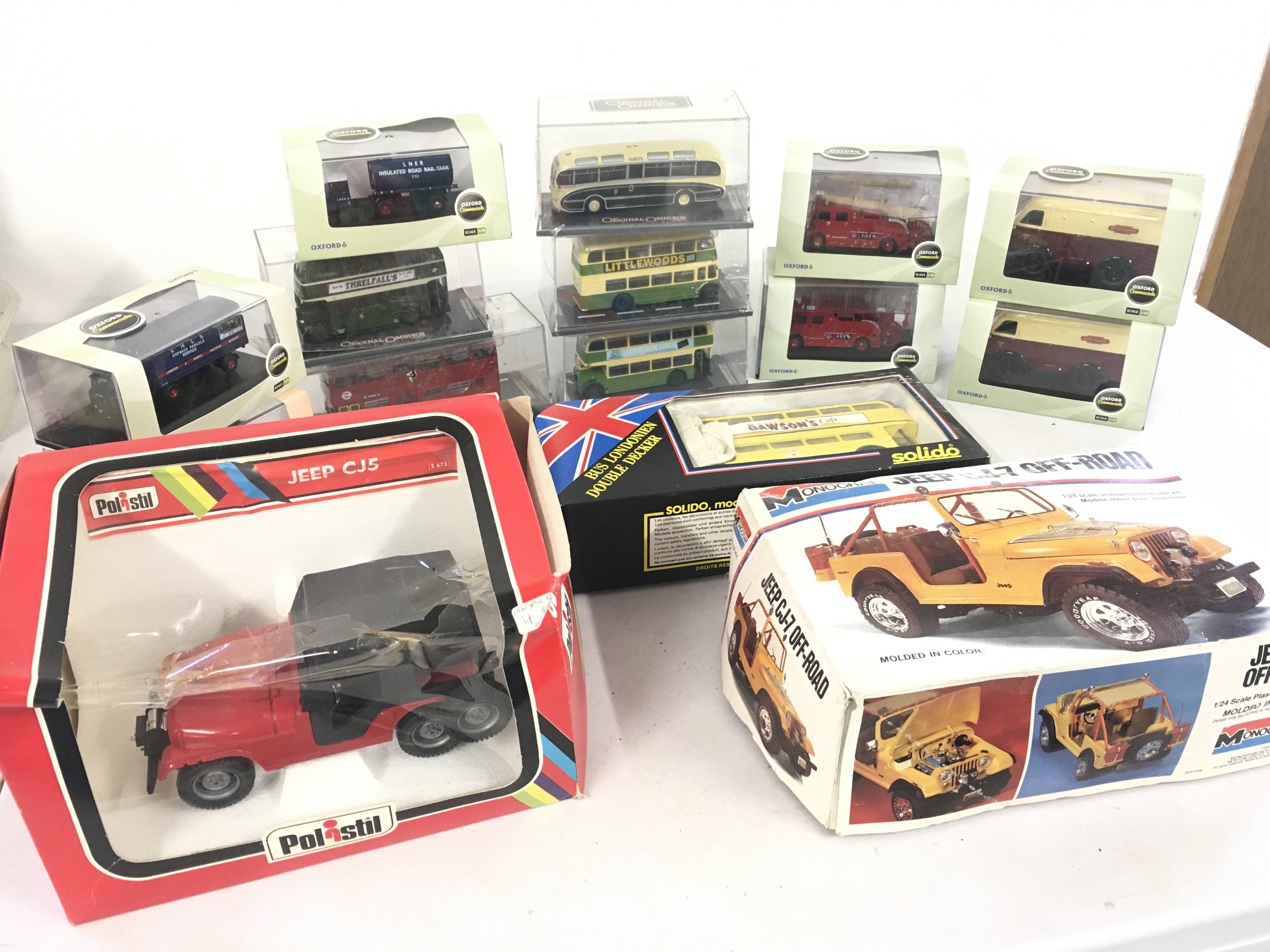 A collection of 15 pieces of model vehicles in original packaging. Manufacturers include Oxford..Solido..Monogram plus others. No reserve.