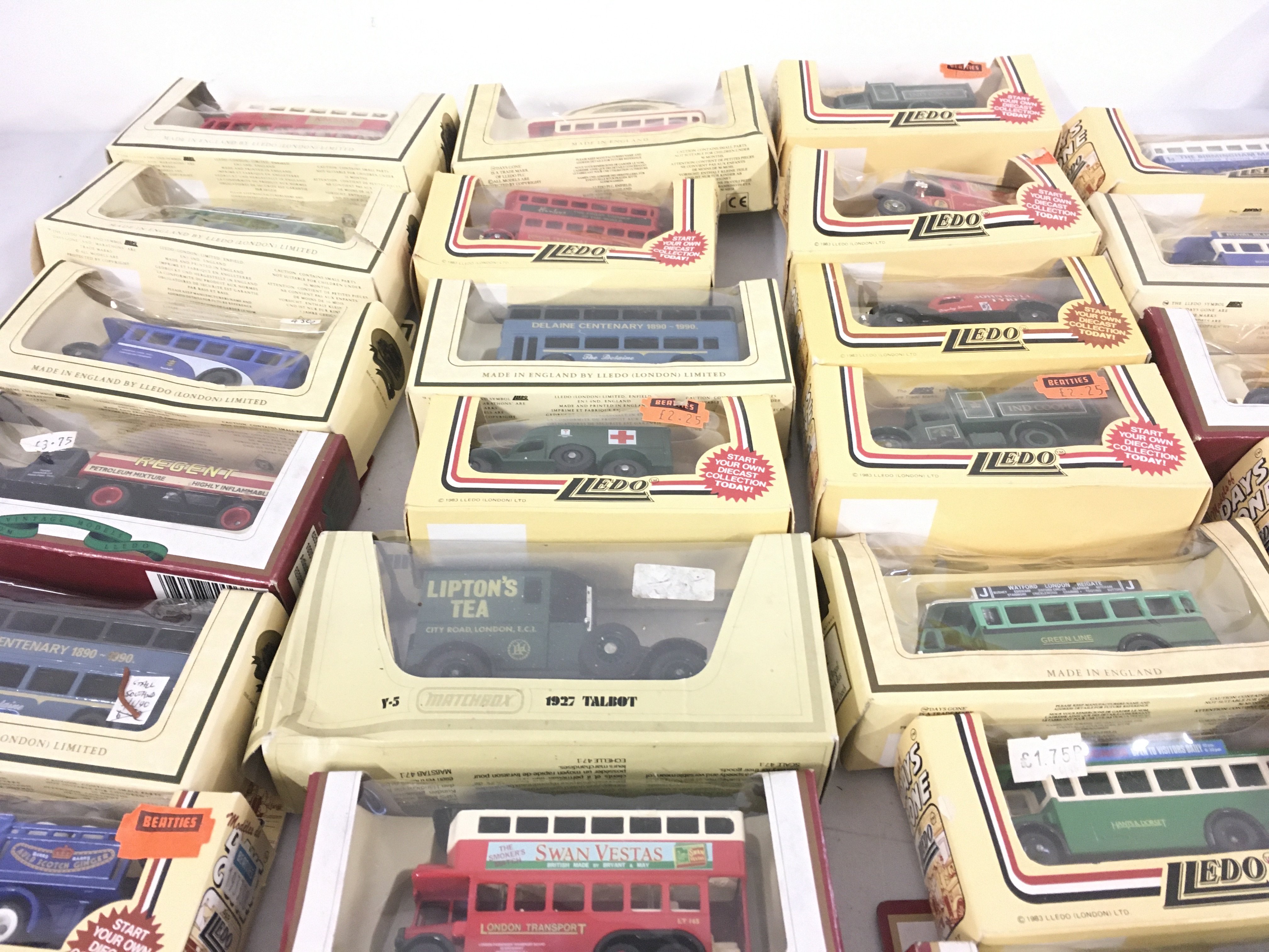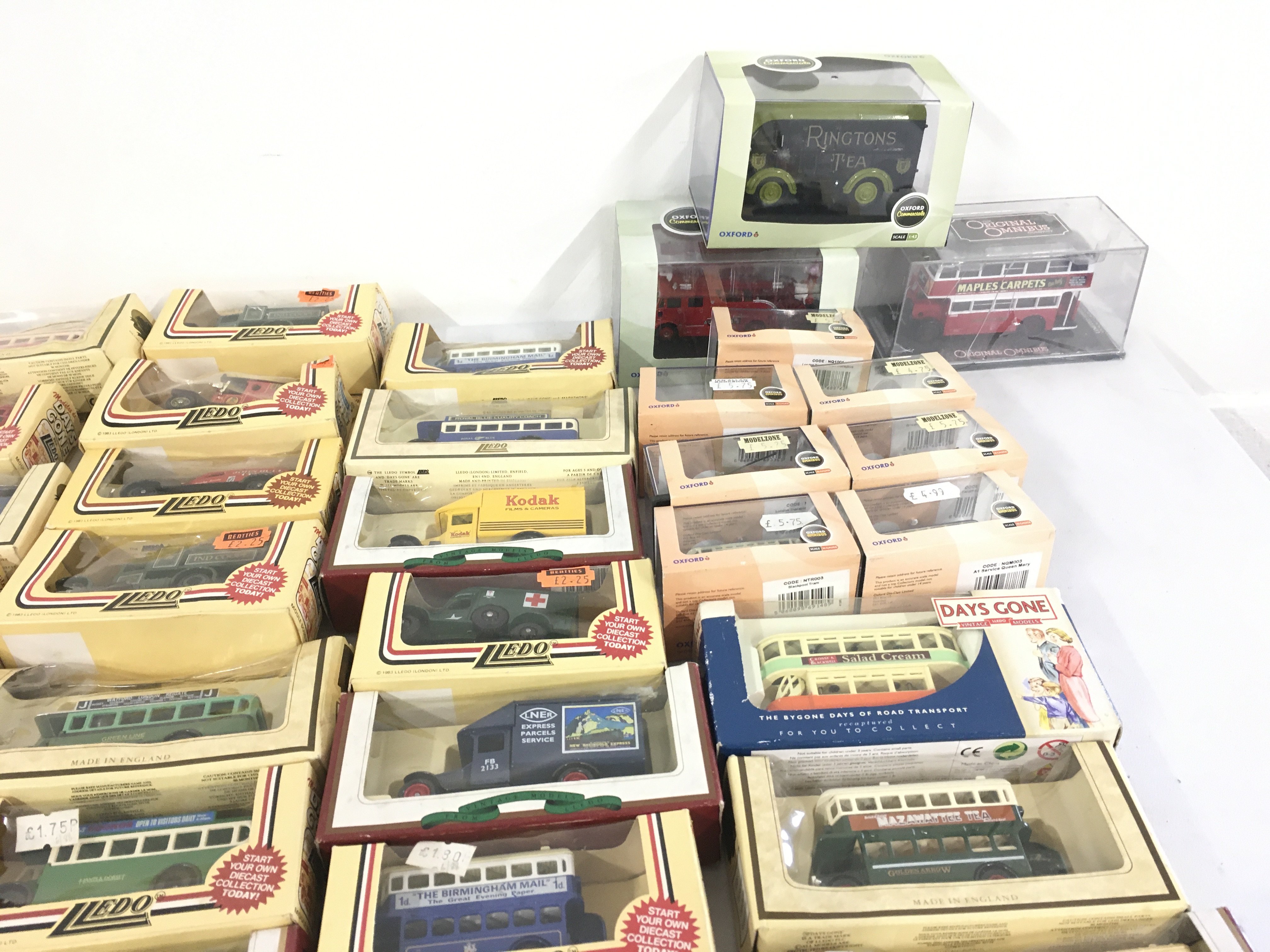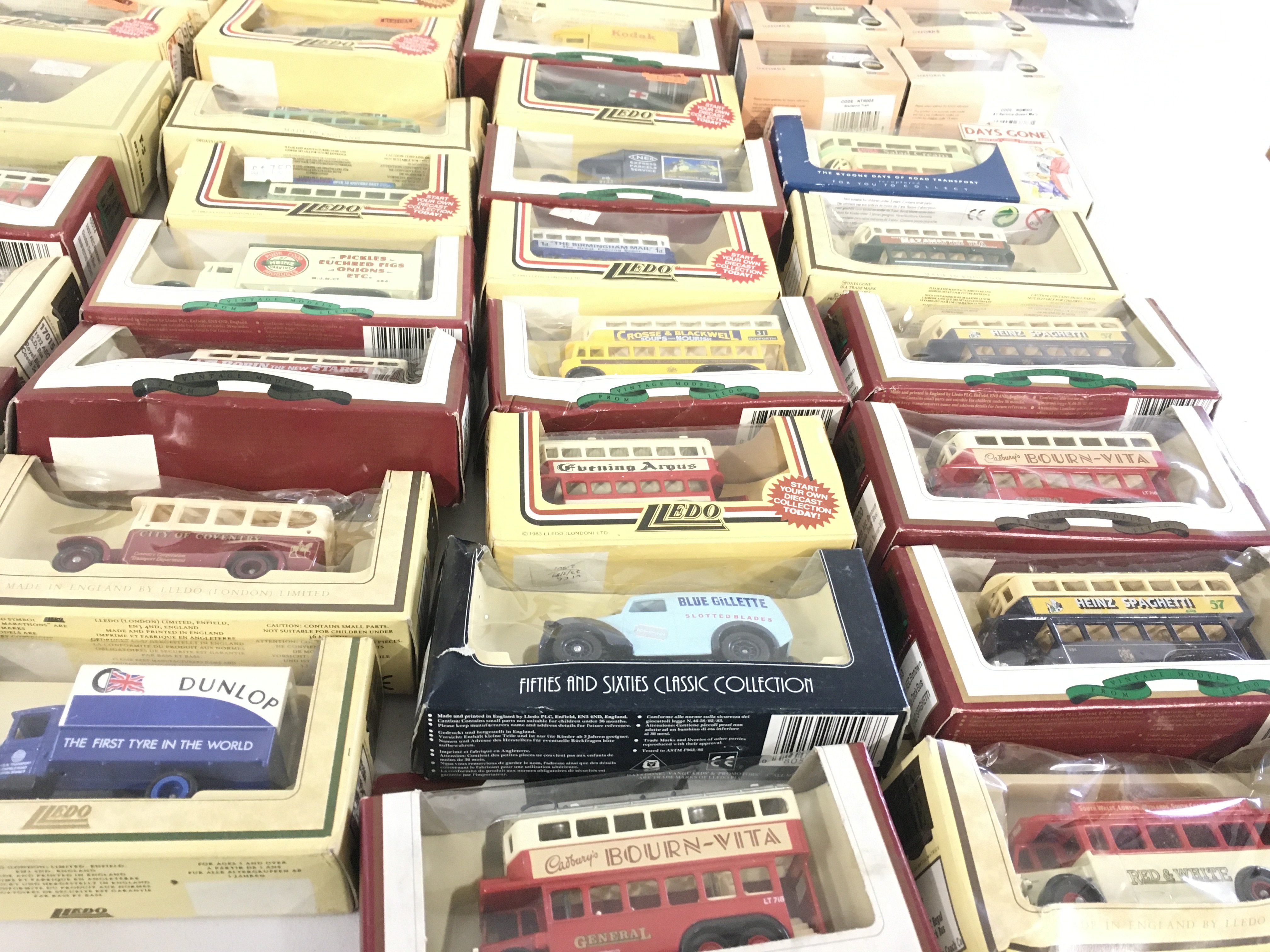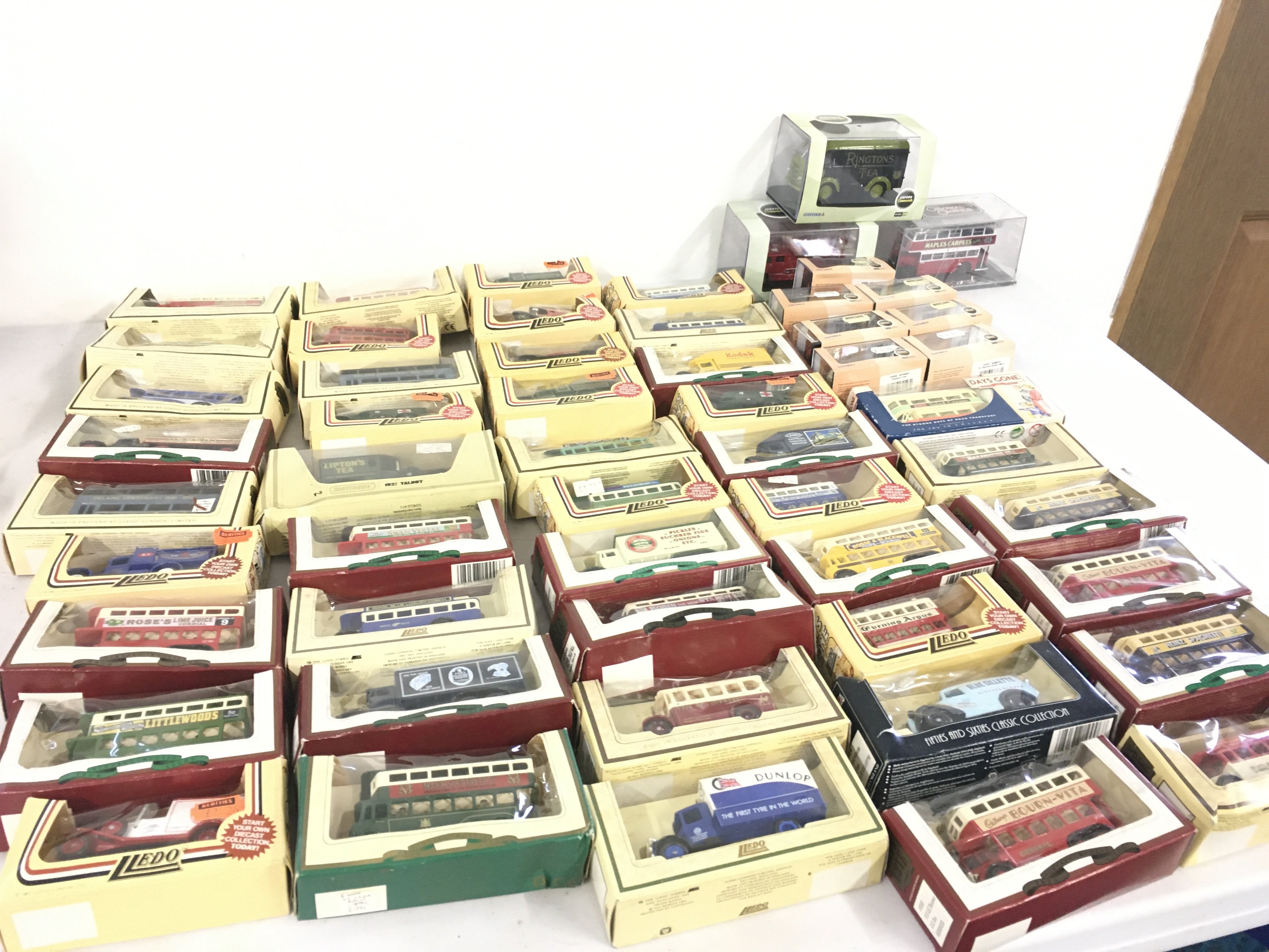 A collection in excess of 50 model vehicles mostly diecast all in original packaging. Manufacturers include Lledo..Oxford. No reserve