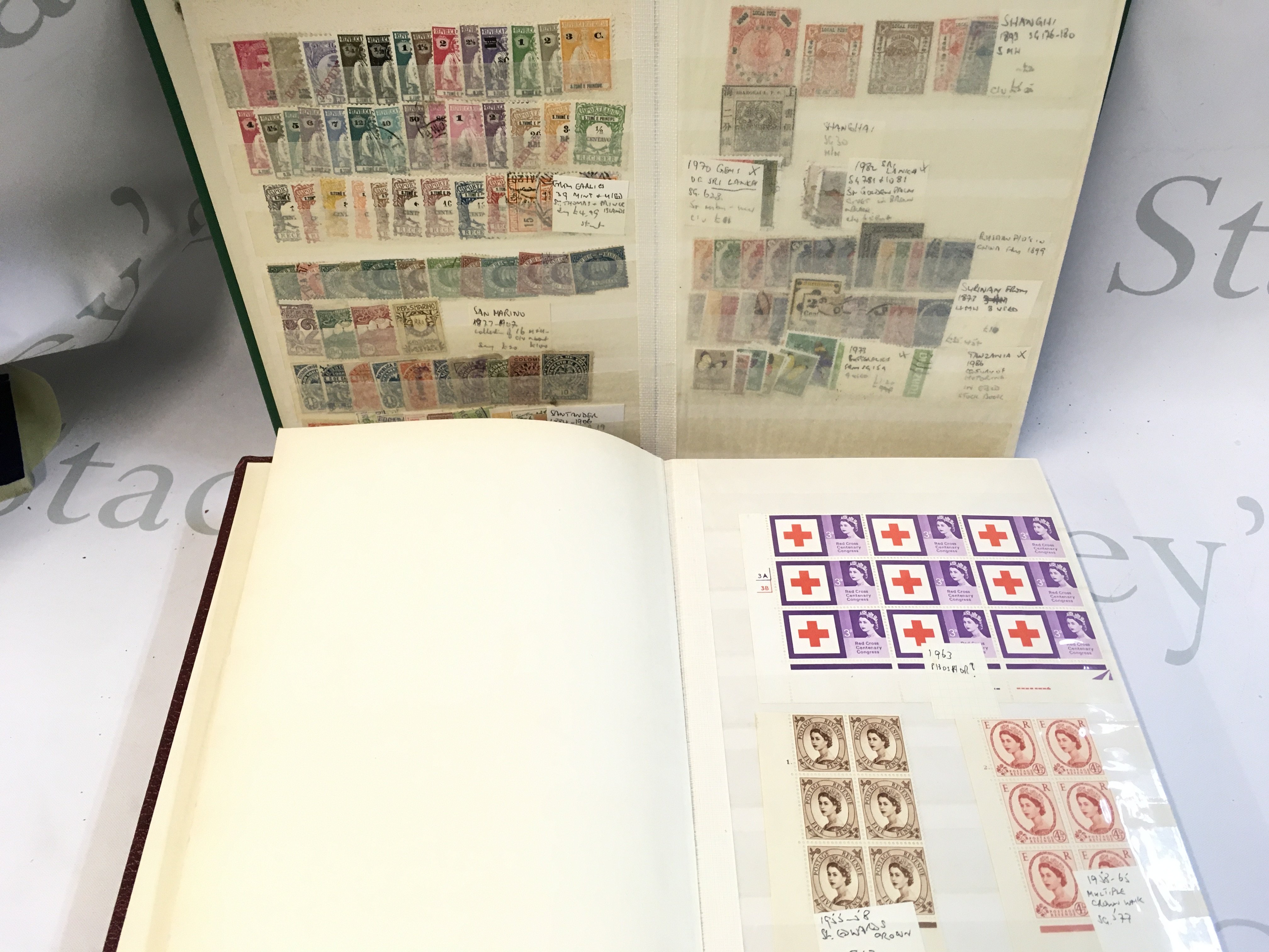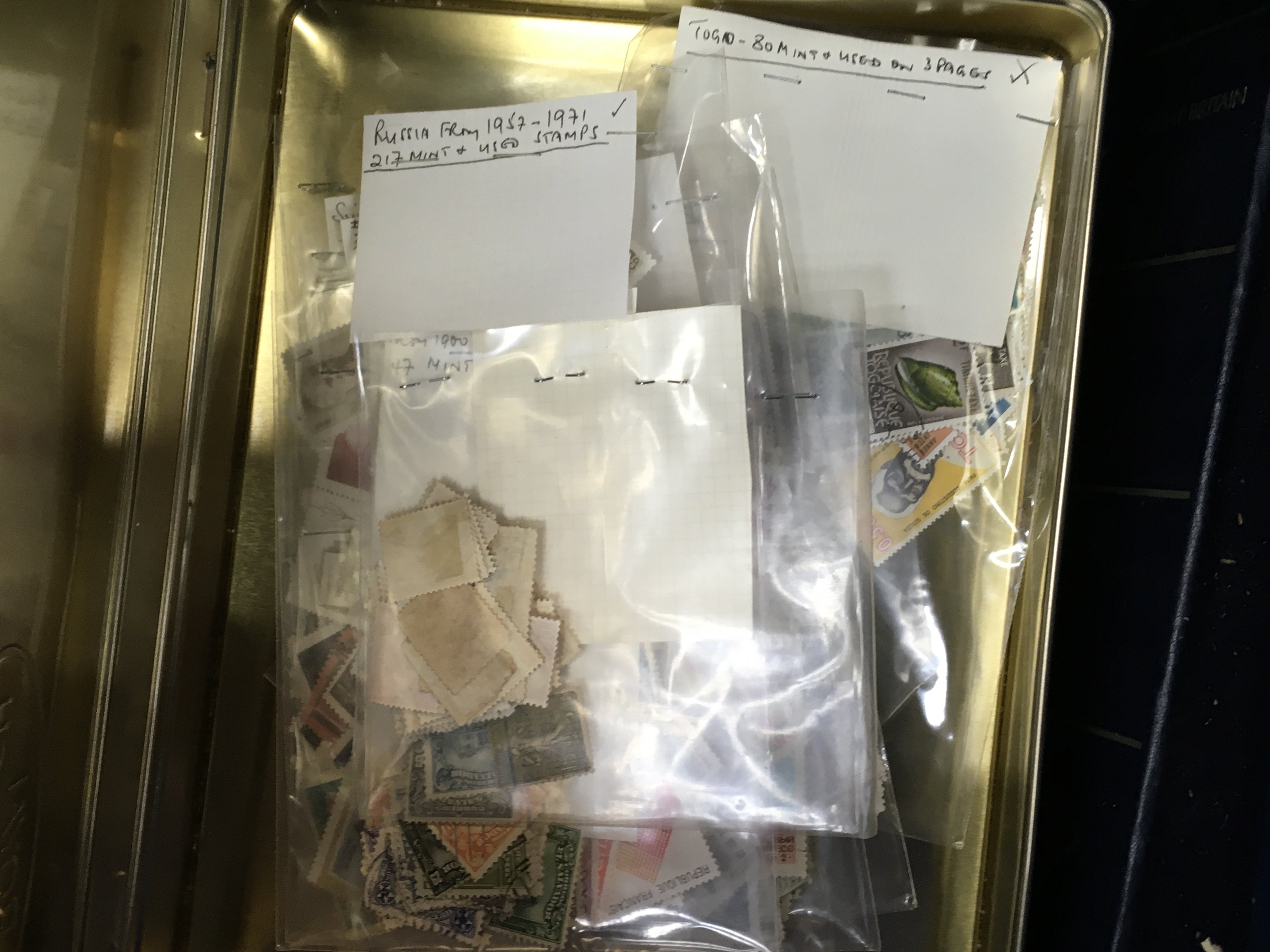 A collection of world and British used and unused stamp albums and loose stamps including Portuguese, Russian, French etc