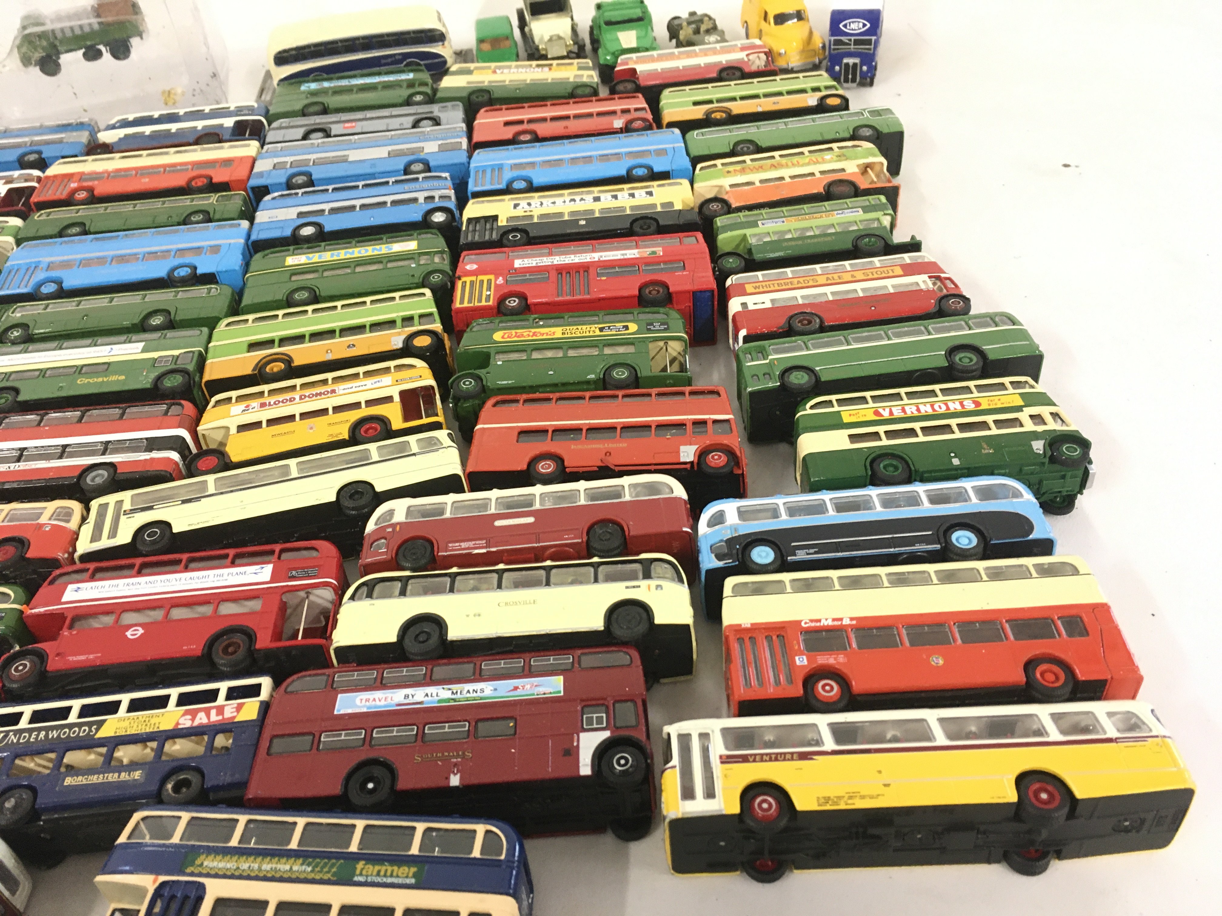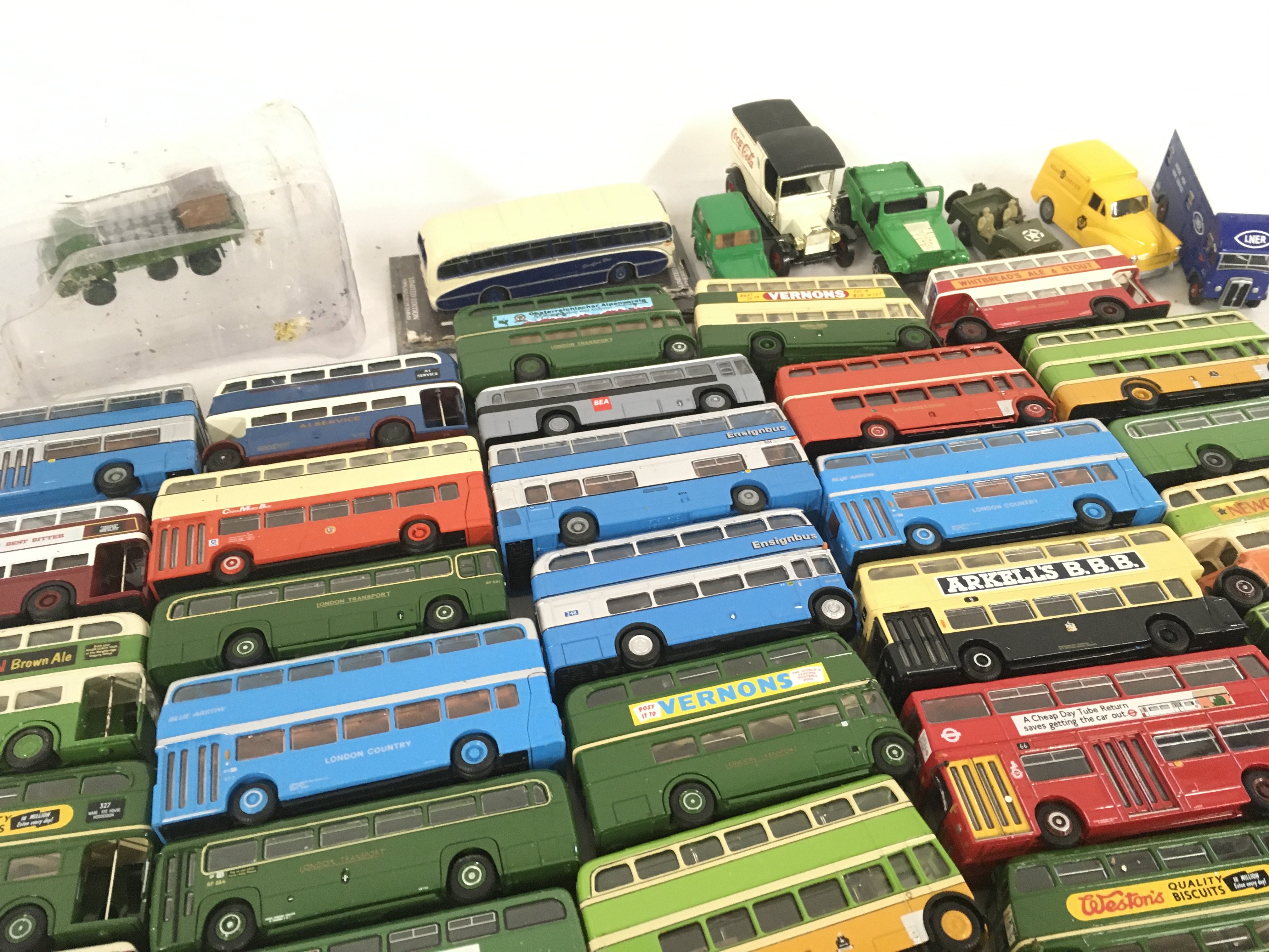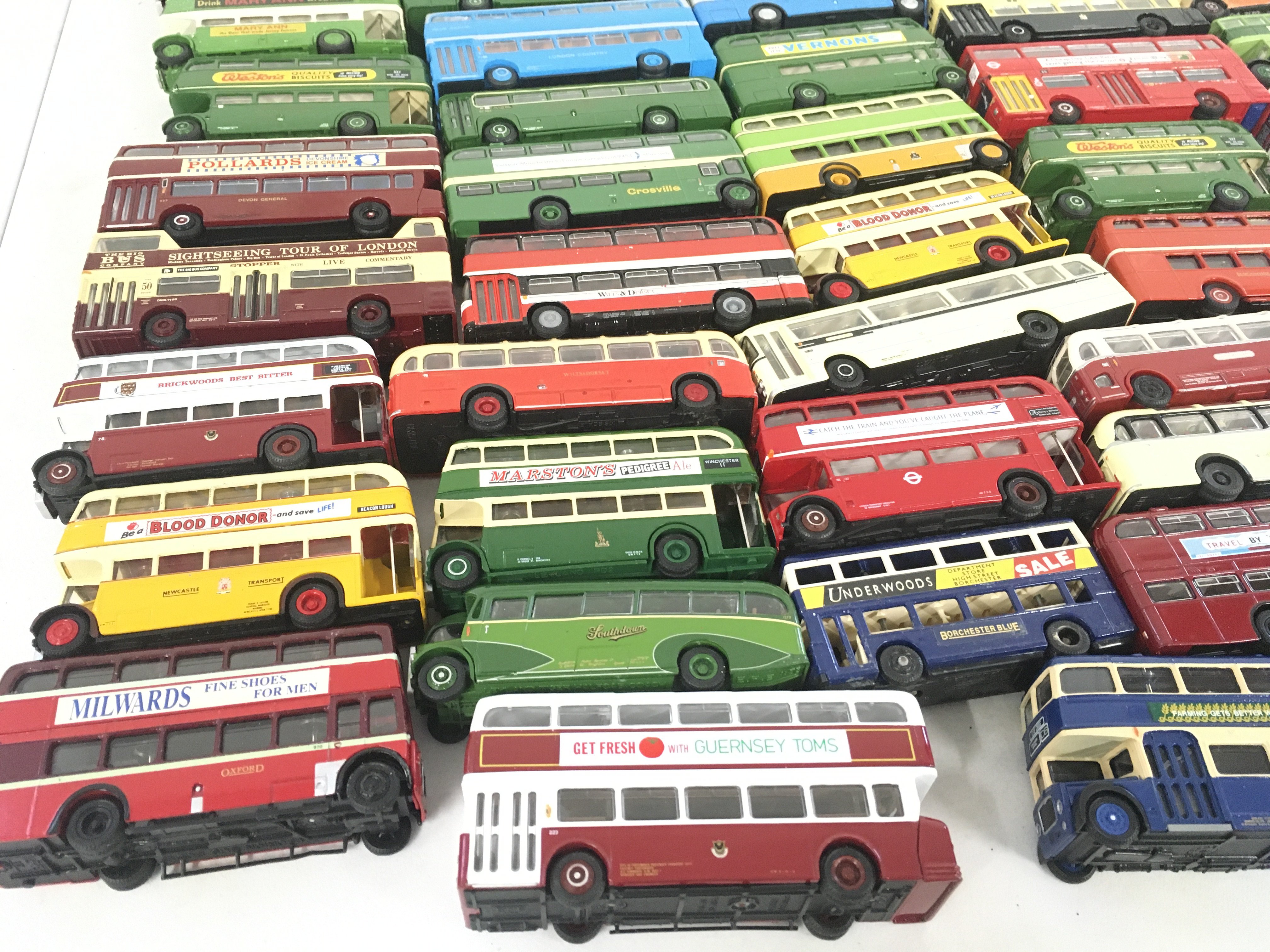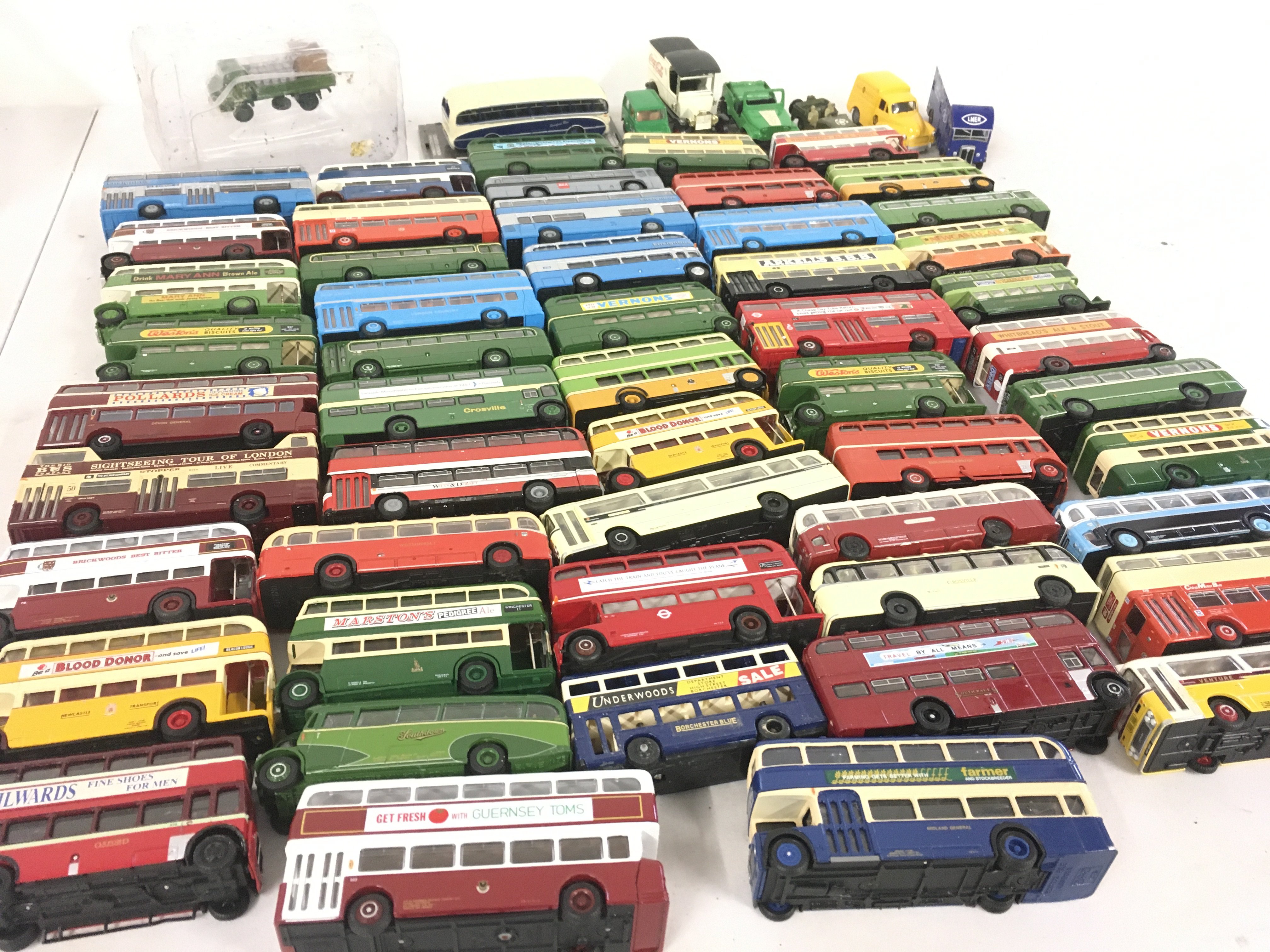 A collection in excess of 60 diecast model vehicles..mostly buses all without boxes. No reserve