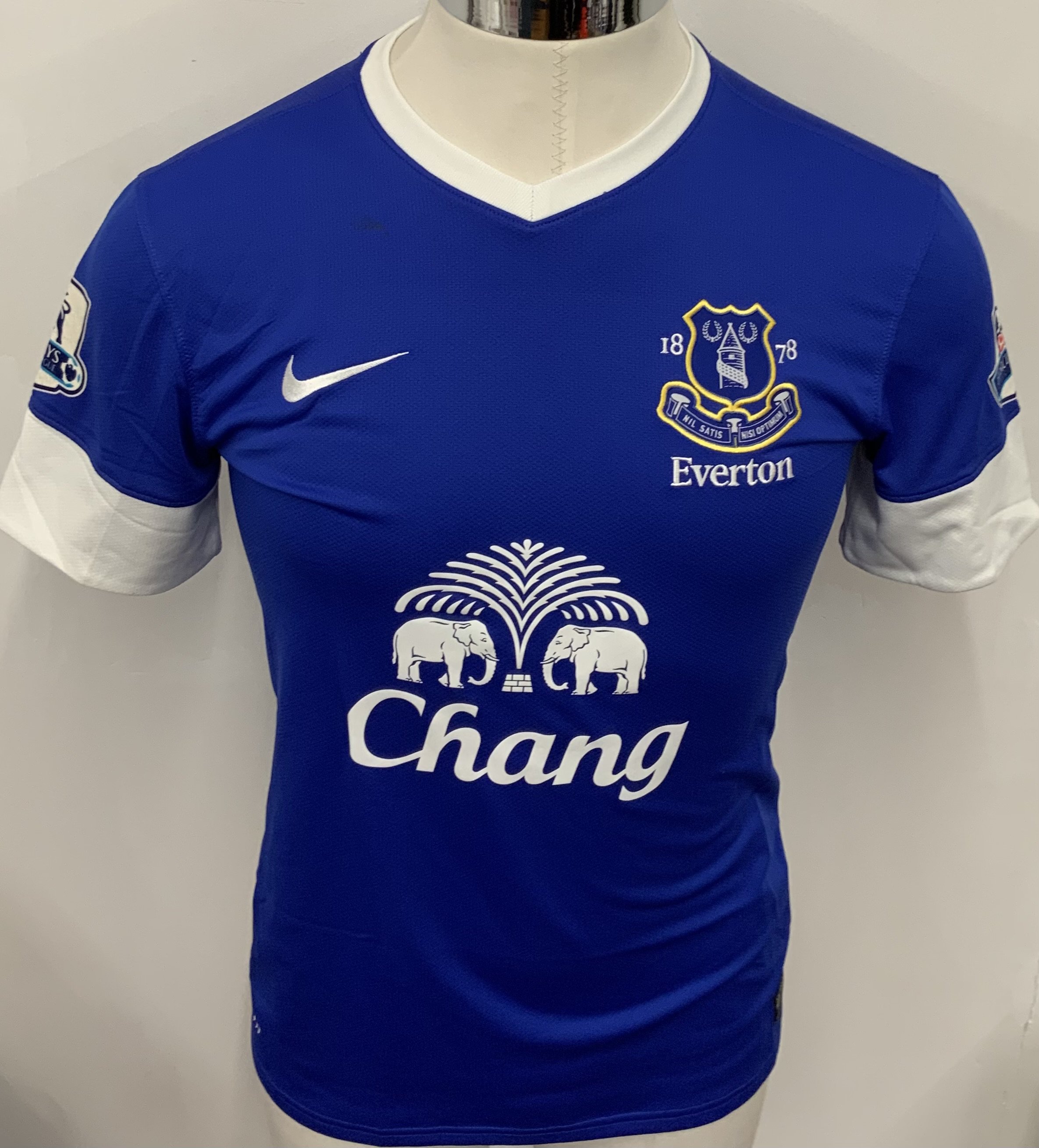 Everton 2012 - 2013 Match Worn Football Shirt: Blue short sleeve shirt with Premier League badging to sleeves. Osman 21 to rear.