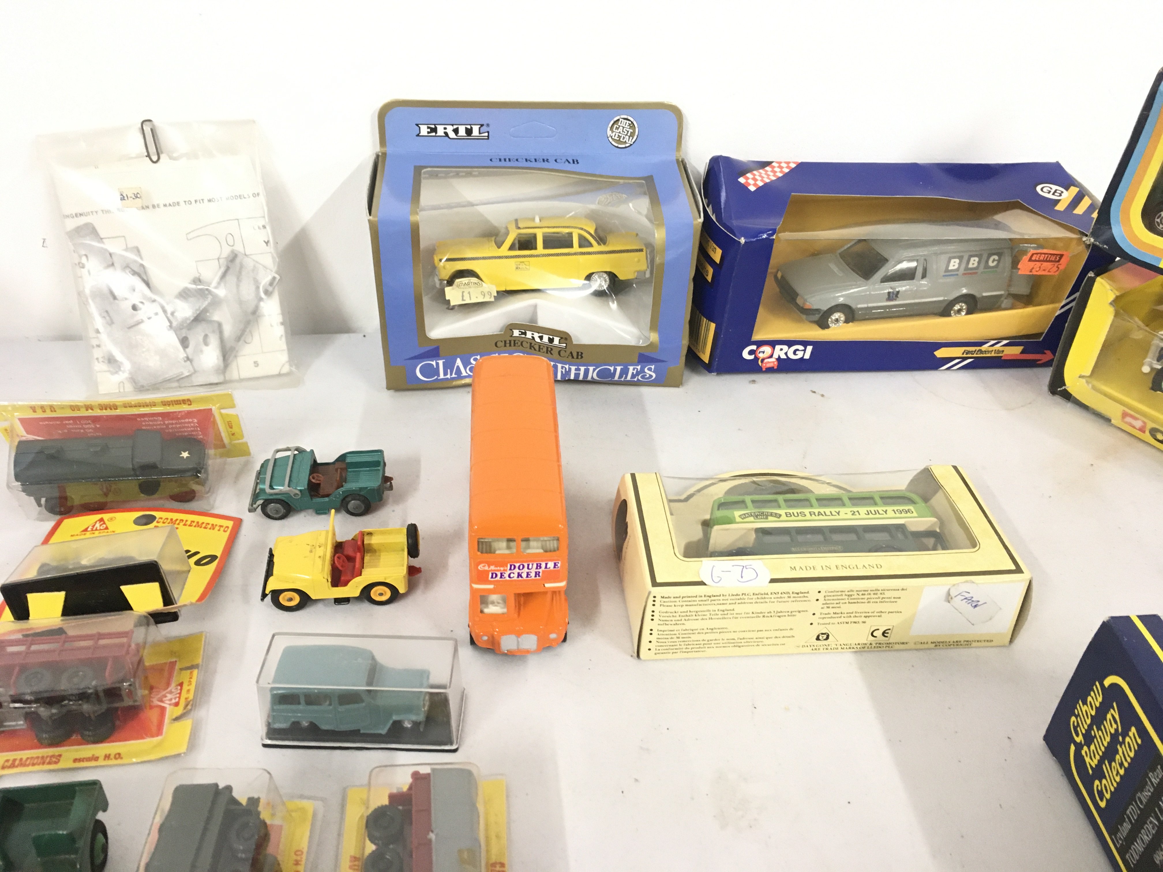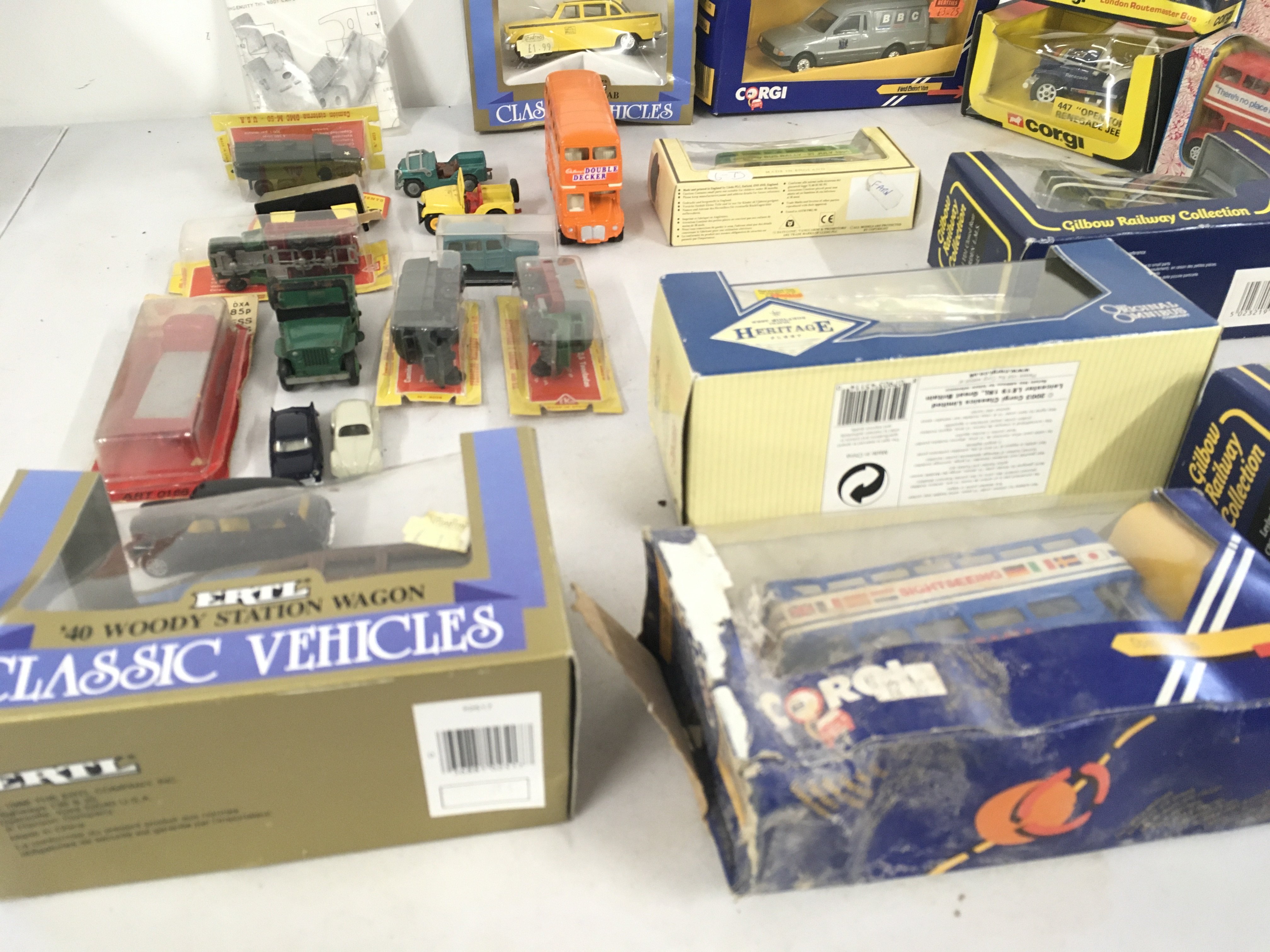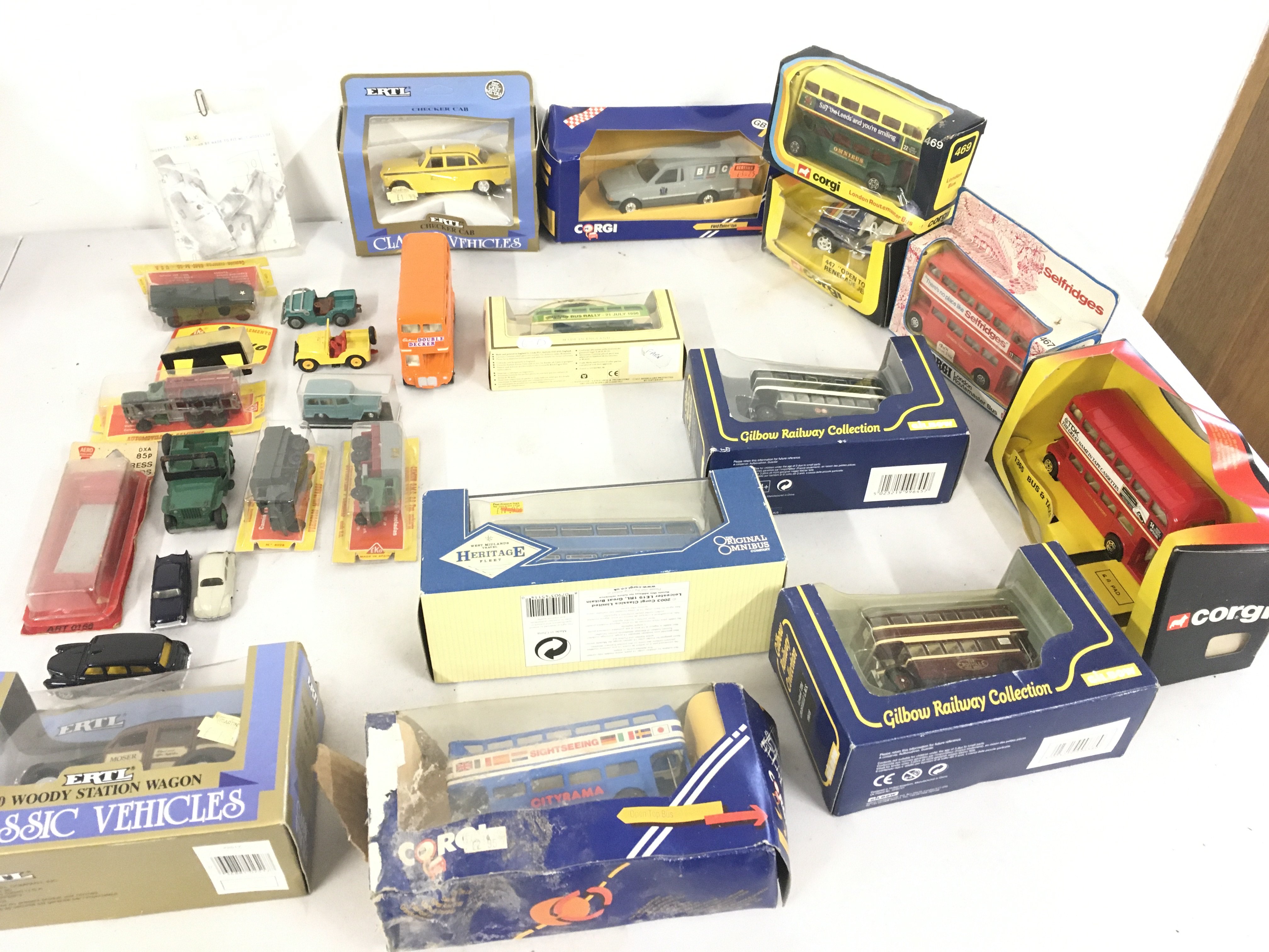A collection in excess of 25 diecast model vehicles mostly in original packaging . Manufacturers include Corgi..ERTL and others.