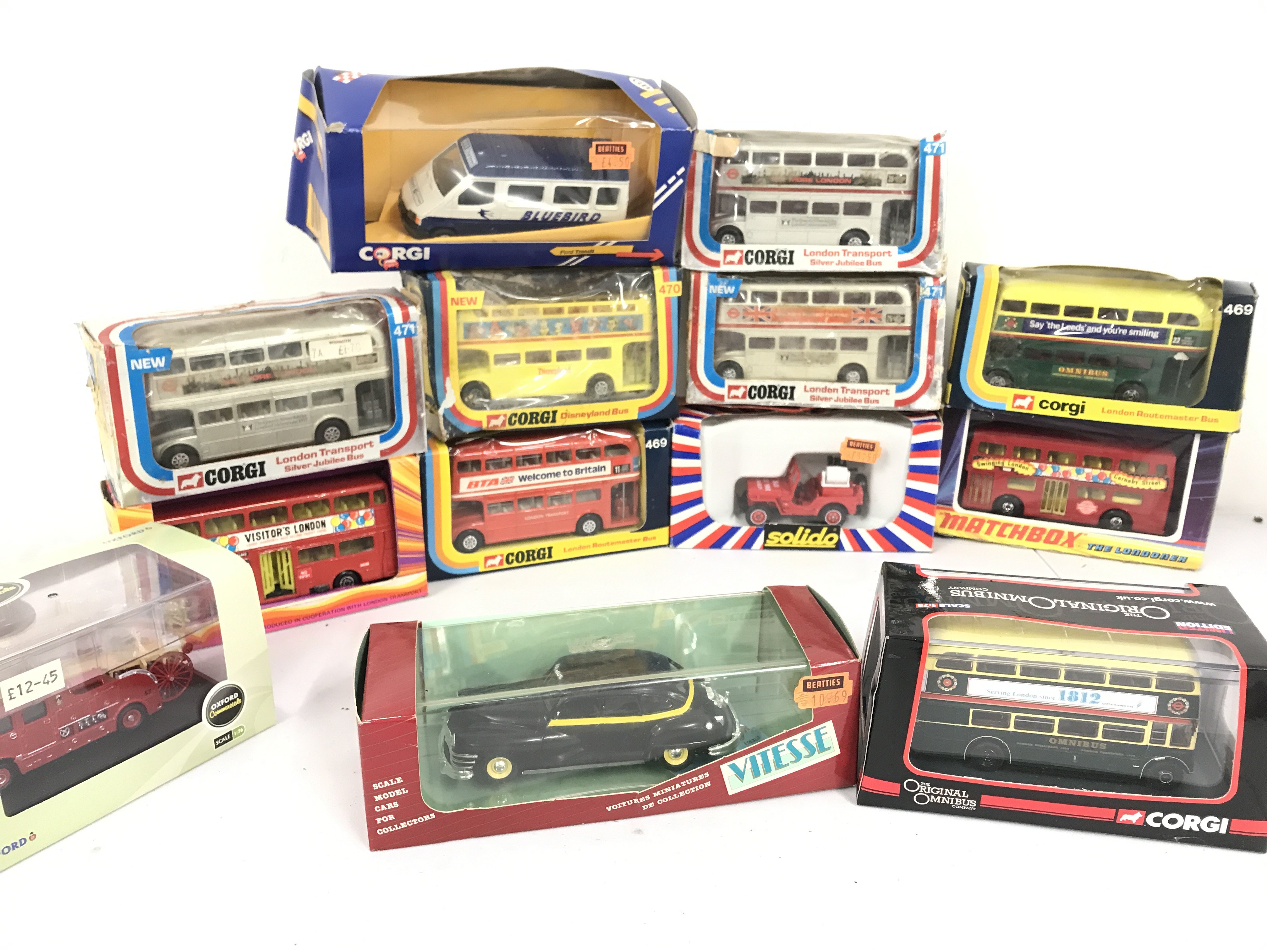 A Collection Of Boxed Diecast Buses. Trams and Others. No Reserve.