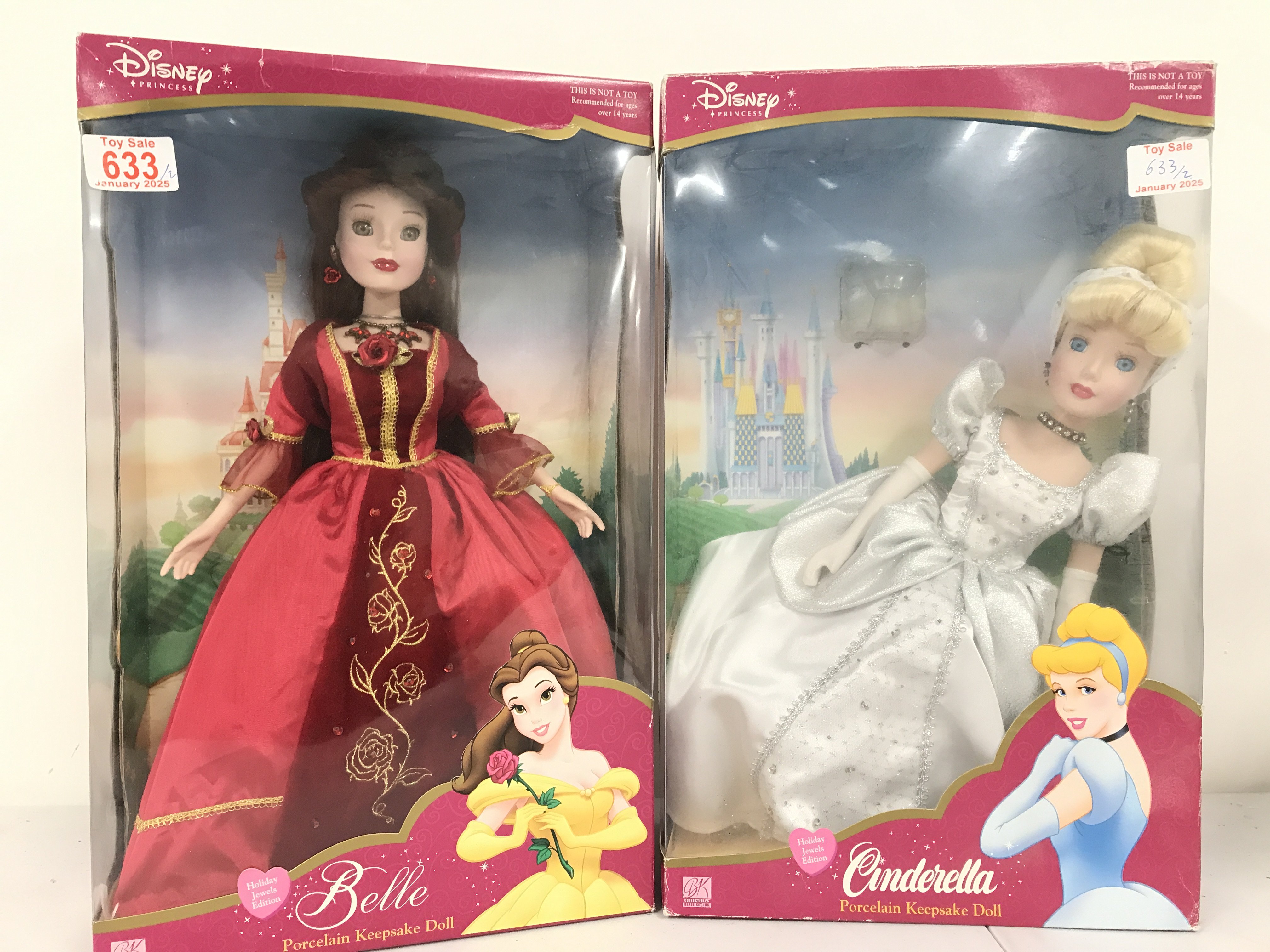 2 X Boxed Disney Princess dolls. A Belle and Cinderella. (2).