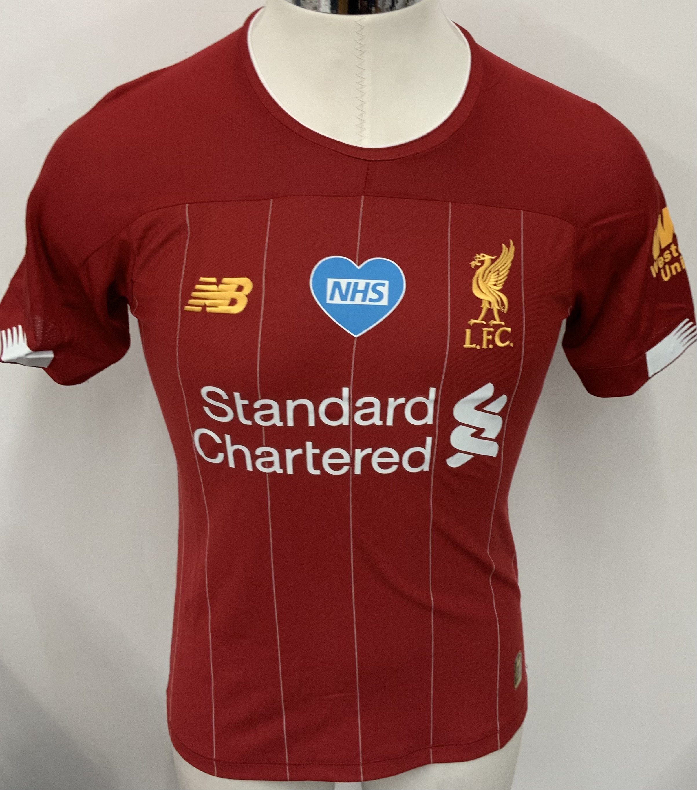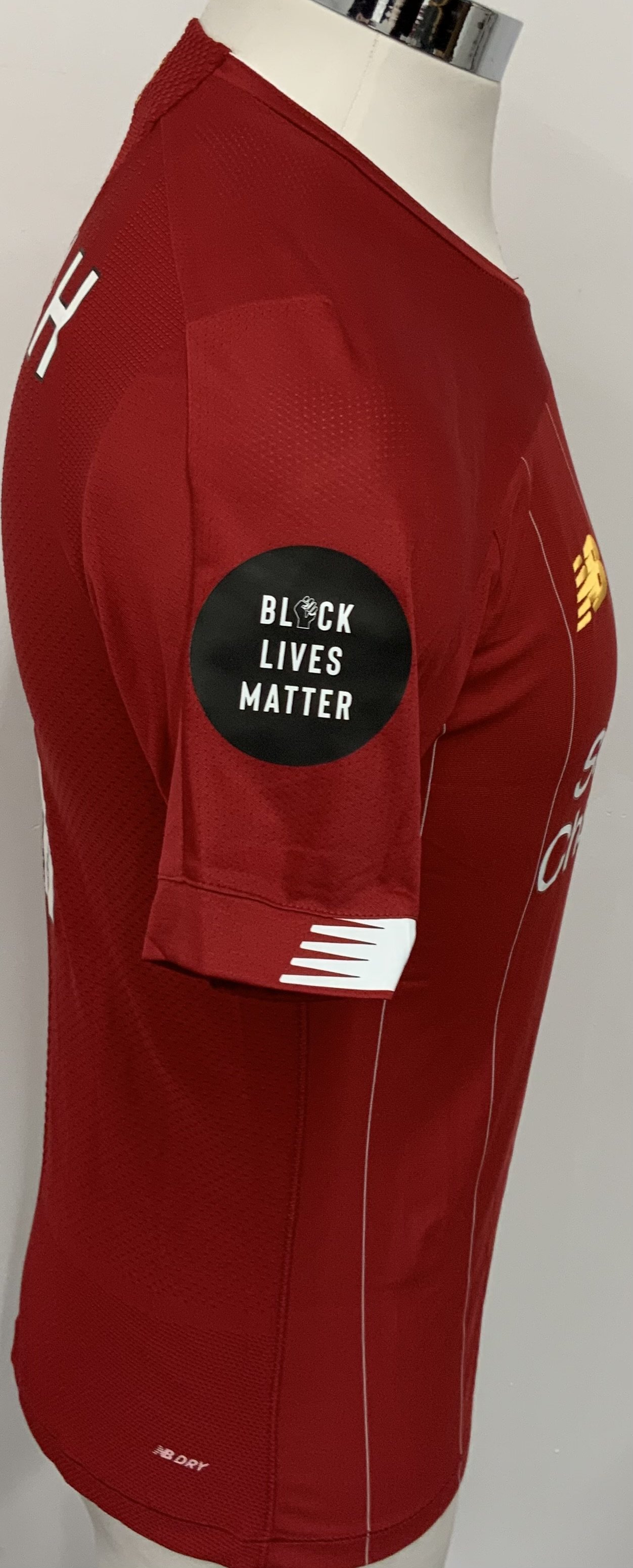 Liverpool 2019 - 2020 Match Worn Salah Football Shirt: Red short sleeve shirt with Black Lives Matter badge to sleeves and NHS heart logo to front. Salah 11 to rear.