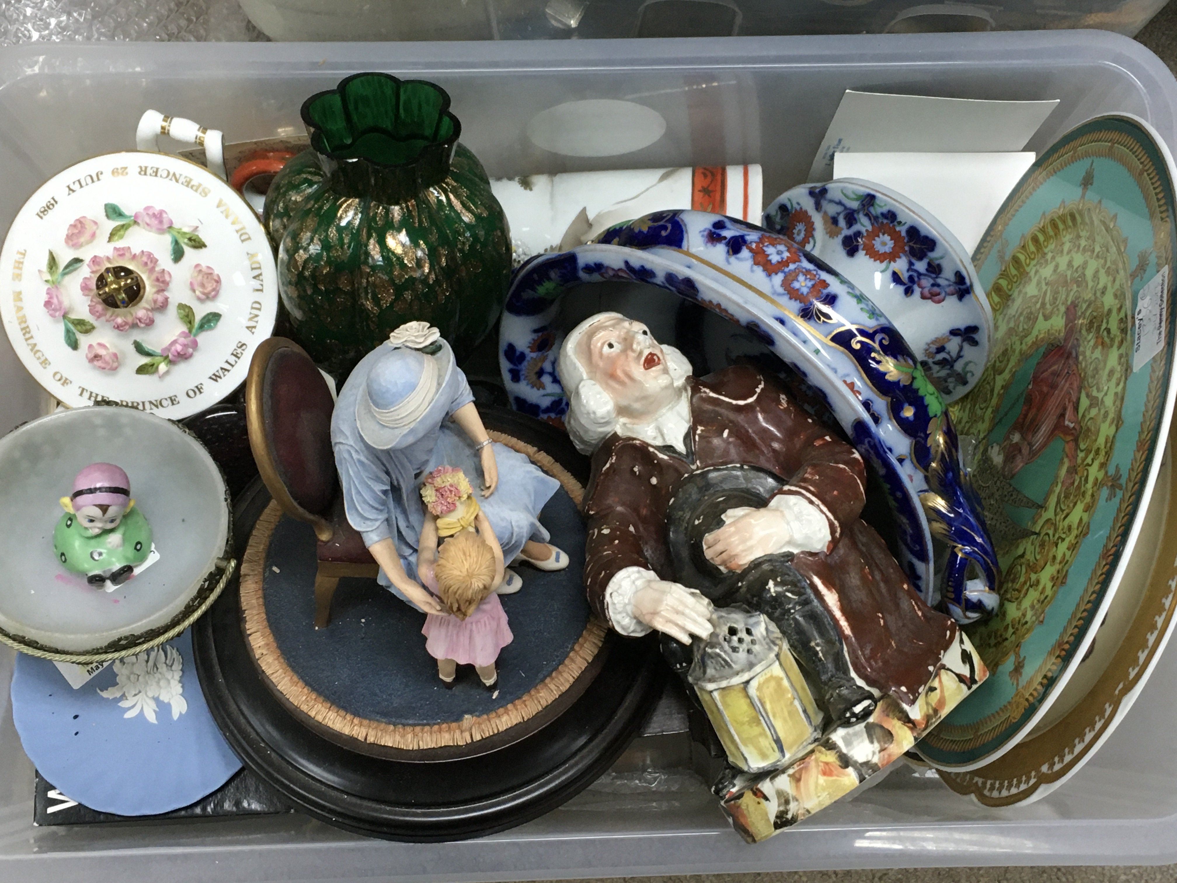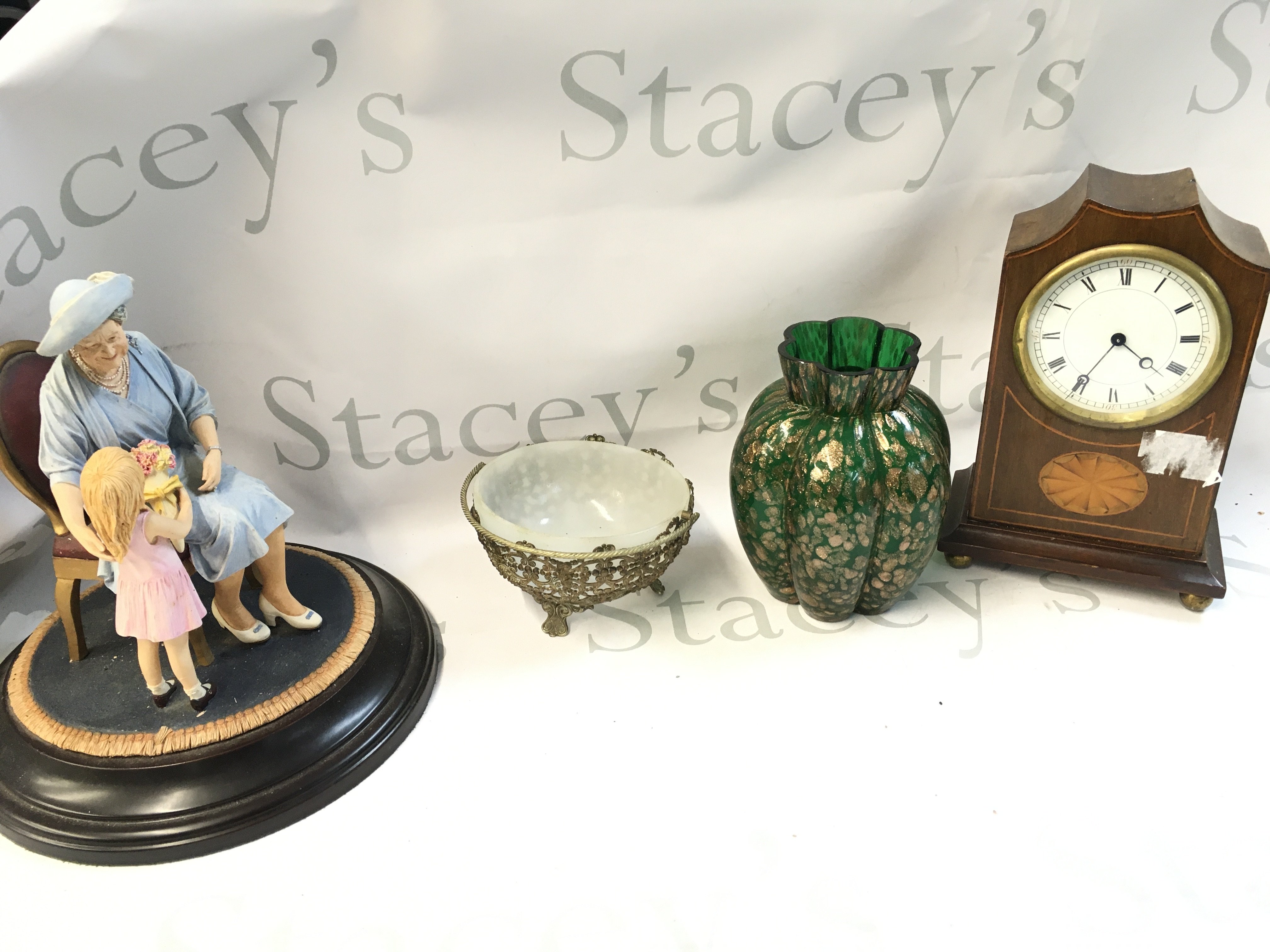 A collection of ceramics including a mantle clock with a Swiss movement, Country Artists a royal bouquet figure group,