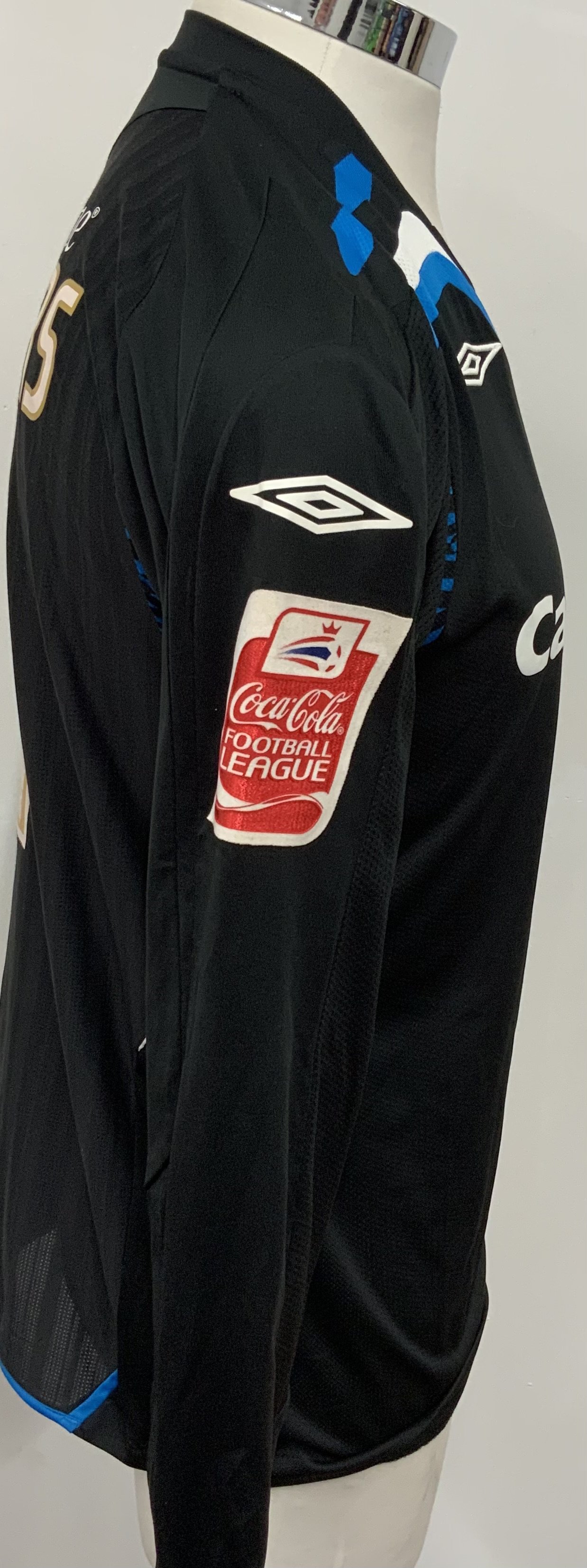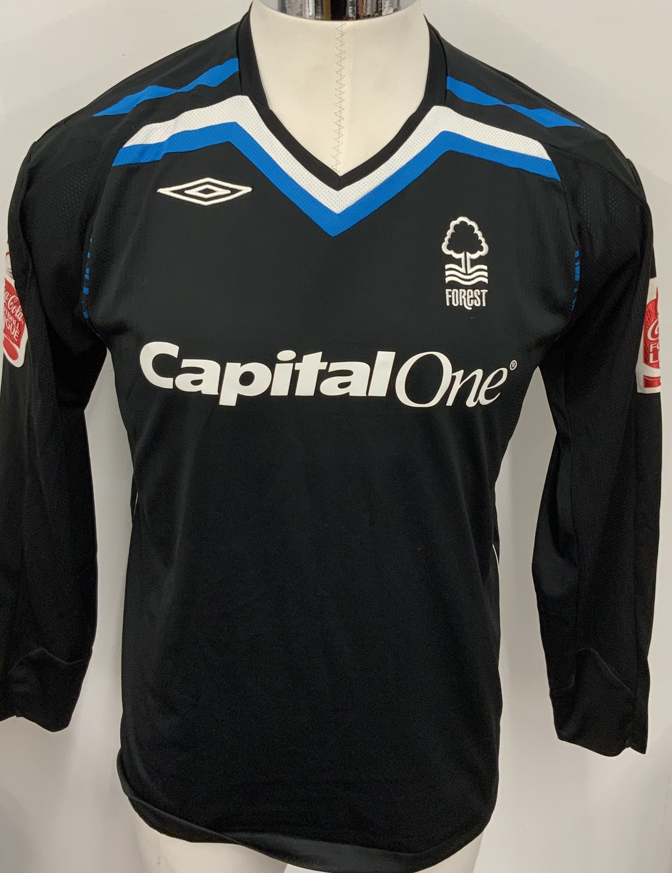 Nottingham Forest 2007 - 2009 Match Worn Football Shirt: Black long sleeve shirt with Coca Cola Football League badging to sleeves. Chambers 4 to rear.