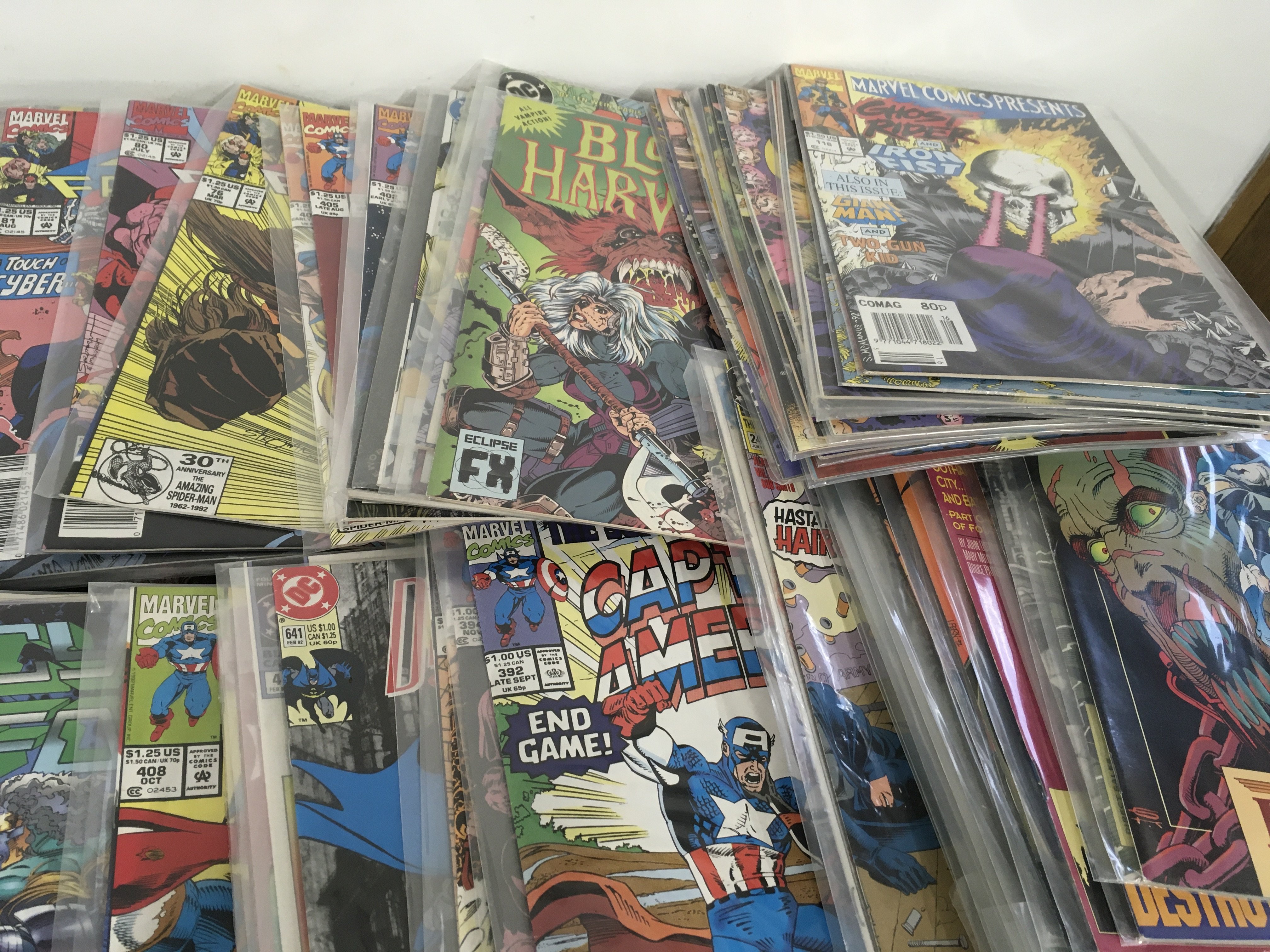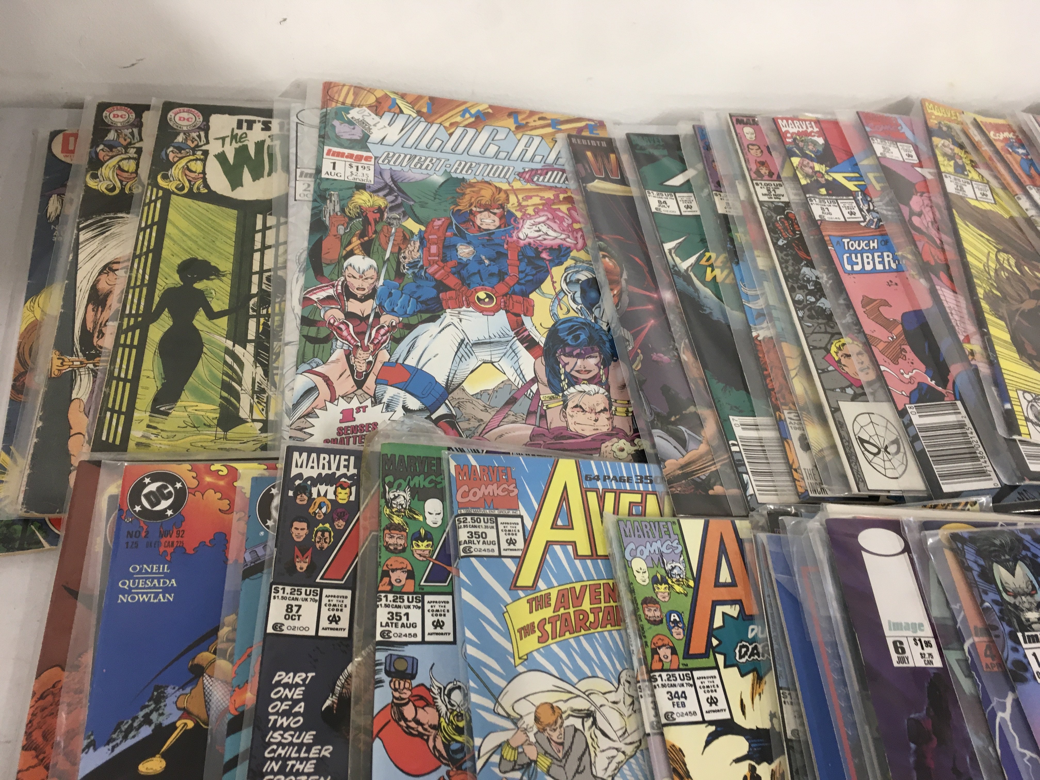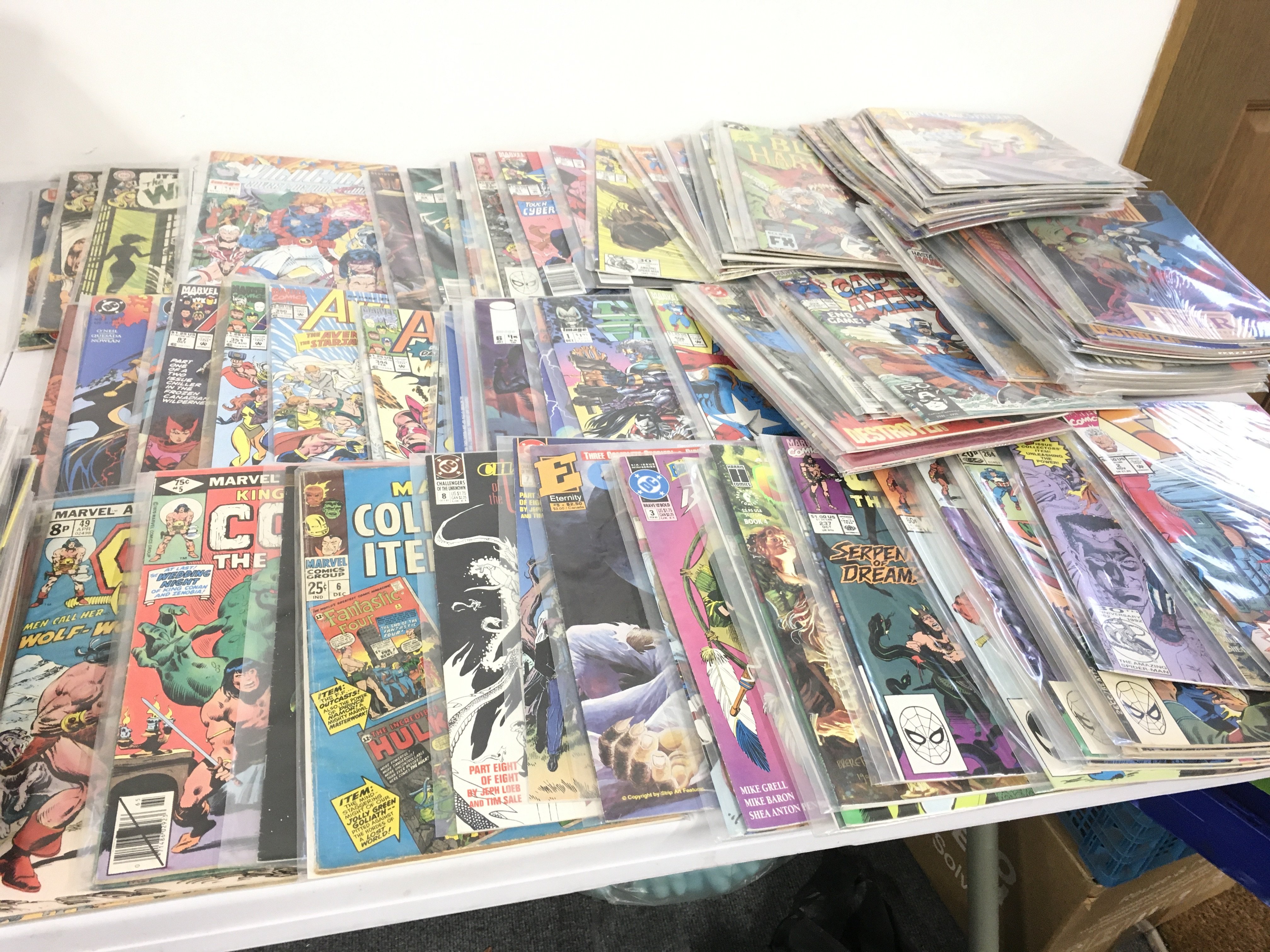 A collection of comics including, Dc..Marvel..image etc. featuring many heroes and villains. Approximately 180 comics mostly in plastic sleeves.