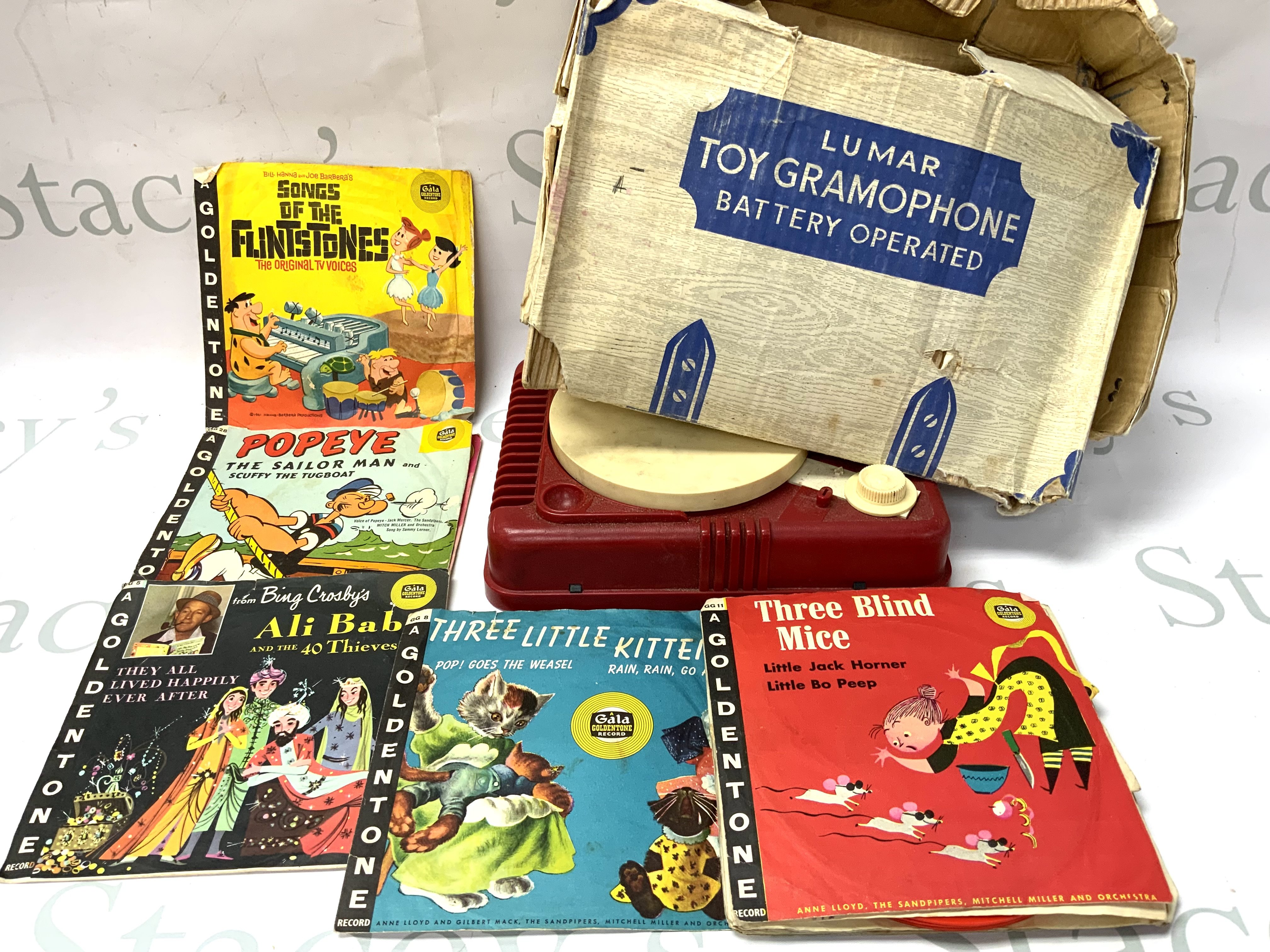Lumar Toy gramophone (condition issues) together with some Gala records.