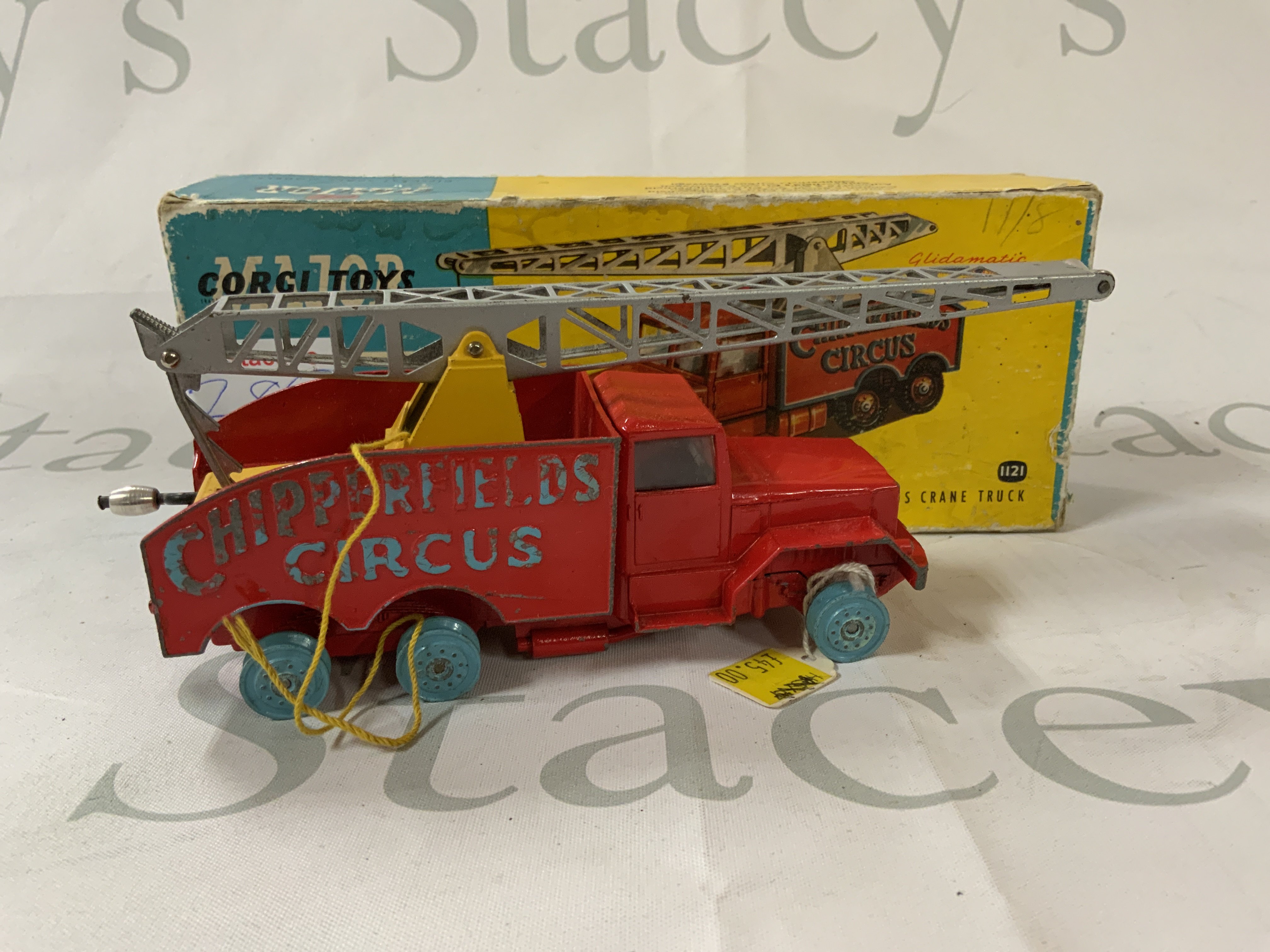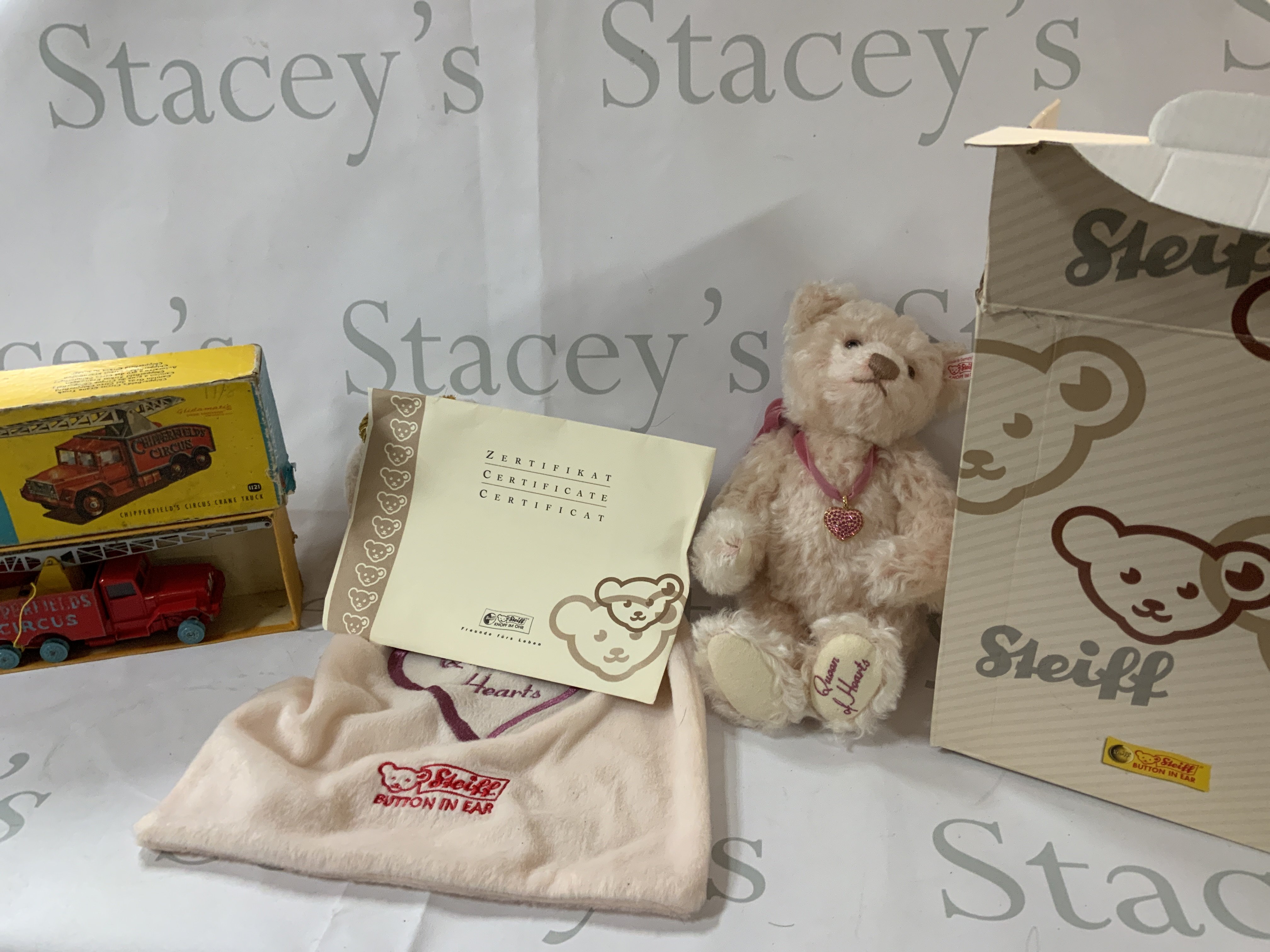 A vintage Corgi Toy - Chipperfields Circus Crane Truck, which is a die-cast scale model and a retired Sheiff teddy bear called Diana the Queen of Hearts with a bag to store her. Limited edition of 1500 pieces. Box included for both items and an envelope included with the teddy.
