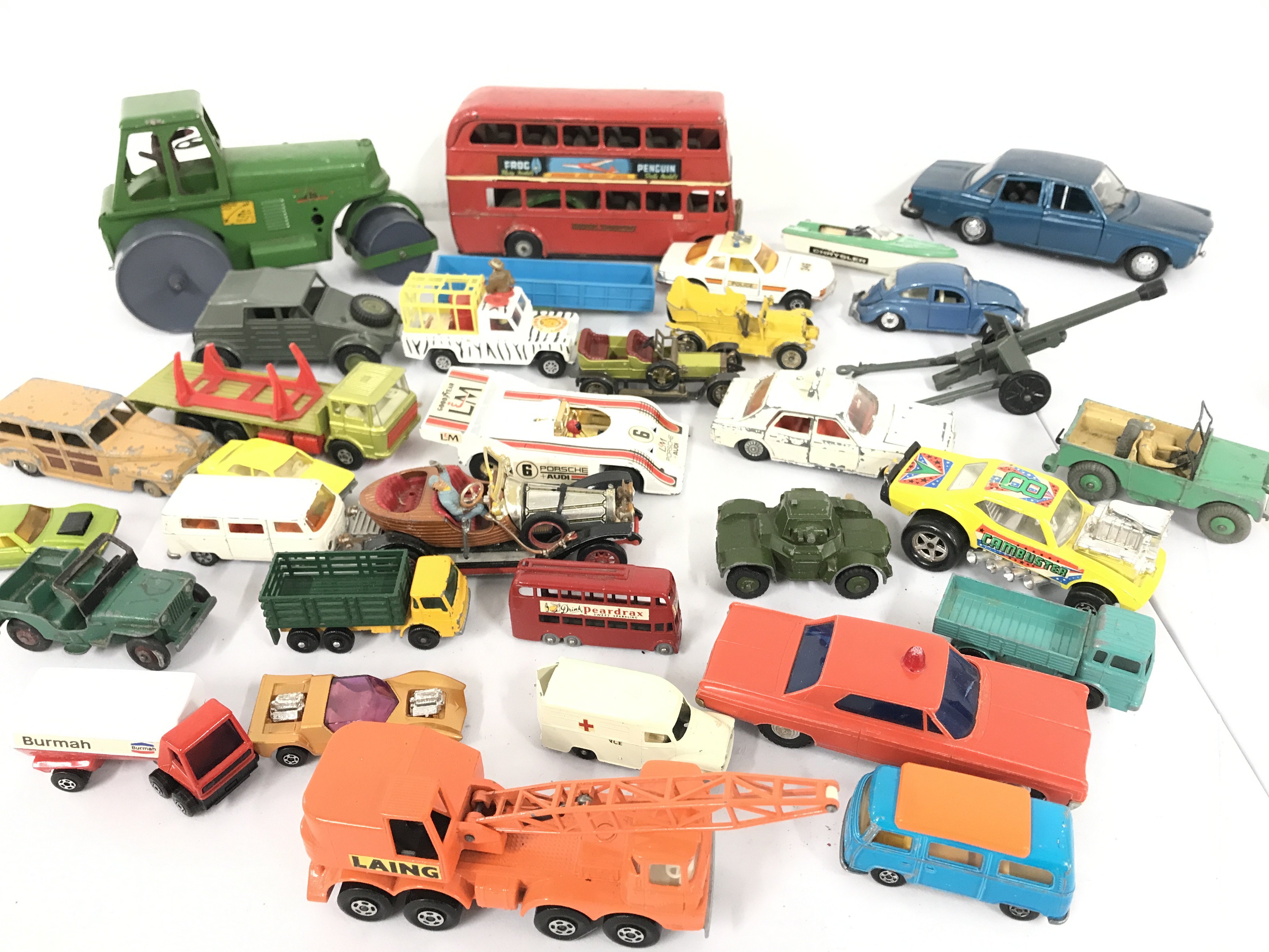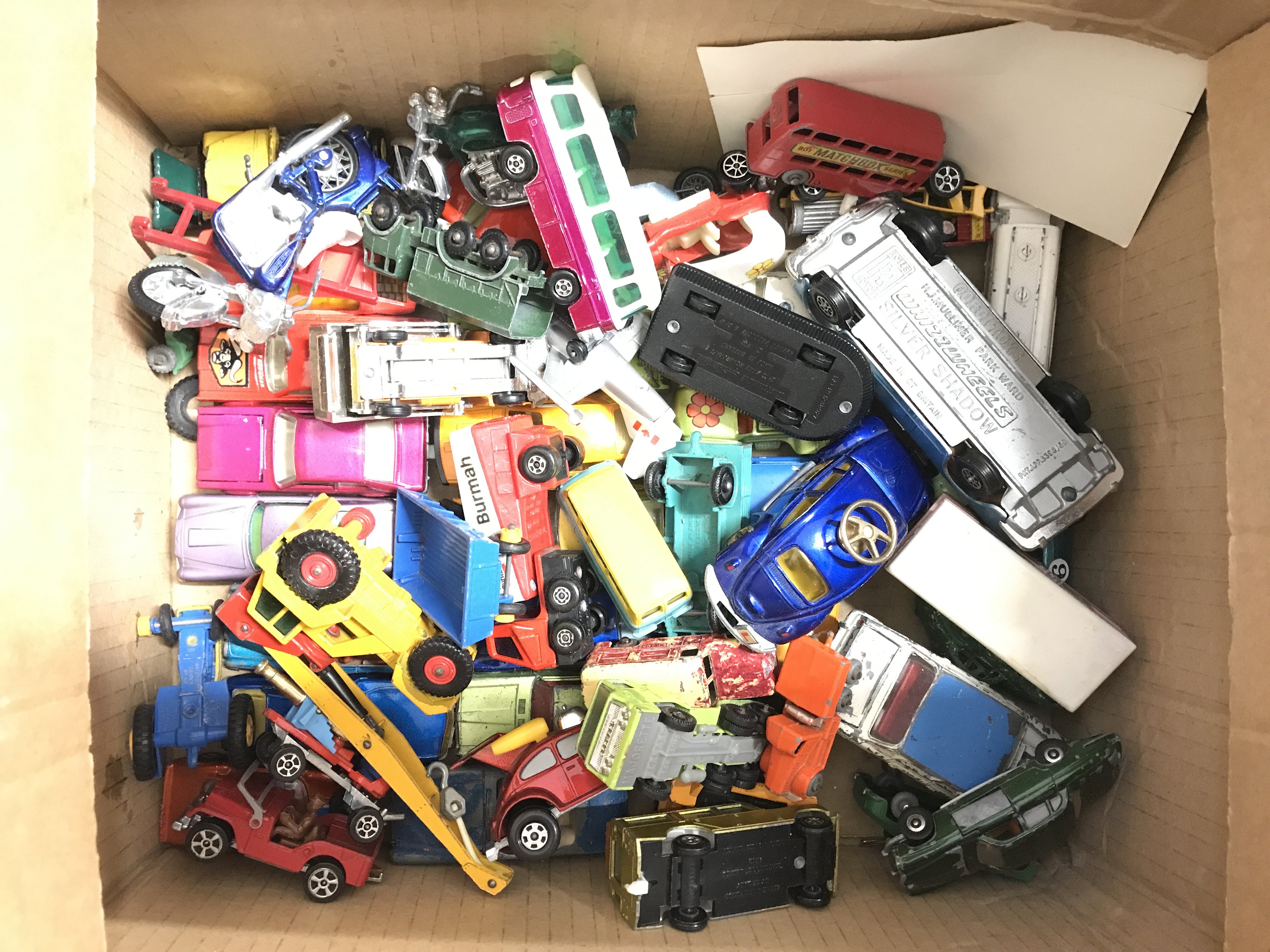 A Box Containing Playworn Diecast Including Dinky. Matchbox Etc.