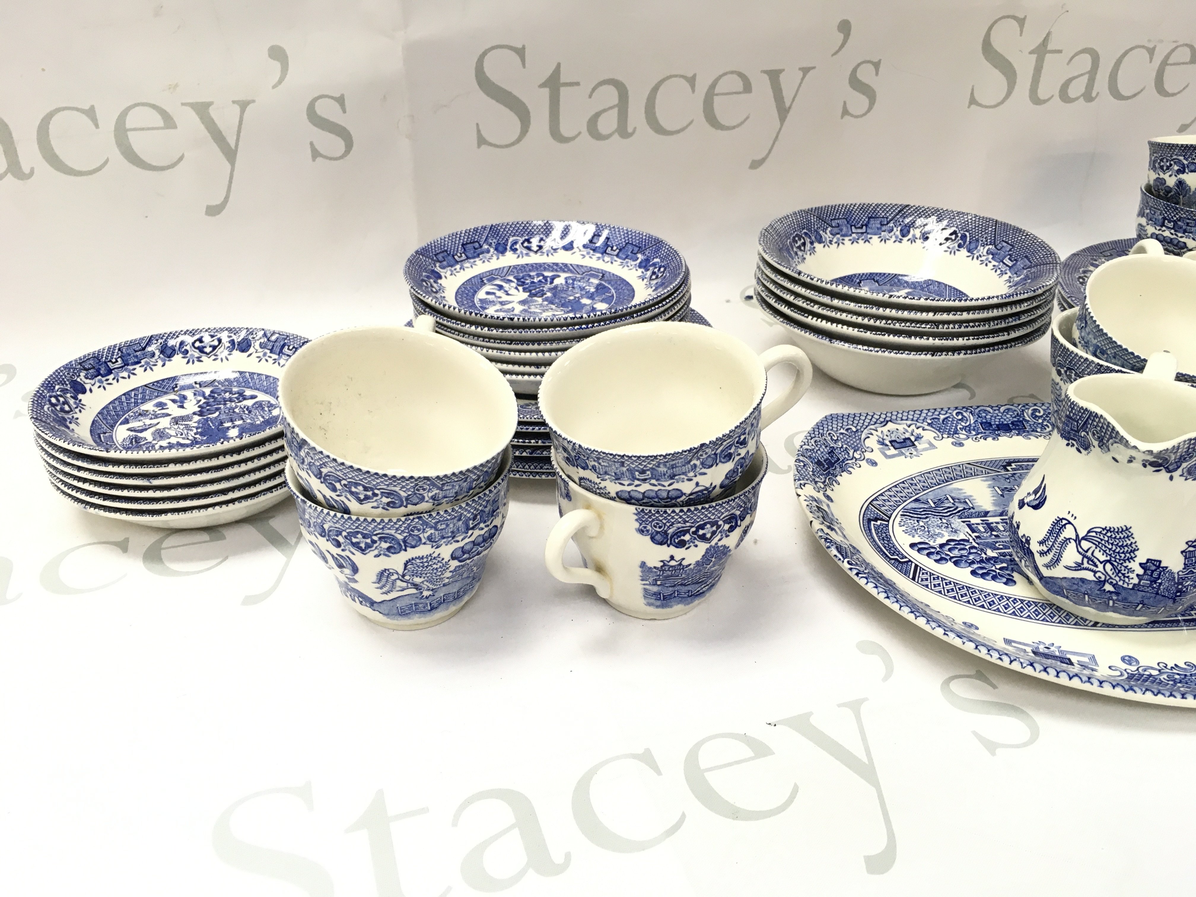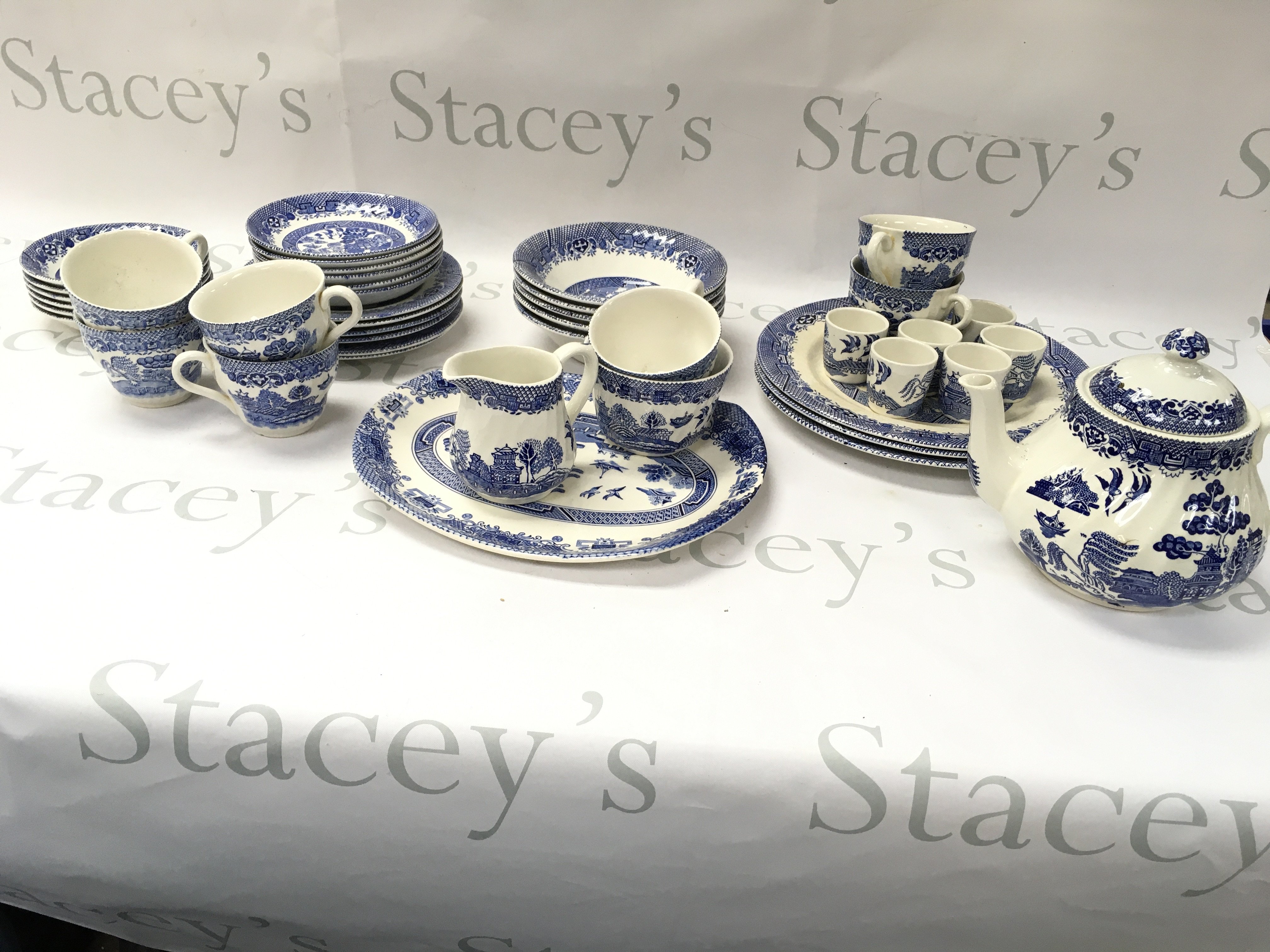 A Barratts blue and white part tea set