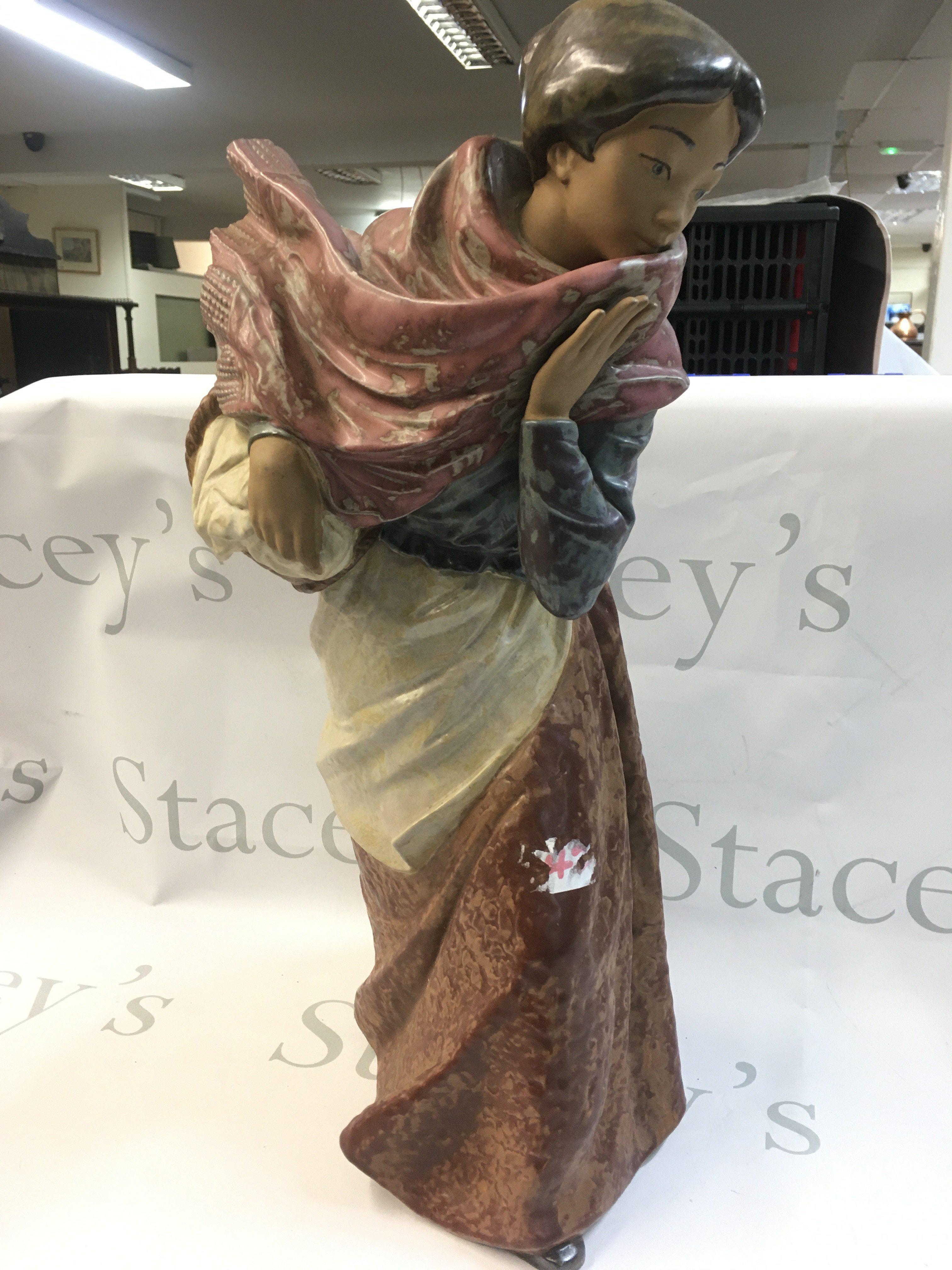 A porcelain Nao figure, country woman with basket and scarf. 48cm This lot cannot be posted
